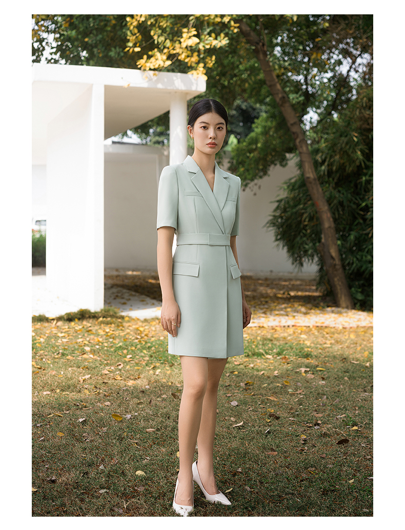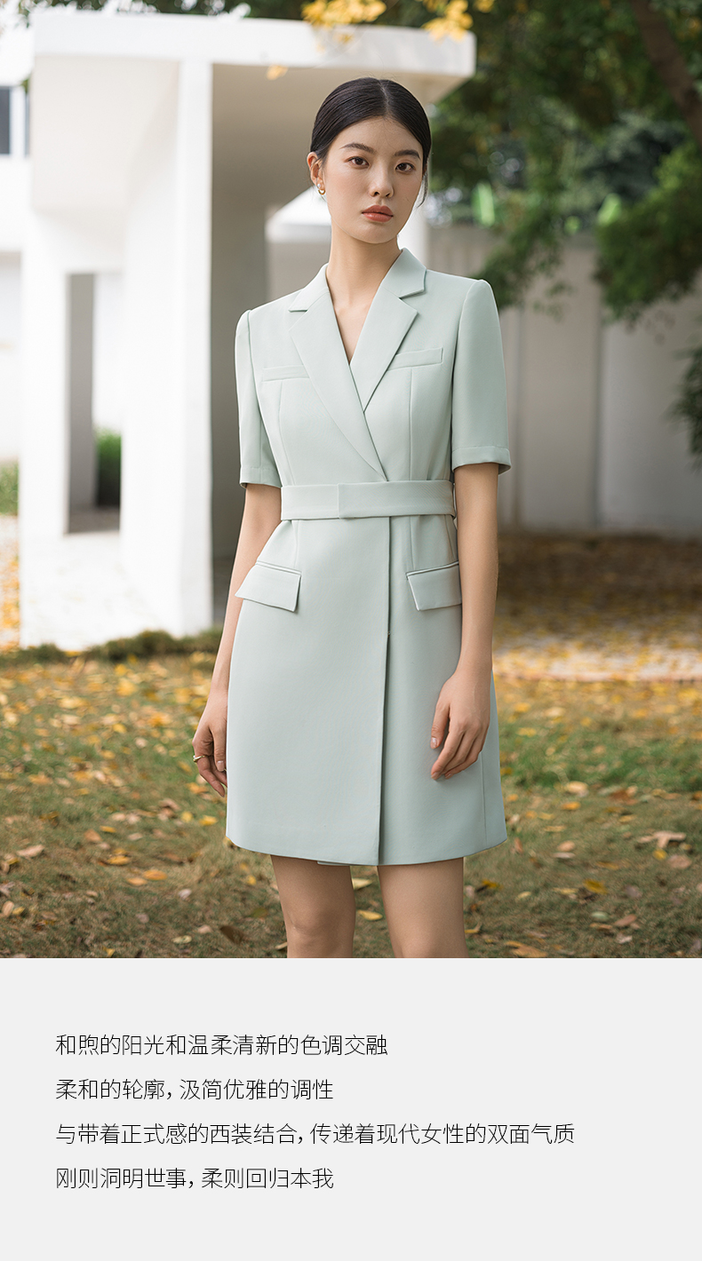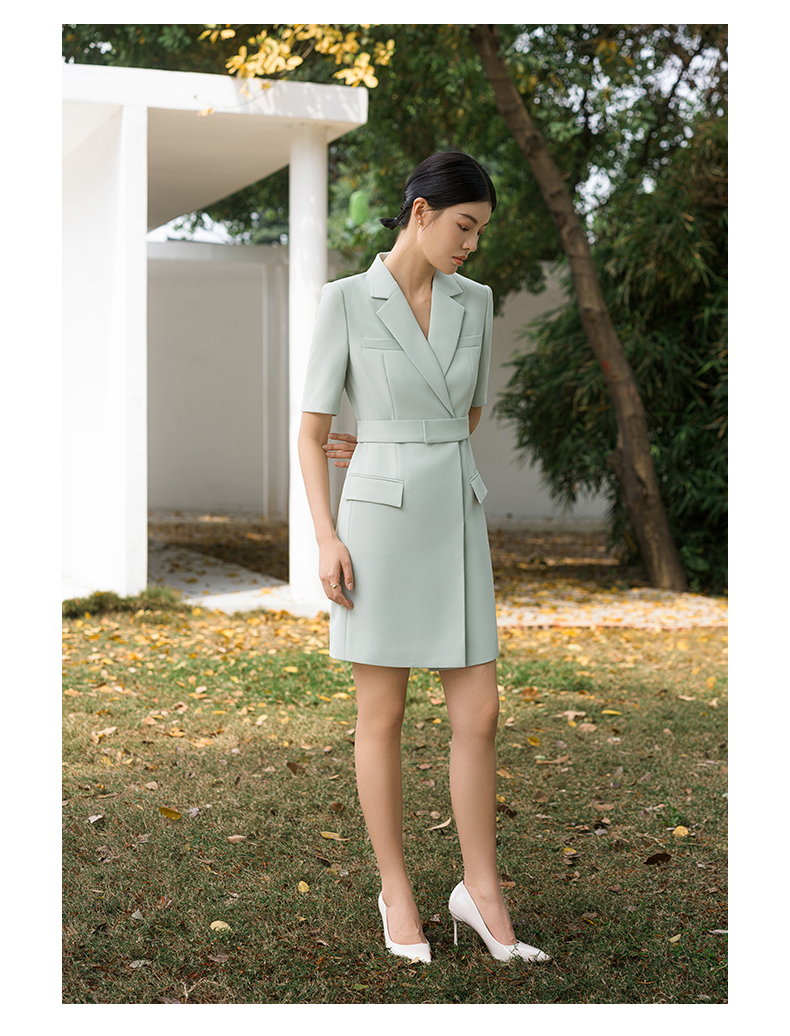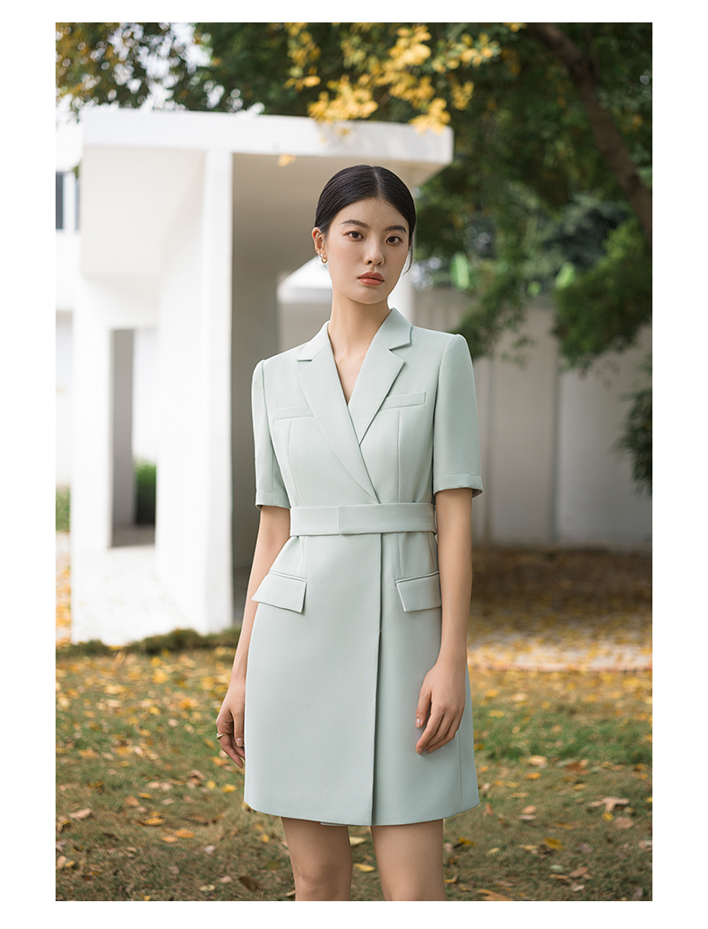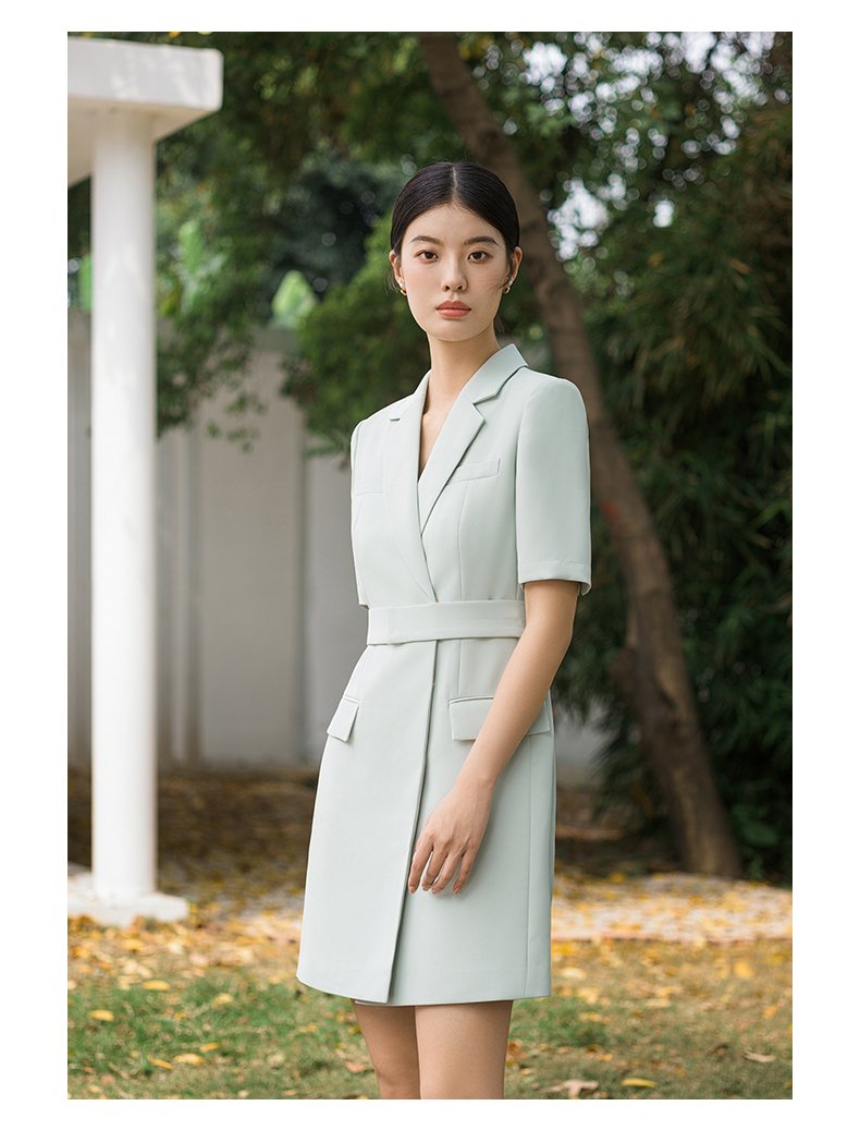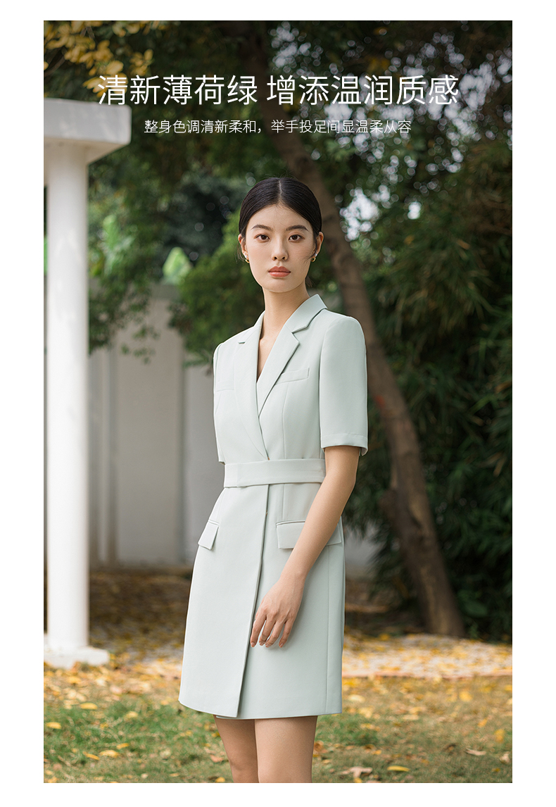 IWY/高端薄荷绿西装连衣裙夏修身气质商务白领播音主持人上镜正装Q14238