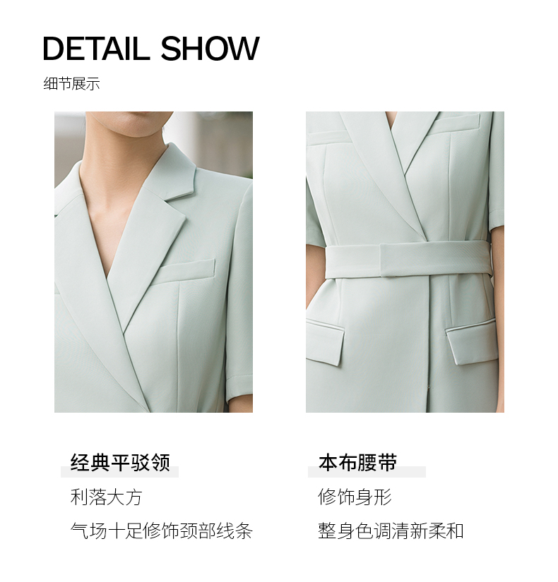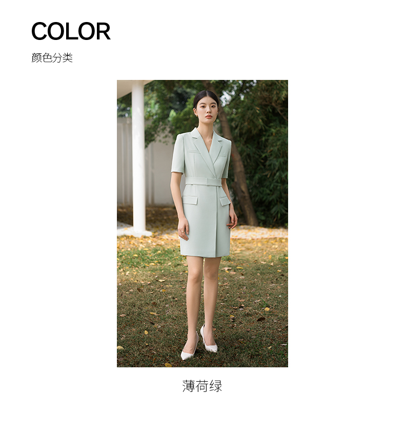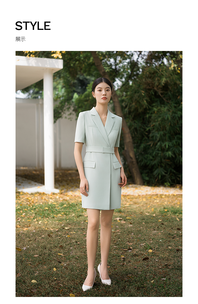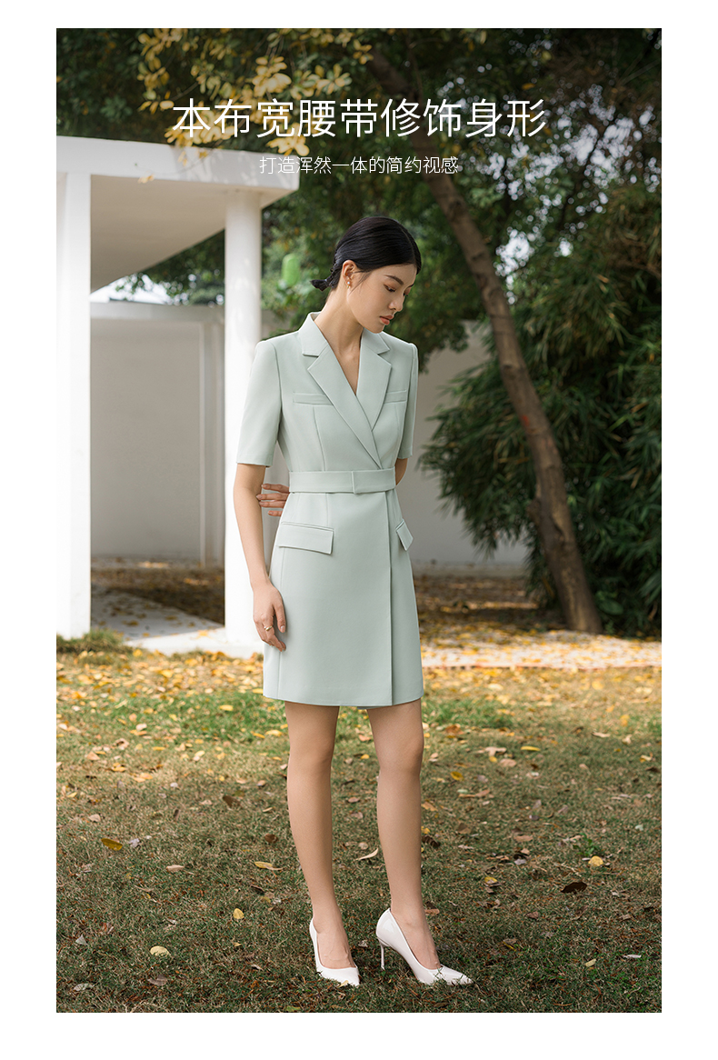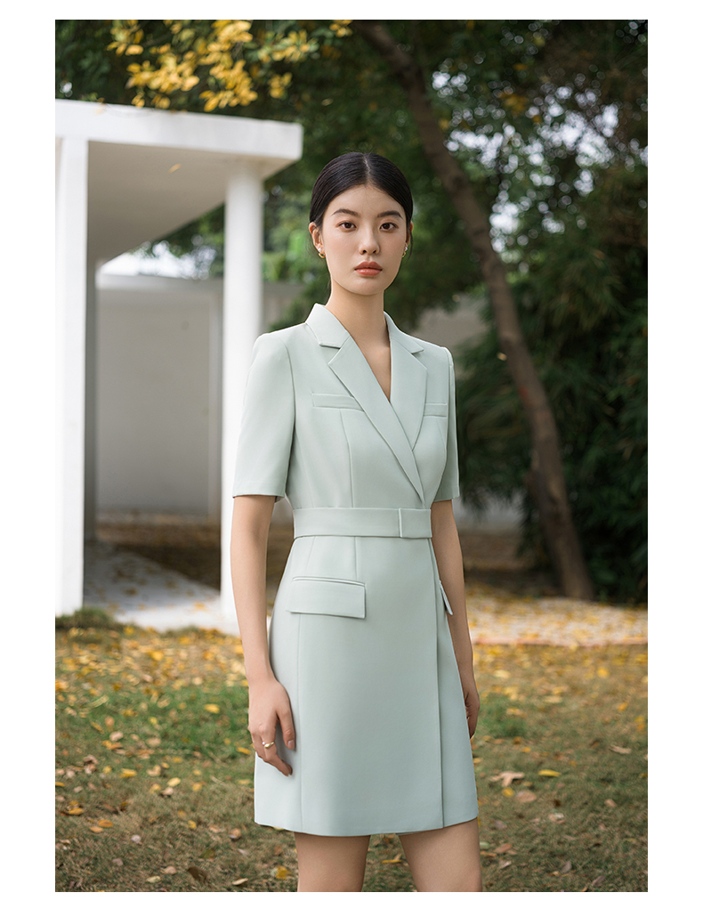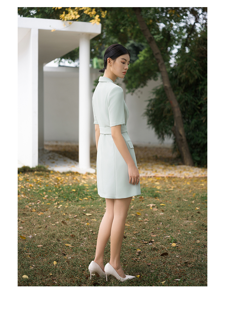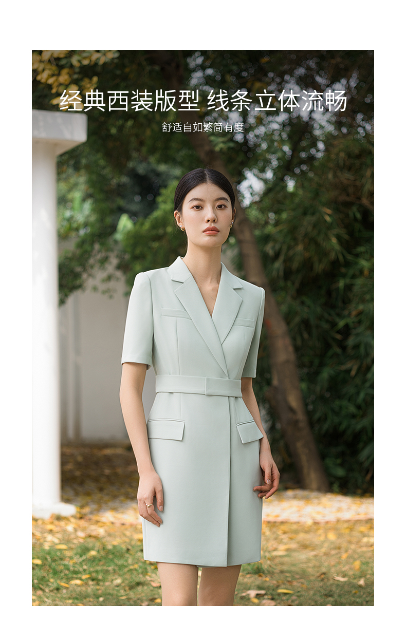 IWY/高端薄荷绿西装连衣裙夏修身气质商务白领播音主持人上镜正装Q14238