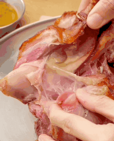 这大肘子是来报恩的吧呜呜,外酥里嫩,一刀下去脆皮嘎吱嘎吱响 脆皮猪肘虽是一道西餐菜品,却是少有的能征服中国胃的异域食物。 随着肘子被烤的吱吱作响,油脂慢慢渗出、浓郁肉香开始释放,太香了! 烤制后的肘子,色泽金黄诱人,表皮香脆适口 一入口就能撩动舌尖:满满的肉感、满满的胶质经络、层次丰富的口感……