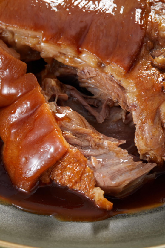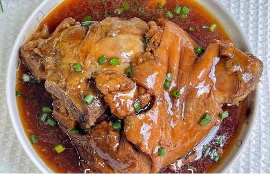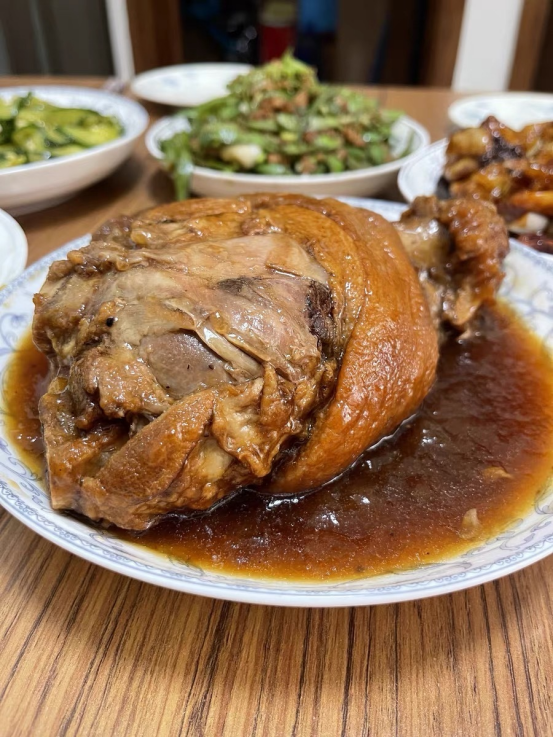 红烧大肘子是一道经典名菜,色泽红亮、形状浑圆,寓意着团圆美满、鸿运当头看着非常喜庆 因此成为了年夜饭中的首推菜品之一。
