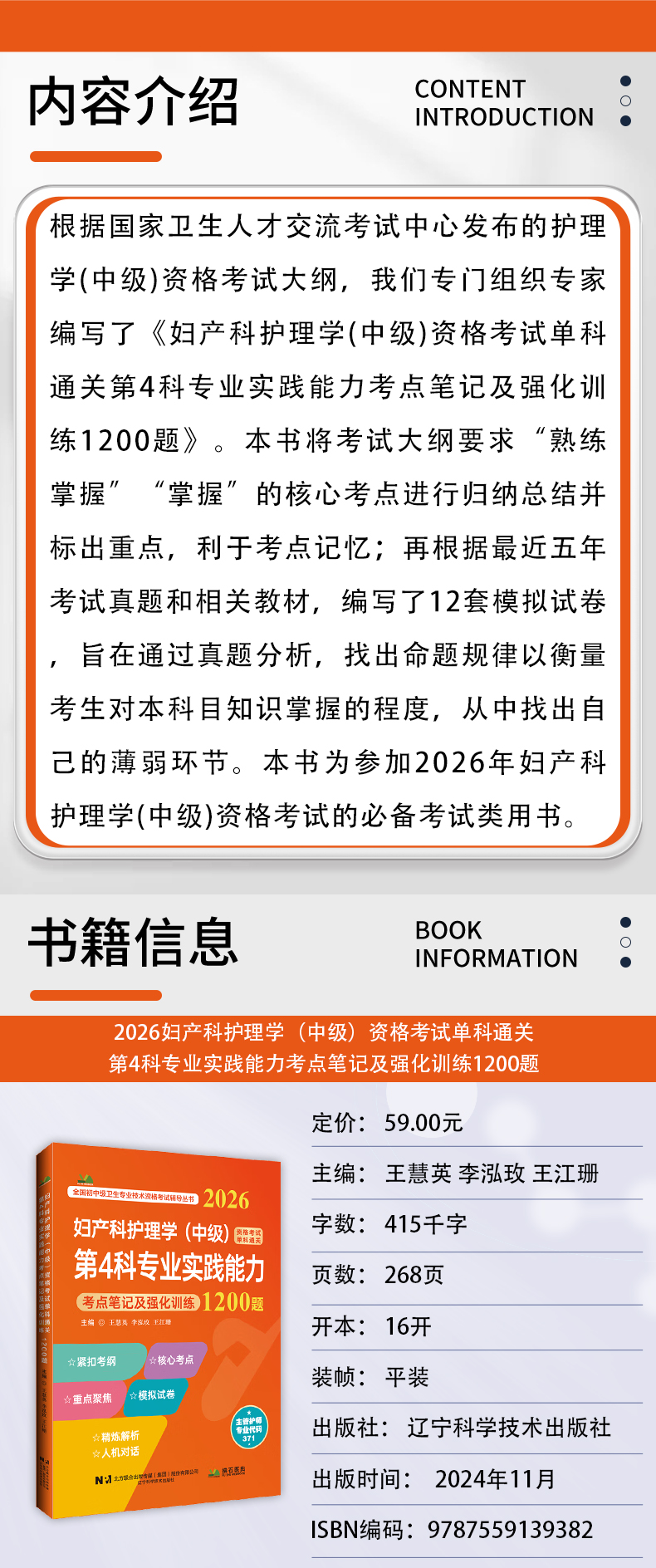 书名:2026妇产科护理学(中级)资格考试单科通关第4科专业实践能力考点笔记及强化训练1200题