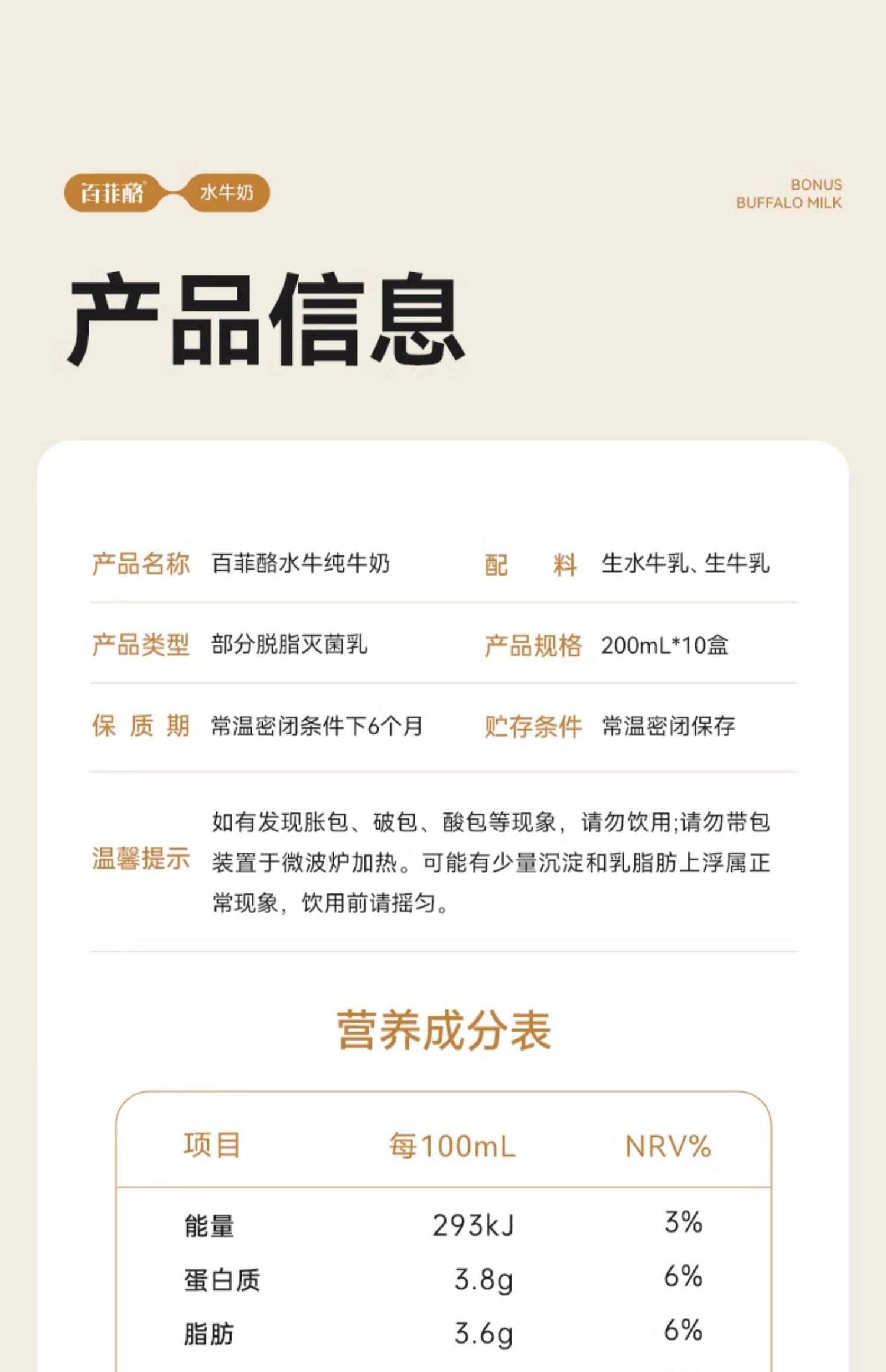奶中贵族·百菲酪水牛纯奶 优质乳蛋白≥3.8g 奶味香醇营养丰富