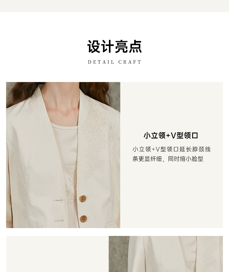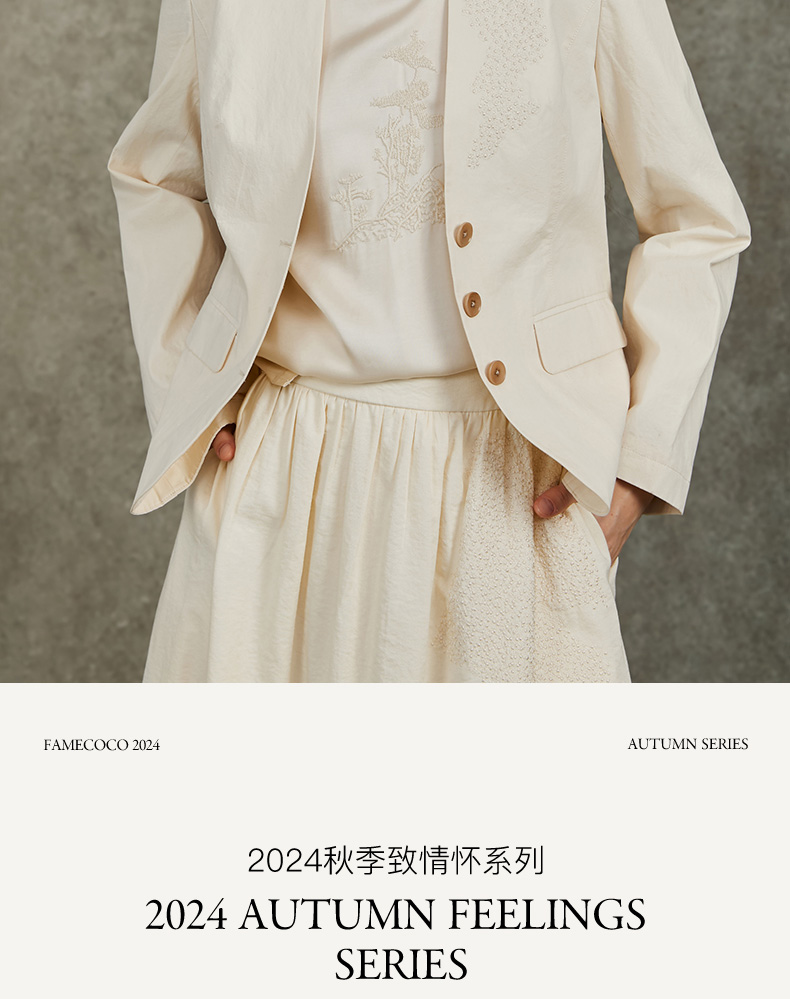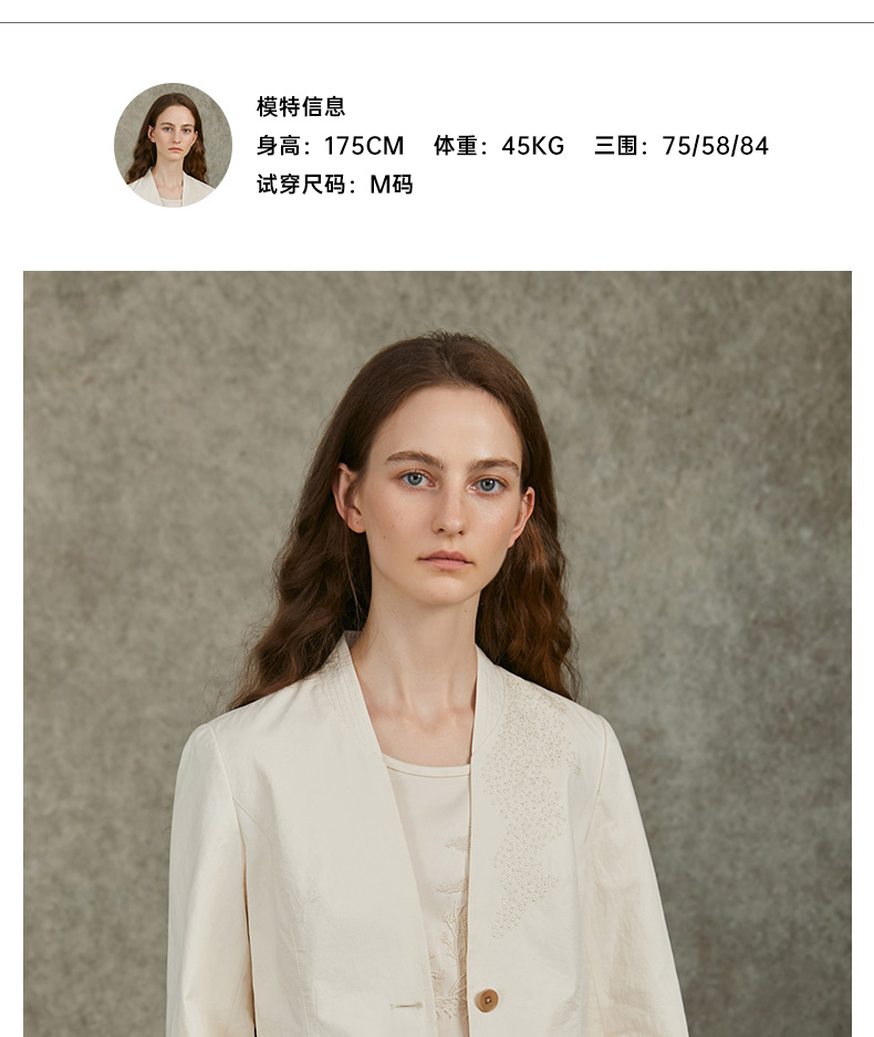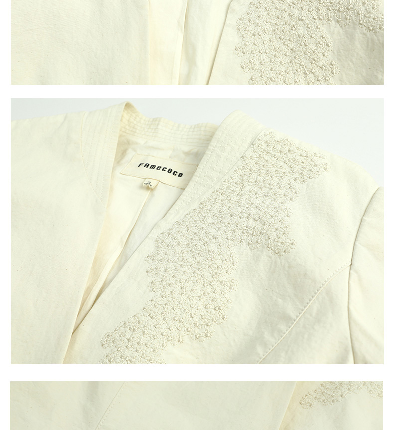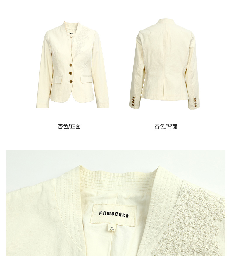Famecoco范可儿西服外套无领短款西装刺绣*高级感FAC6AW013