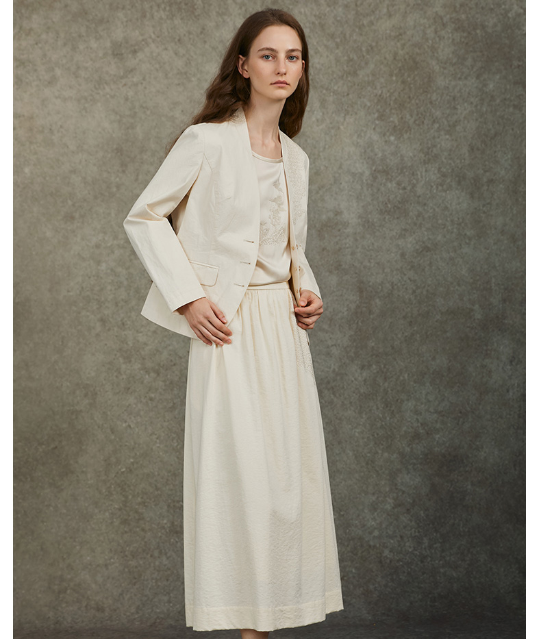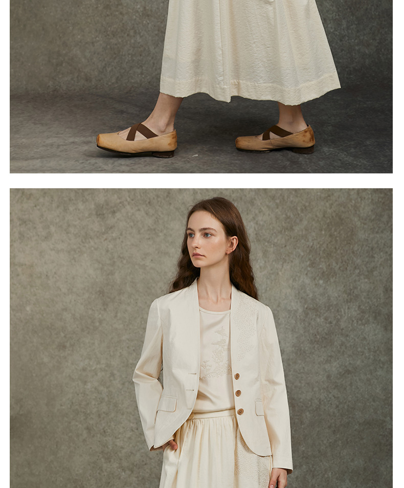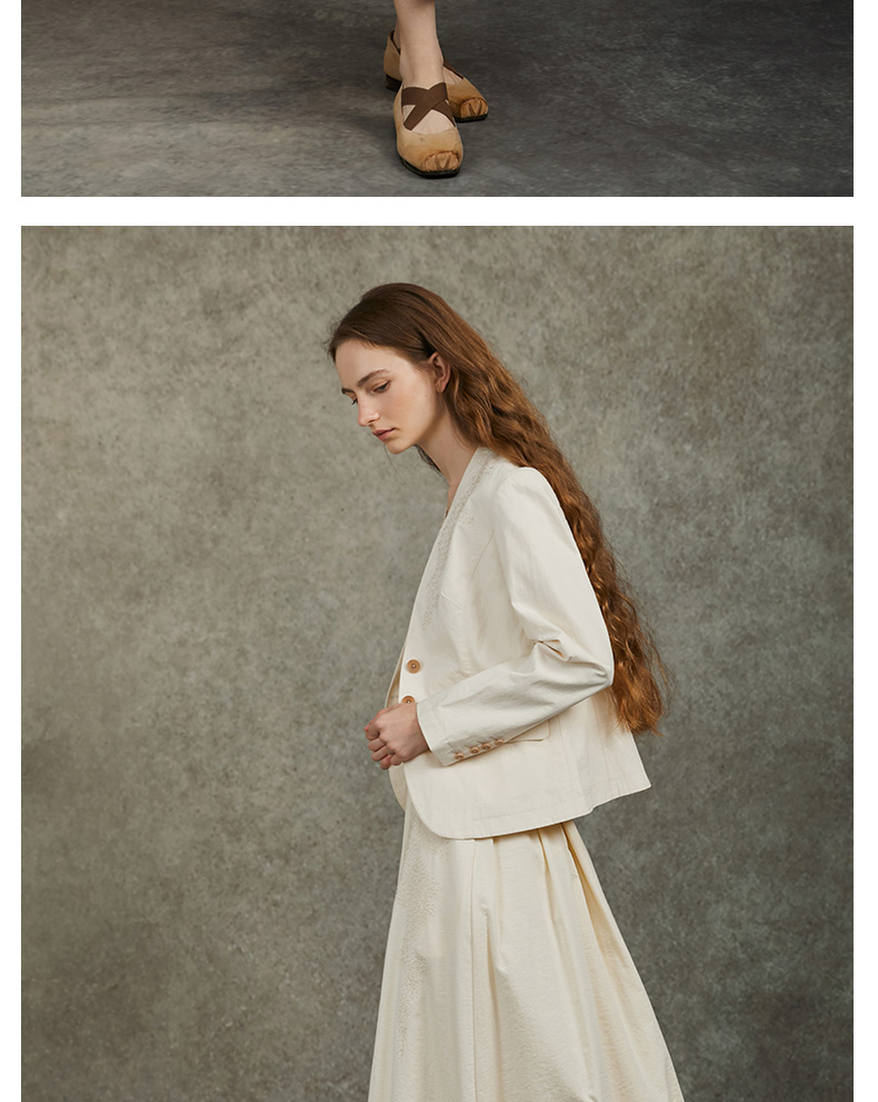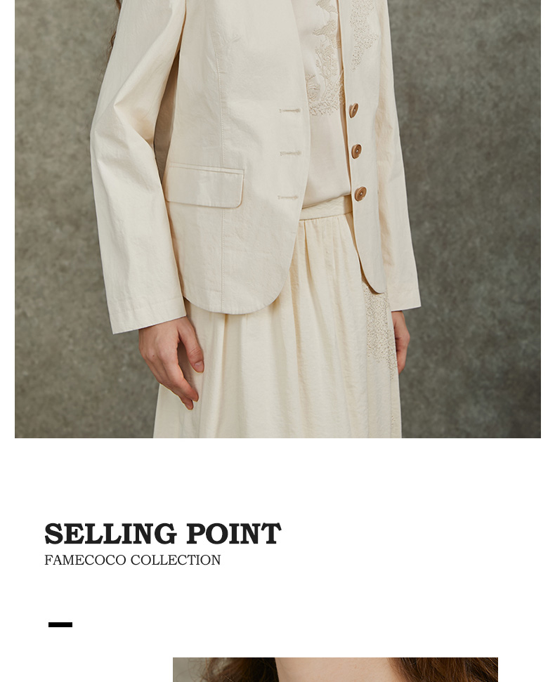 Famecoco范可儿西服外套无领短款西装刺绣*高级感FAC6AW013