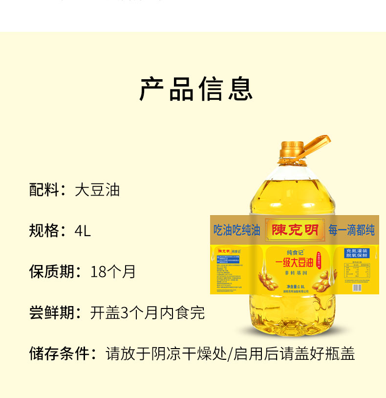 陈克明大豆油 非转基因 物理压榨一级 商品缩略图0 陈克明大豆油 非转基因 物理压榨一级 商品缩略图1 陈克明大豆油 非转基因 物理压榨一级 商品缩略图2 陈克明大豆油 非转基因 物理压榨一级 商品缩略图3