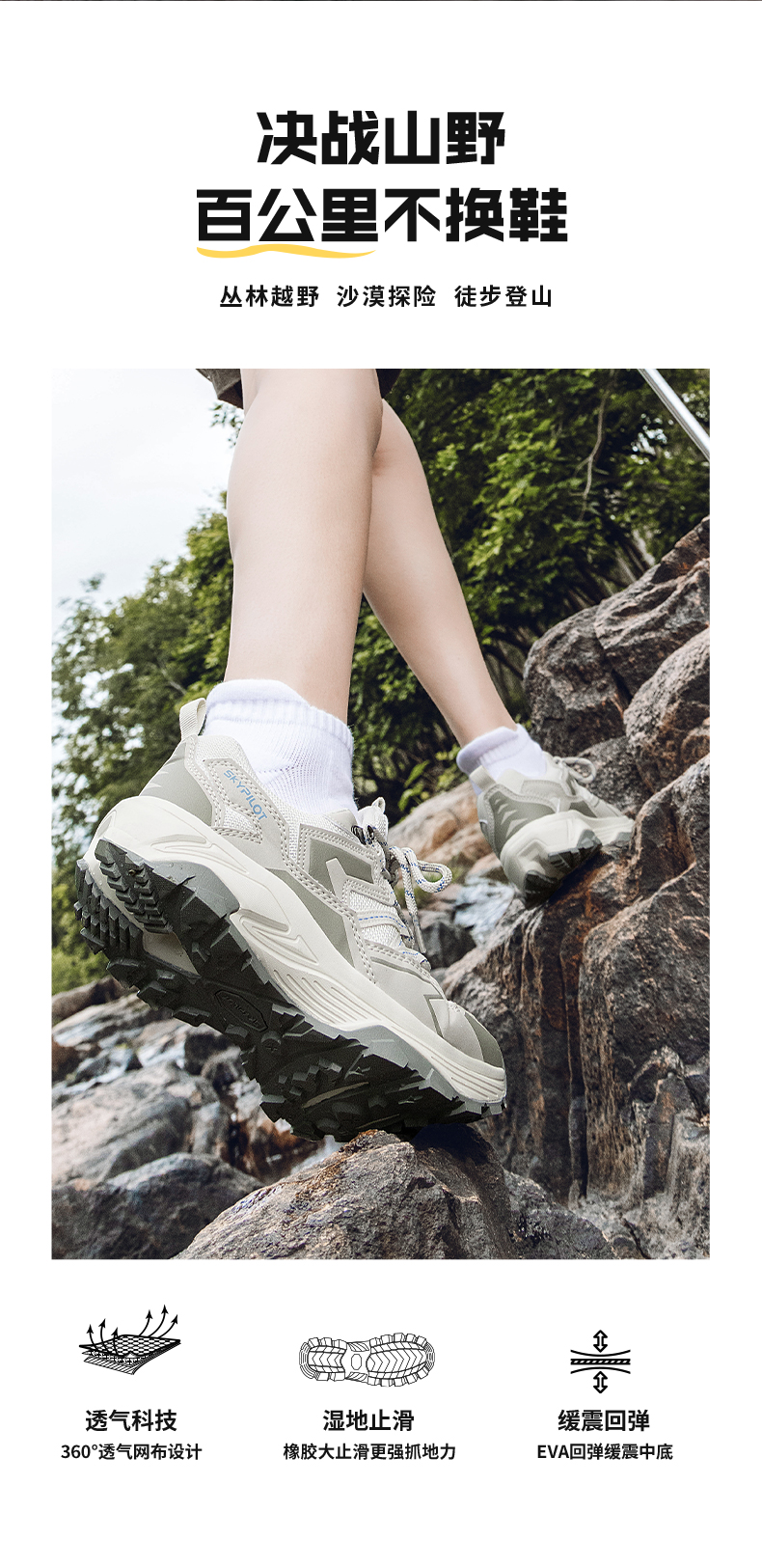 【不闷脚】skypilot斯柏锐岩野山地徒步鞋,耐磨防滑登山运动鞋 男女同款
