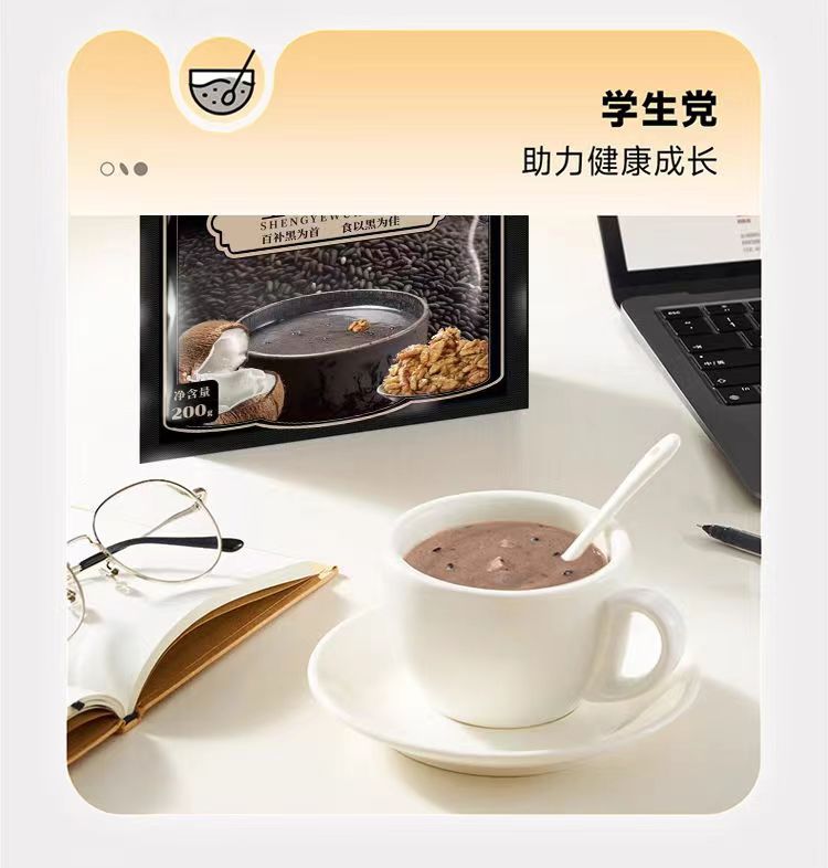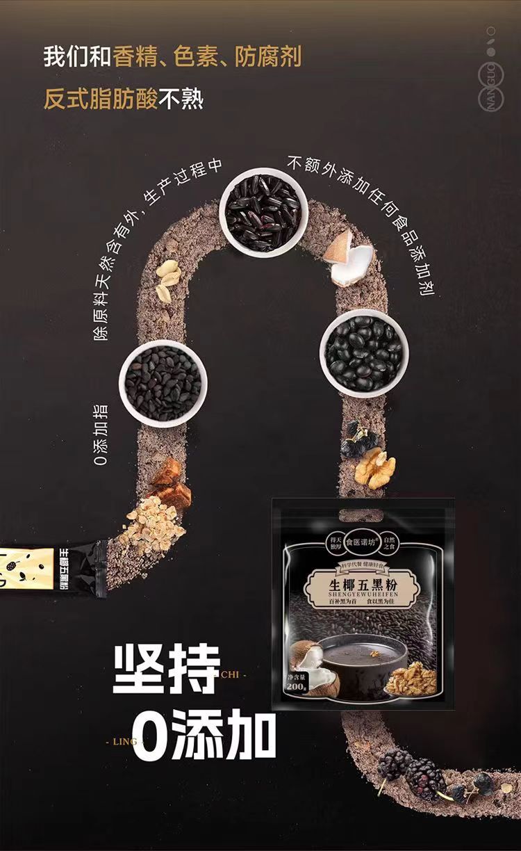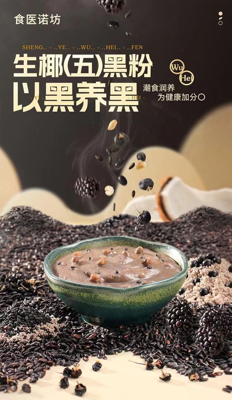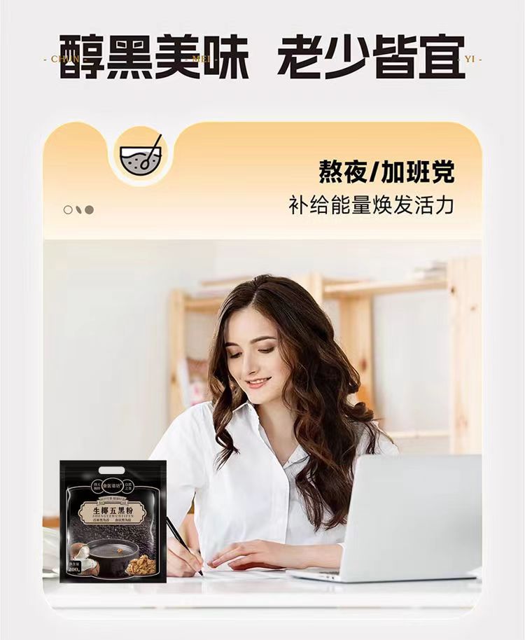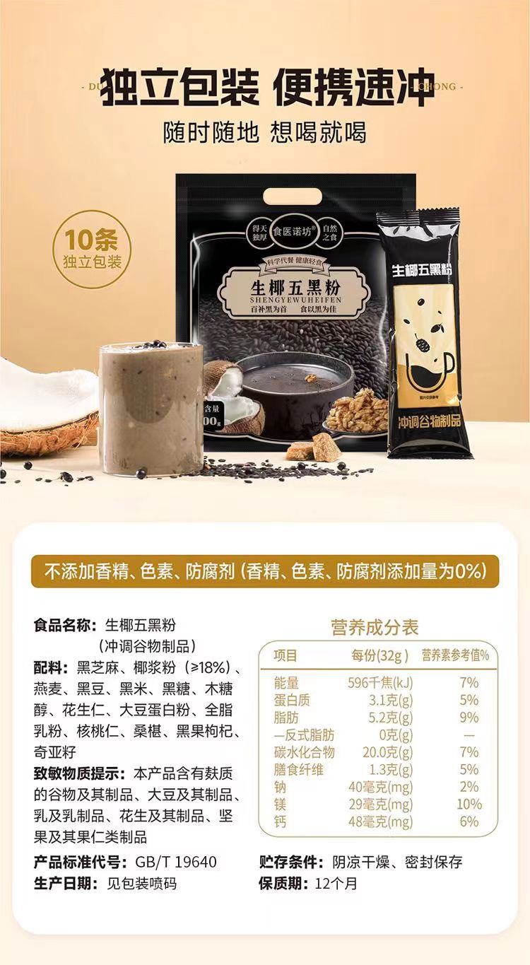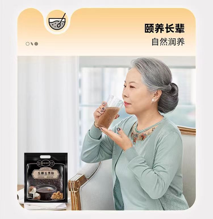 【以黑养黑!生椰(五)黑粉】甄选优质食材!黑芝麻/黑豆/黑米/黑枸杞/黑桑葚/海南老椰粉,入口丝丝滑滑,早餐代餐粉谷物椰浆L