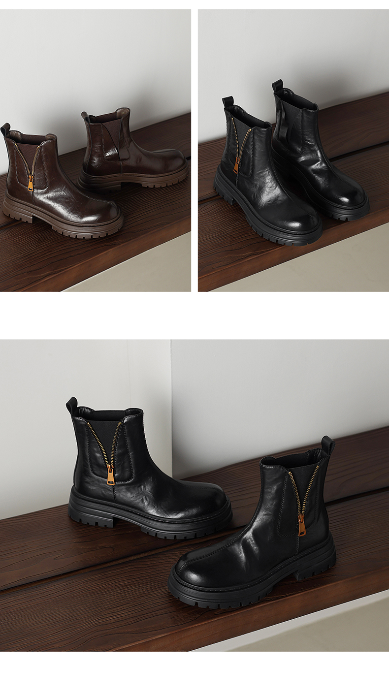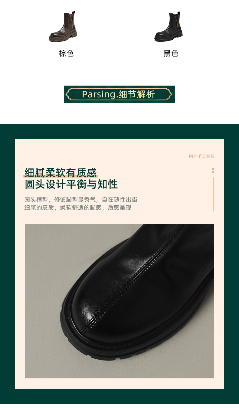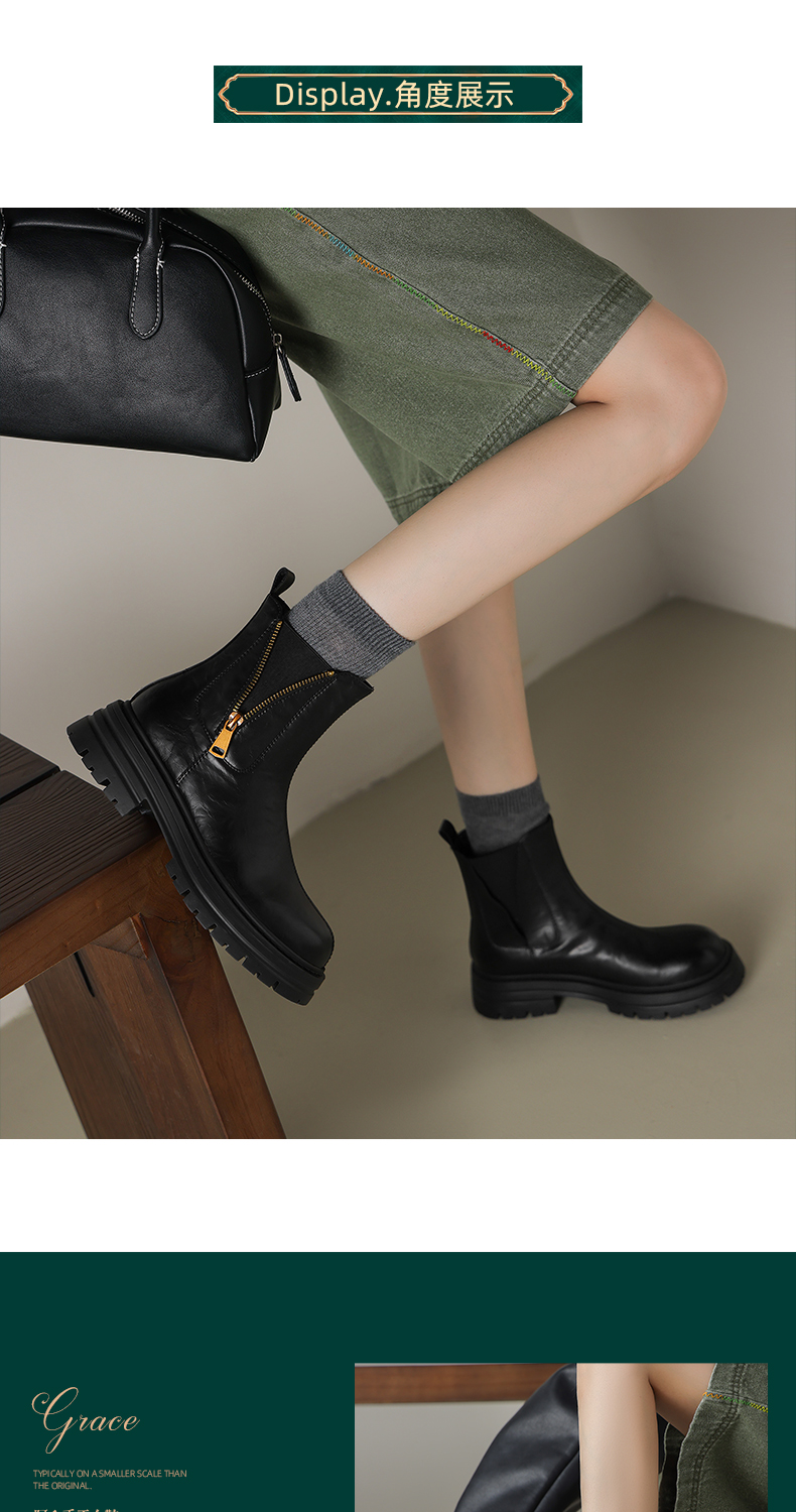 阿么手工女鞋英伦风侧拉链时尚短靴女厚底4.5CM真皮复古切尔西靴
