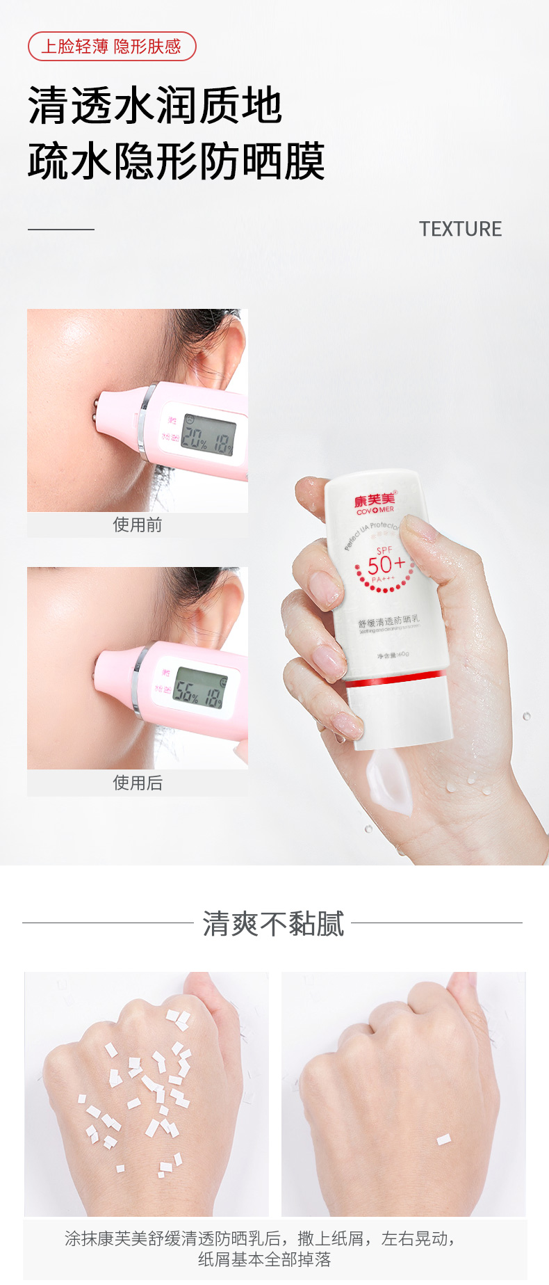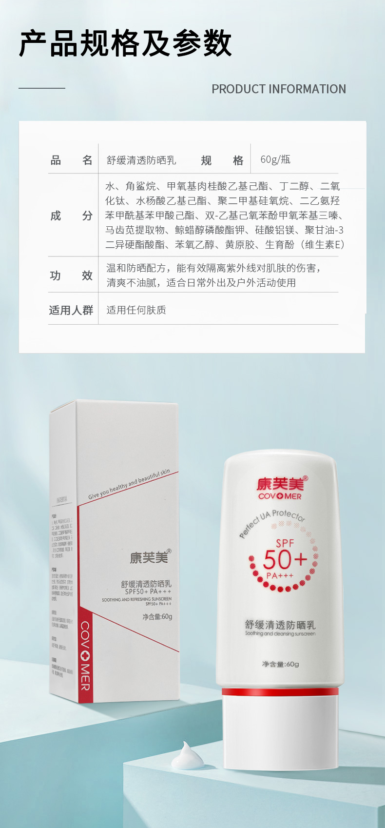 康芙美|舒缓清透防晒乳|SPF50+ PA+++ 隔离紫外线 舒缓保湿 修护滋养 轻薄不厚重