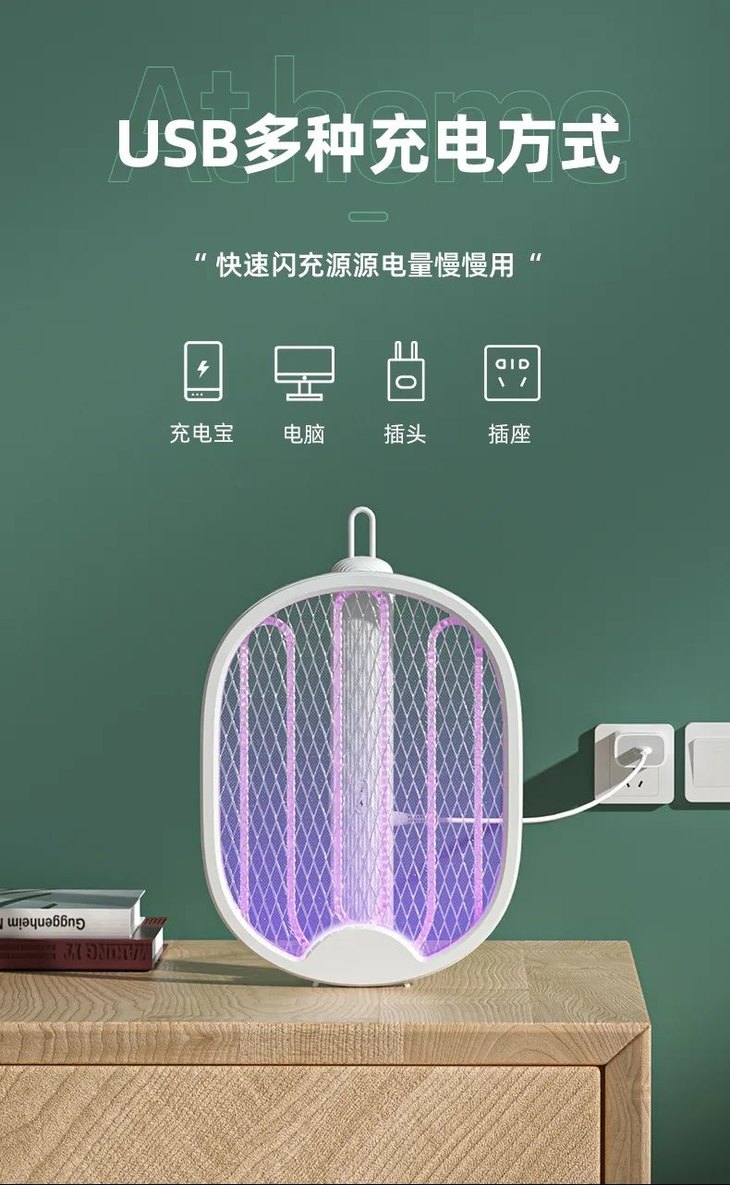 3.请勿使用快充头等快充设备给电蚊拍充电,电蚊拍支持充电输入为5V=1A。
