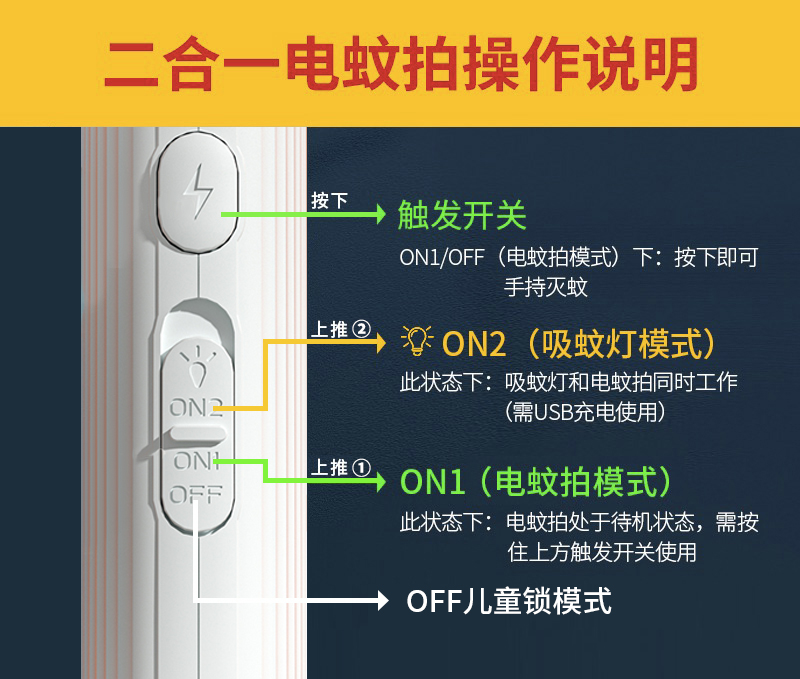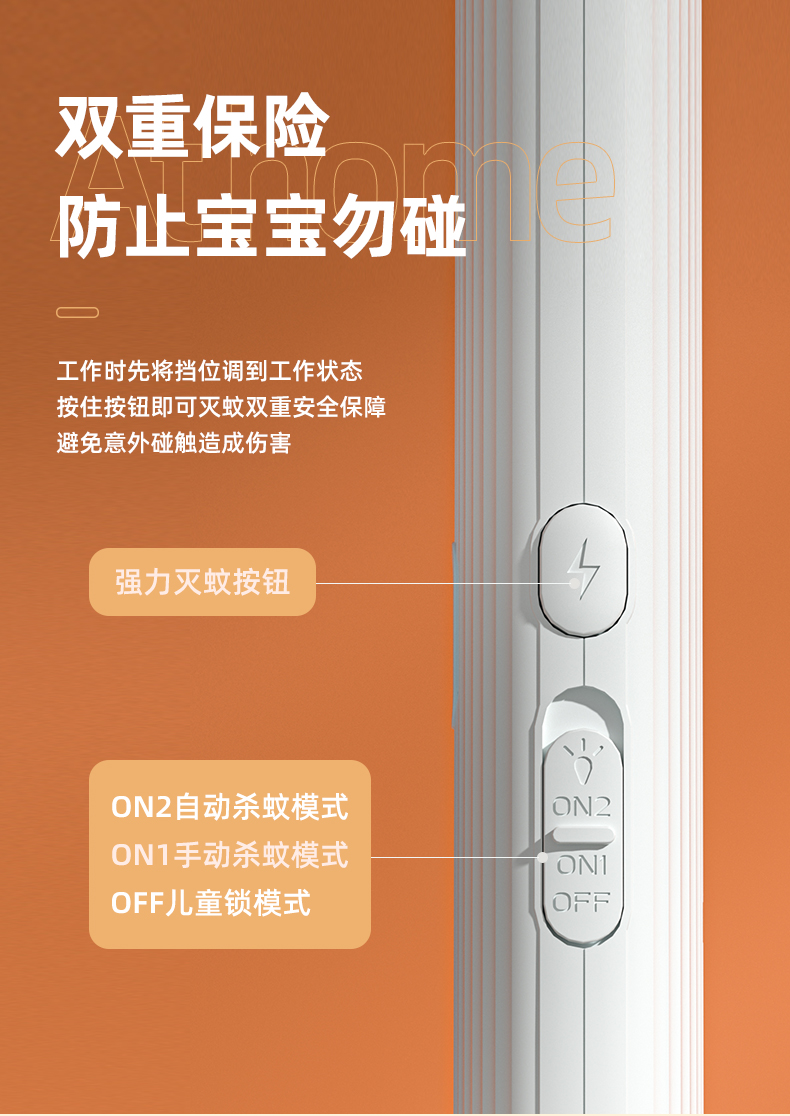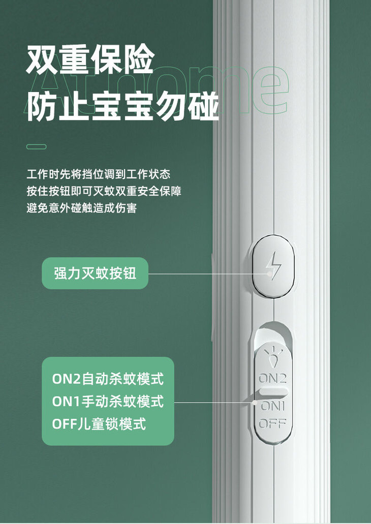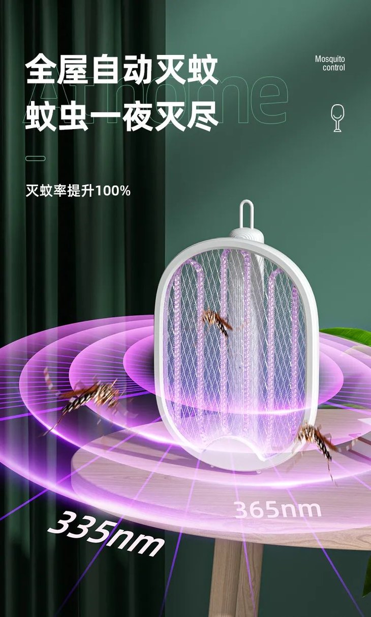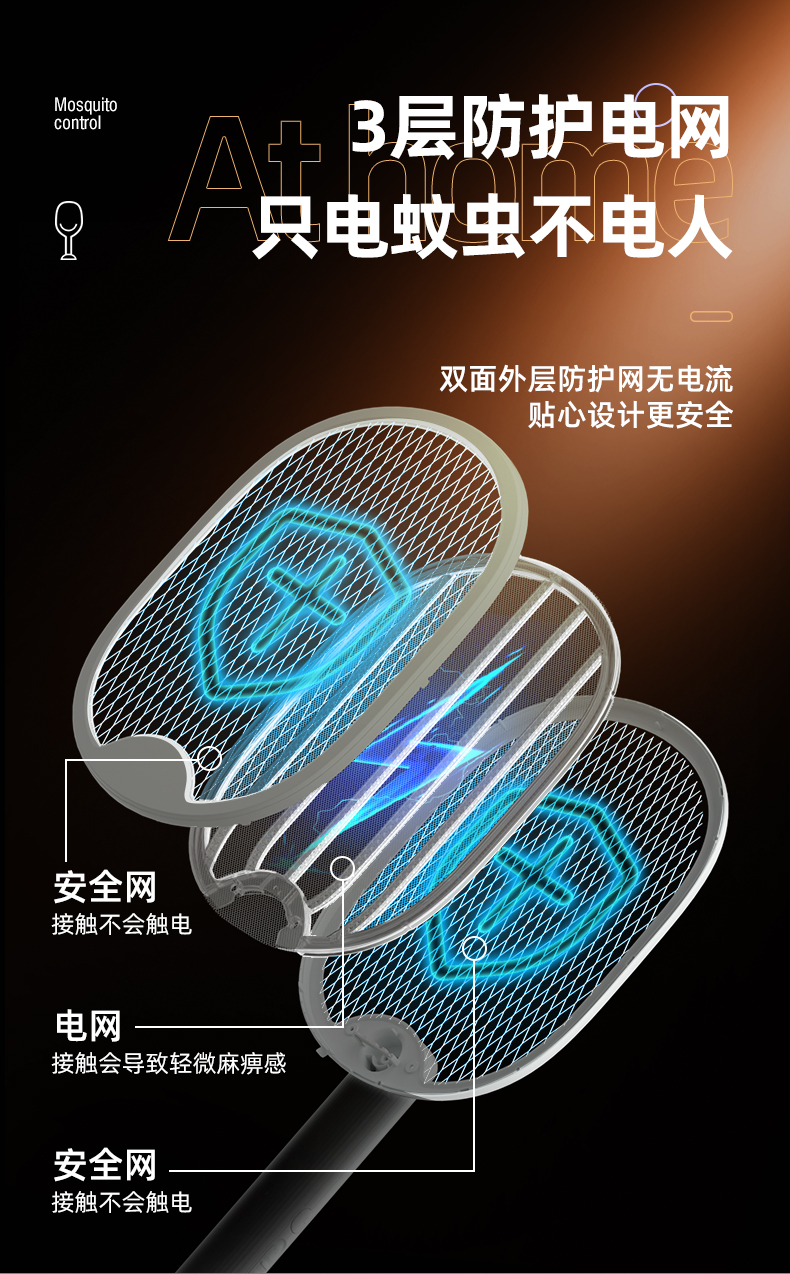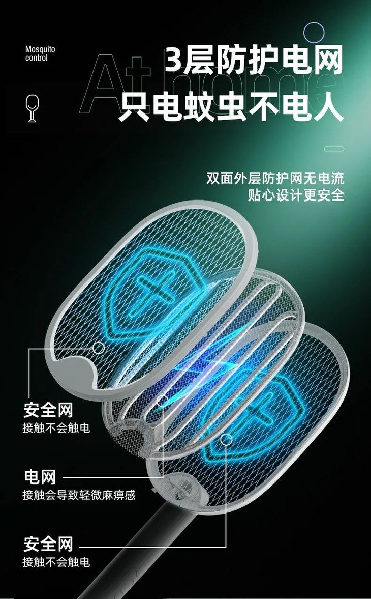 3层防护电网,只电蚊子不电人,双重保险开关,防止熊孩子拿来玩误触。