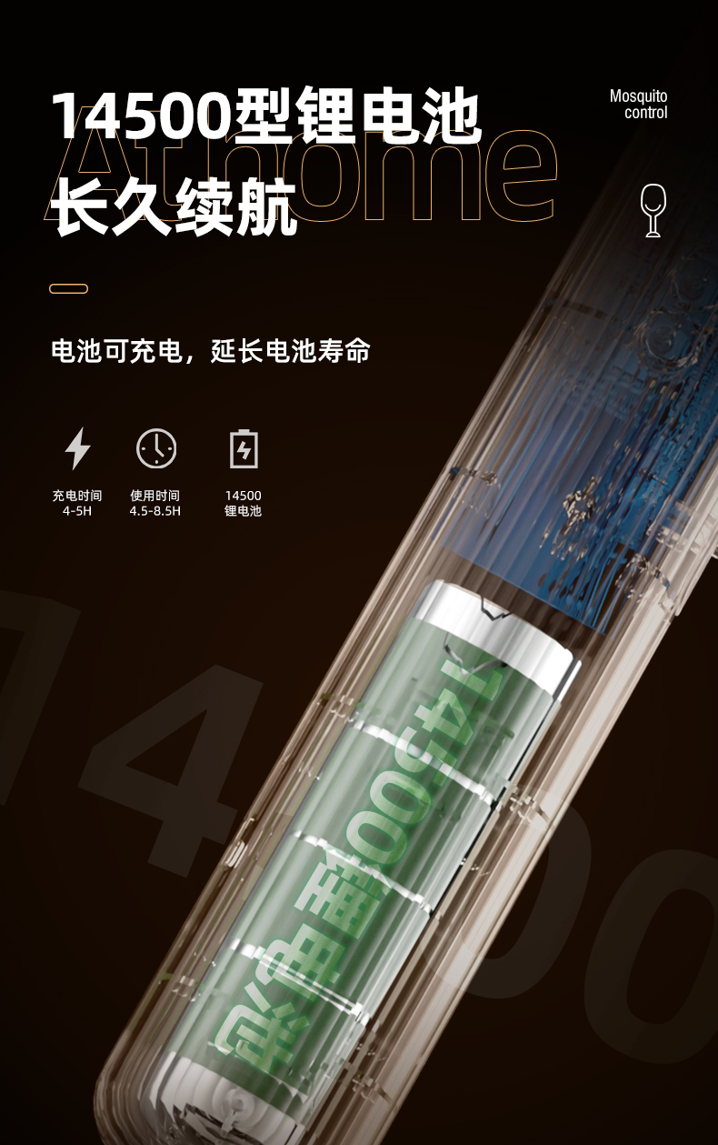 1.使用诱蚊灯模式,请接电使用,否则只能使用2个小时左右。使用手动模式灭蚊,电量大概可以使用1个月(使用时间和使用频次和时间有关)。