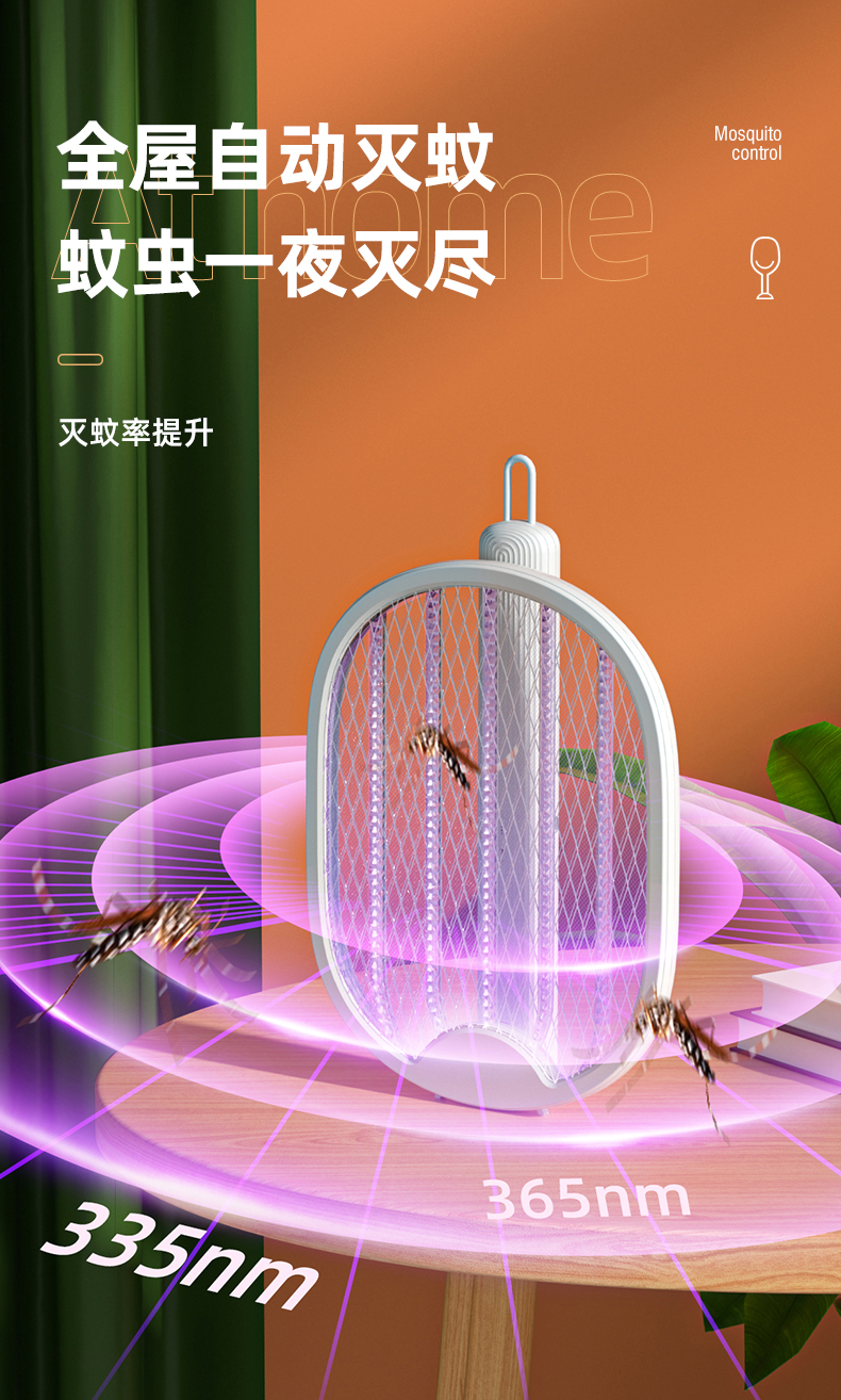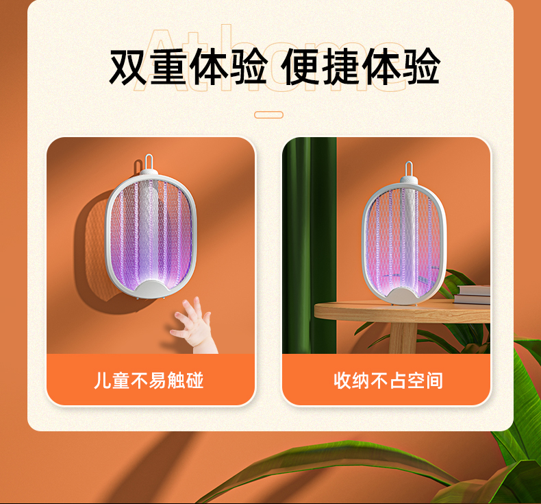 可以更好的收纳,不占地方,折叠起来后直接放抽屉里都可以,也可以直接挂在墙上,或者立在桌上开启自动诱蚊模式。