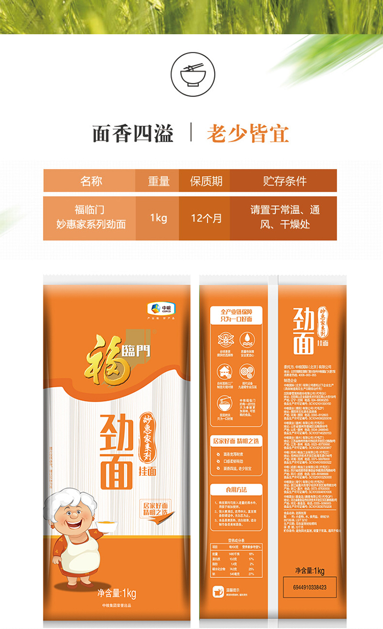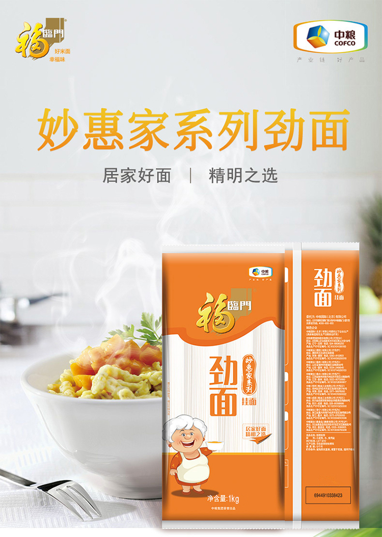 1kg福临门妙惠家劲爽挂面(方2)+1kg福临门妙惠家细滑挂面(圆1.25)