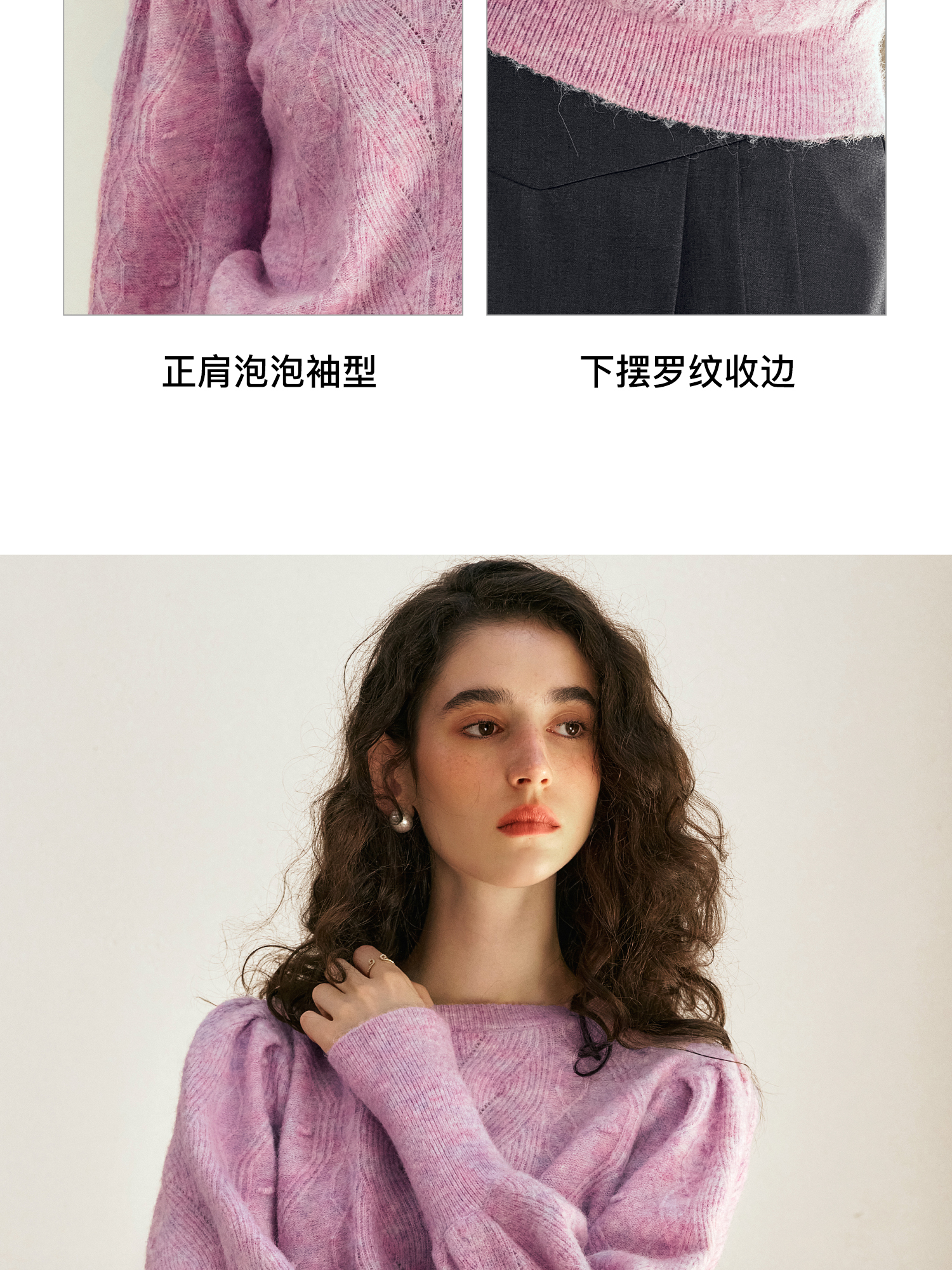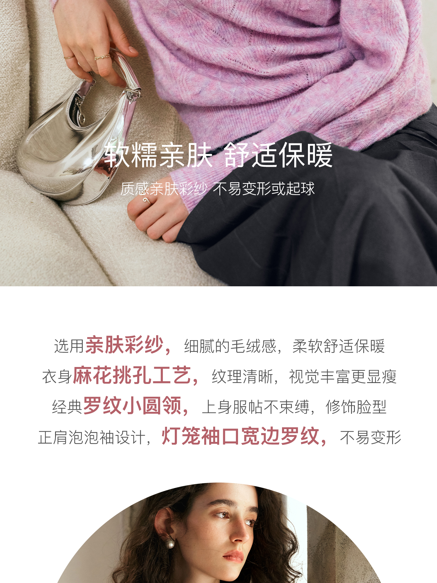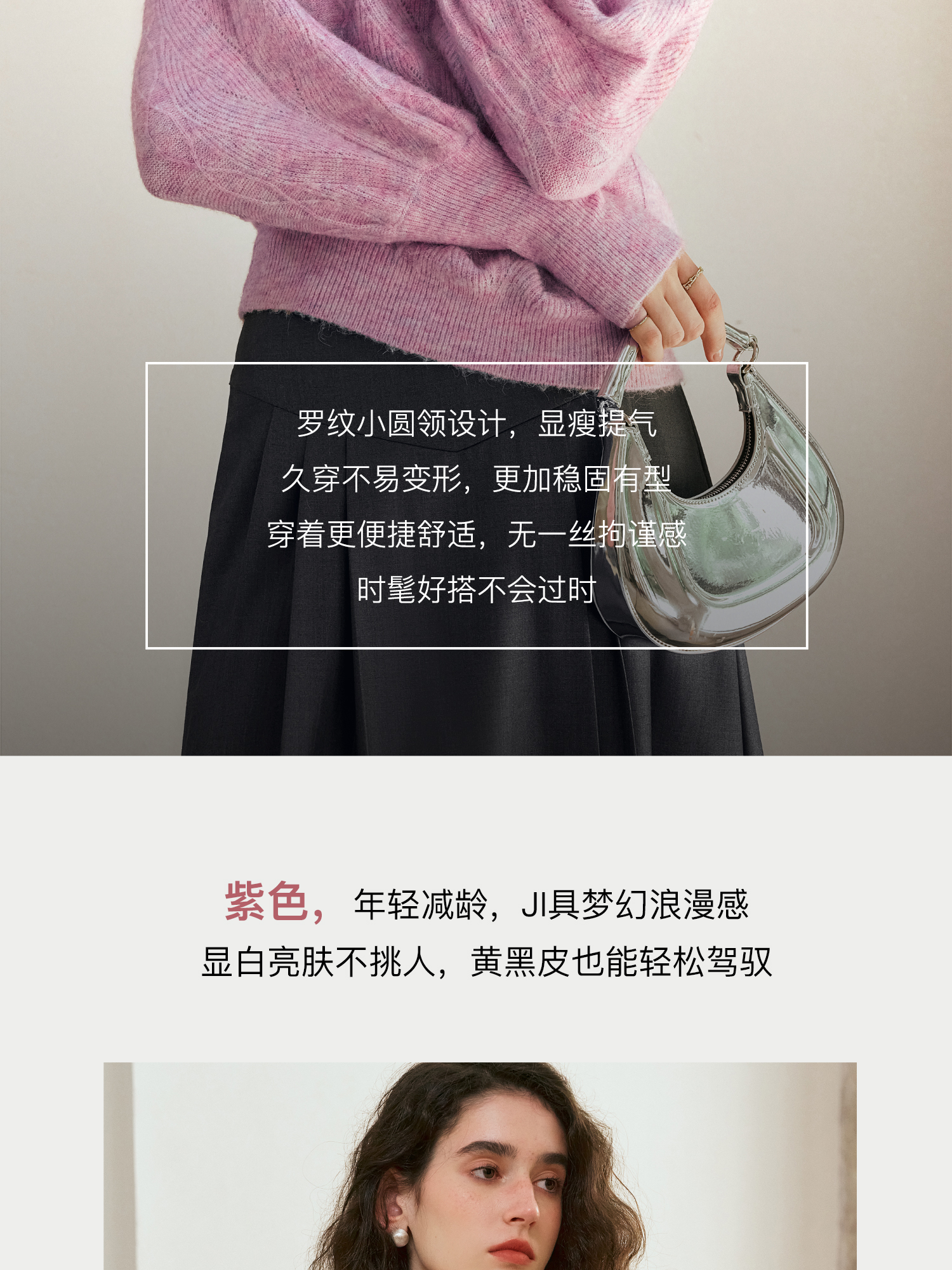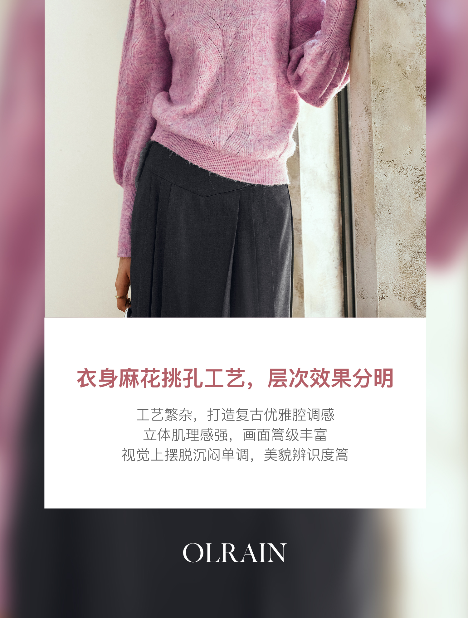 OLrain欧芮儿法式紫色毛衣女冬季2024年新款百搭圆领麻花套头上衣
