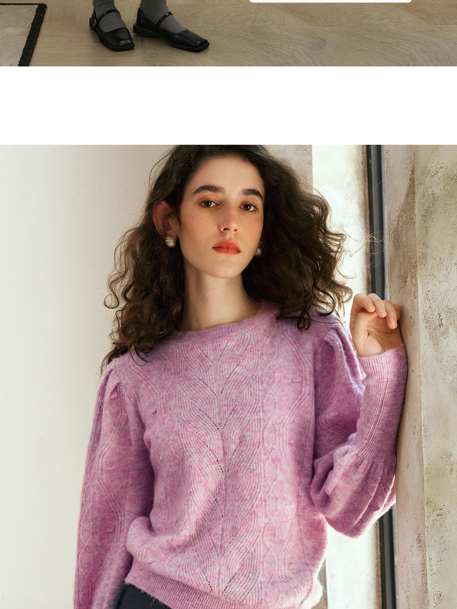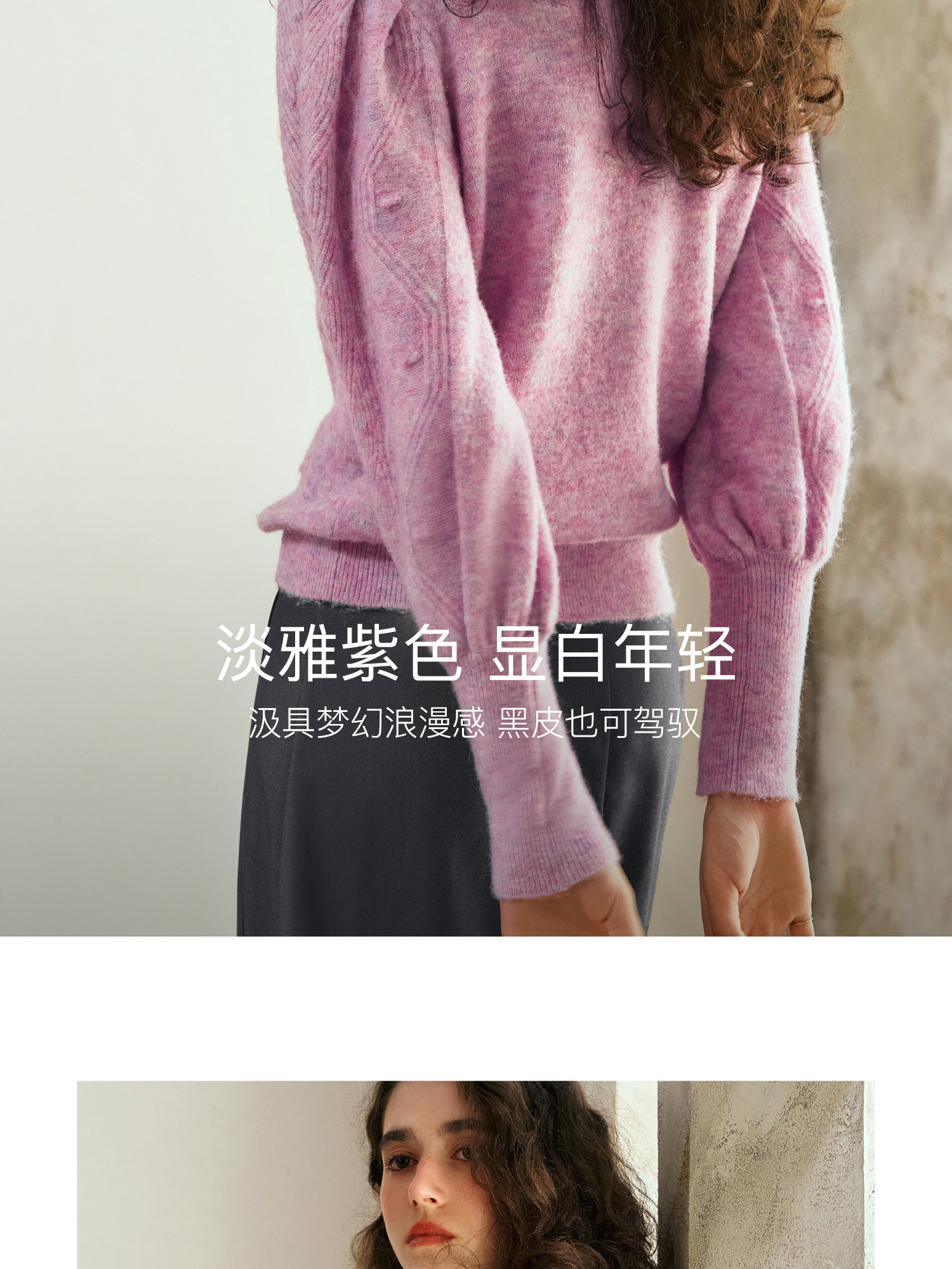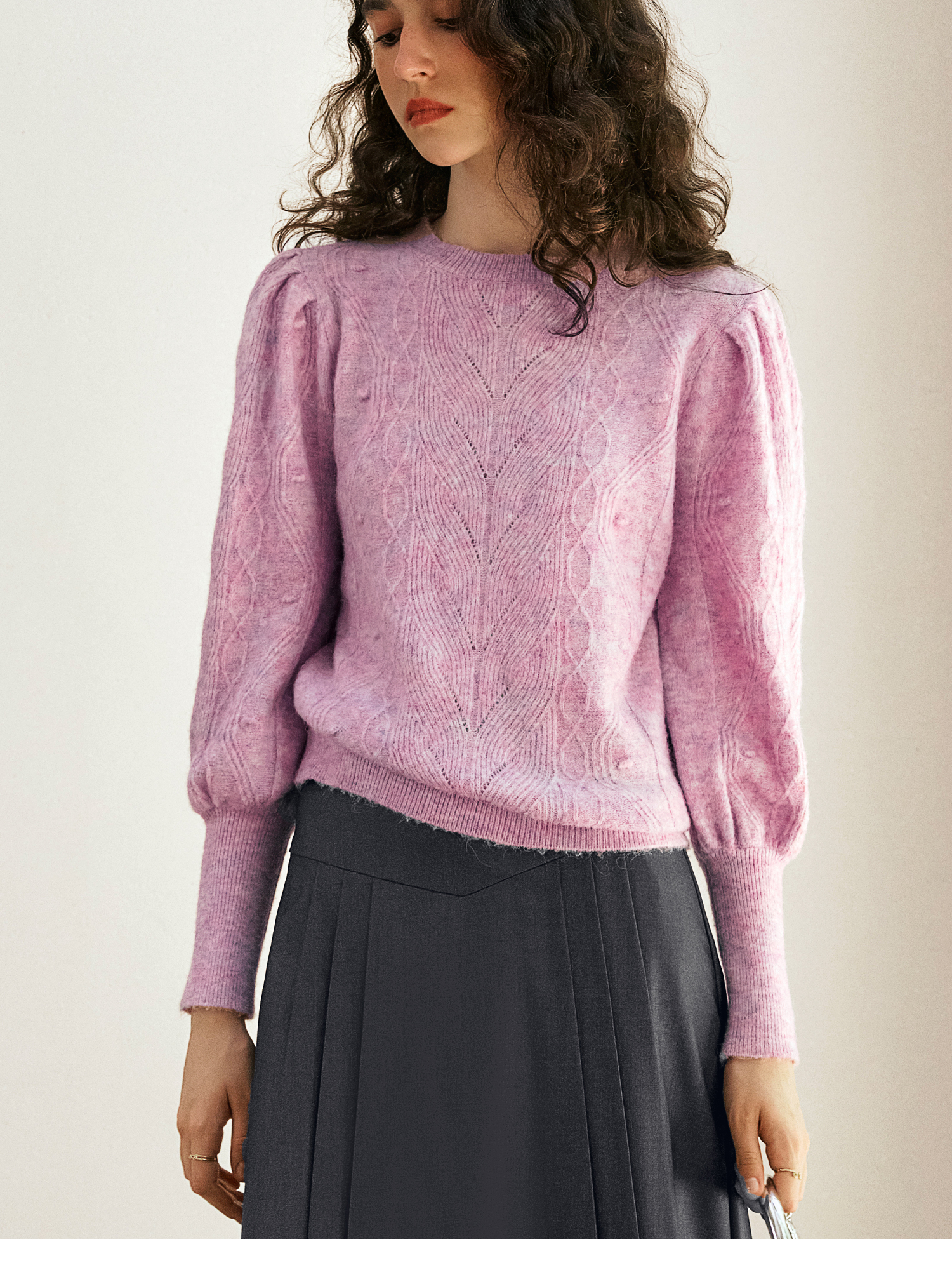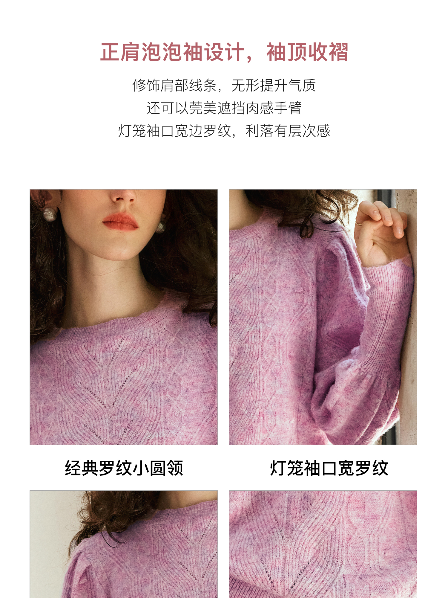 OLrain欧芮儿法式紫色毛衣女冬季2024年新款百搭圆领麻花套头上衣