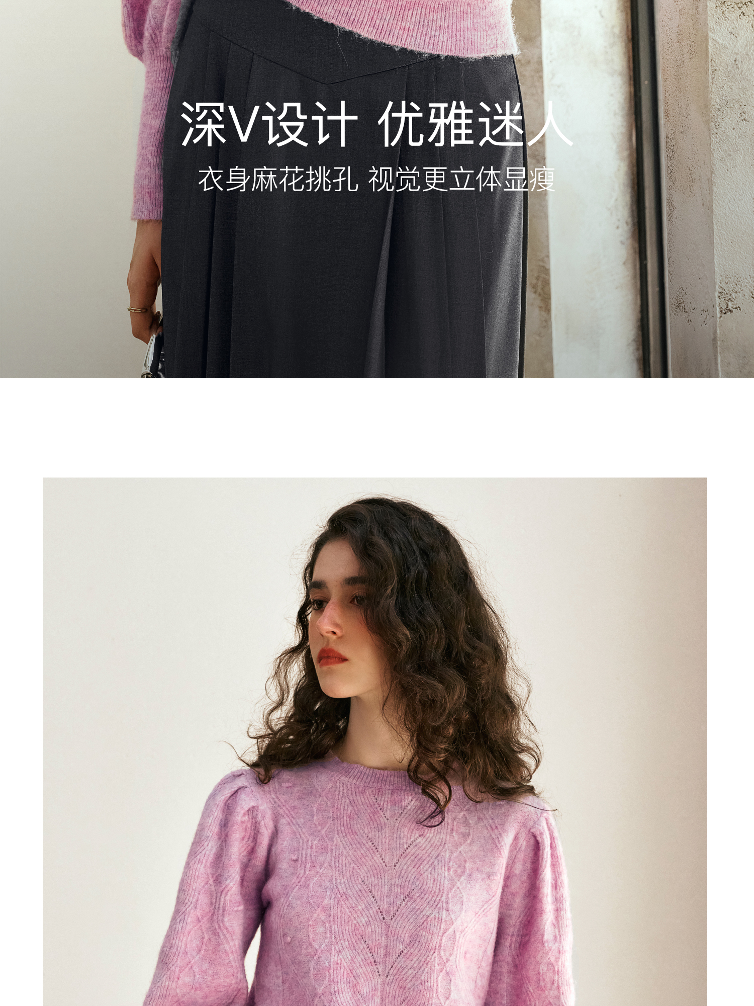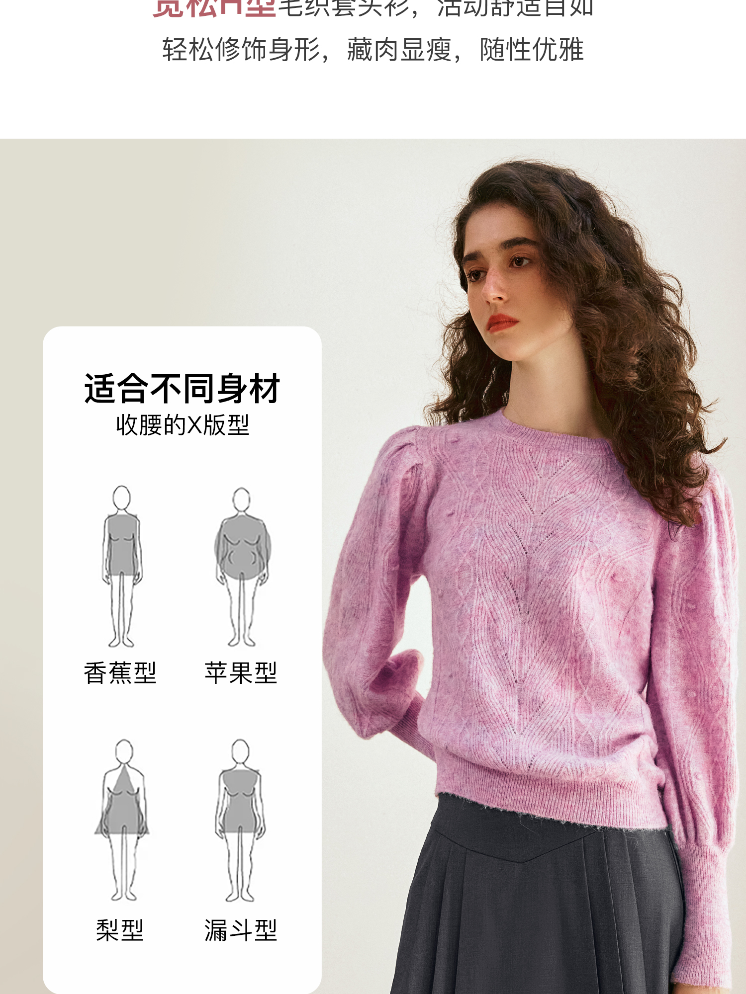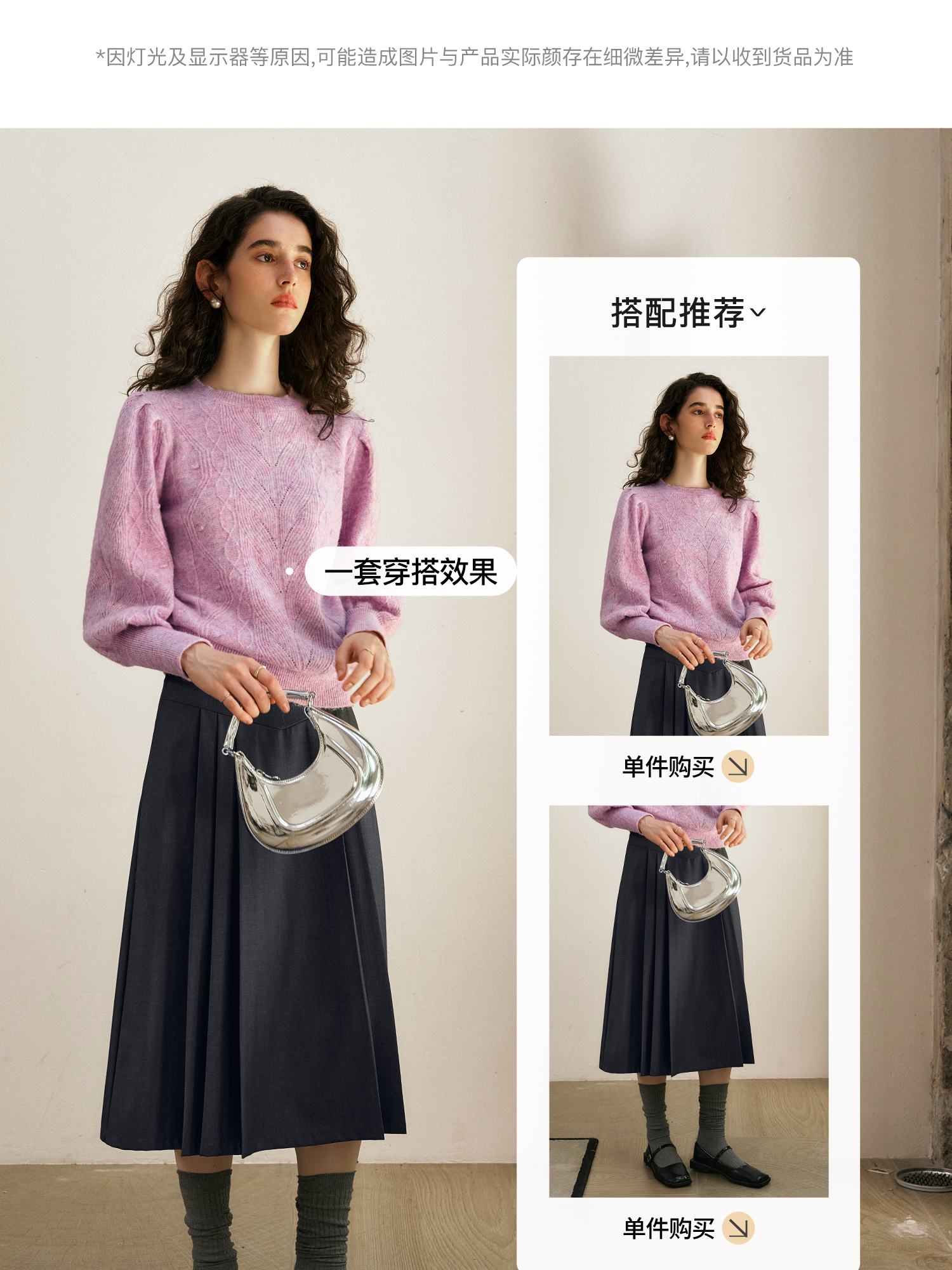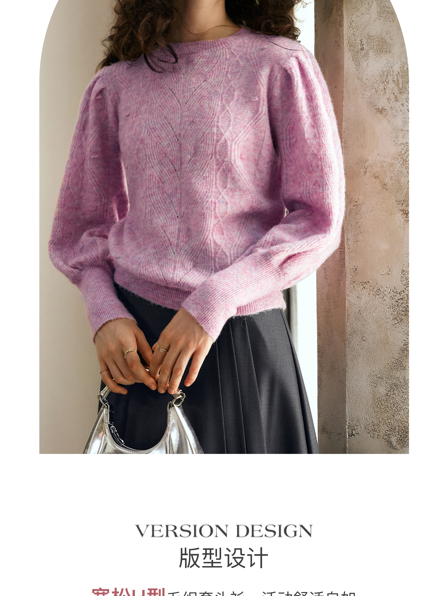 OLrain欧芮儿法式紫色毛衣女冬季2024年新款百搭圆领麻花套头上衣