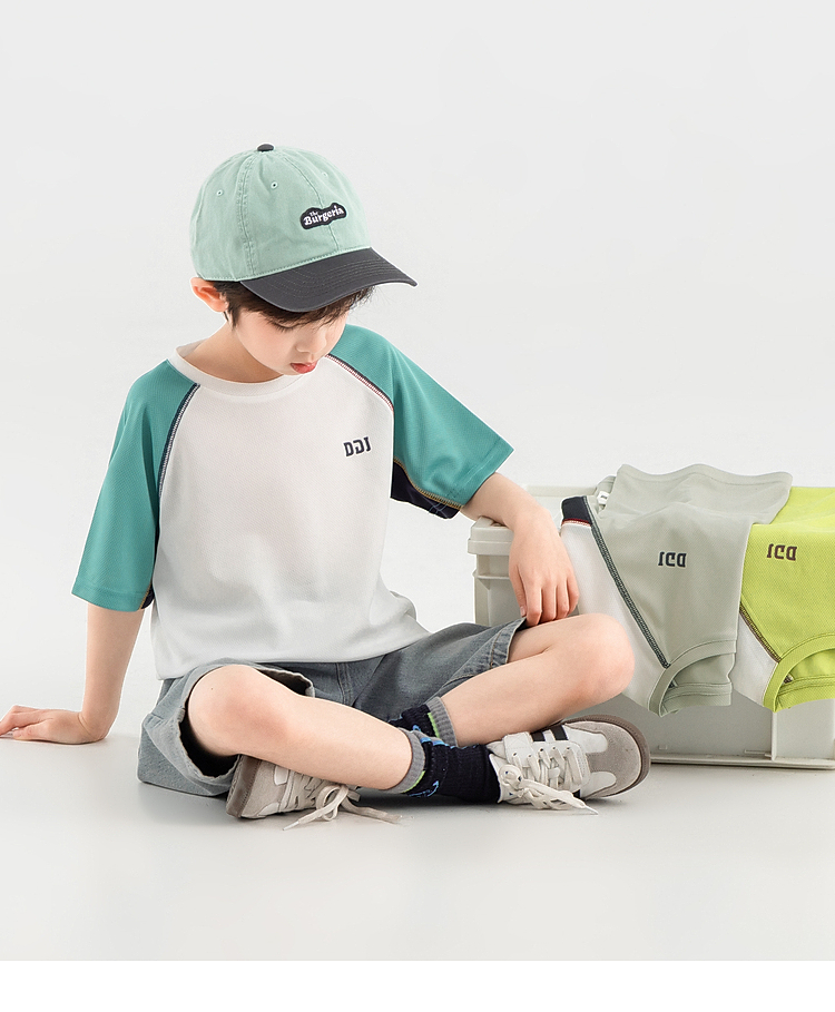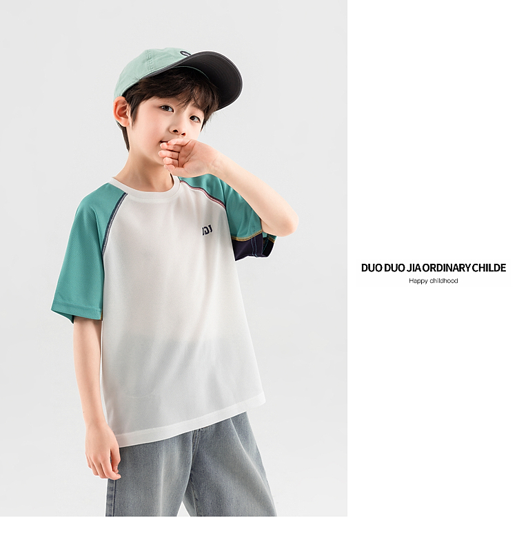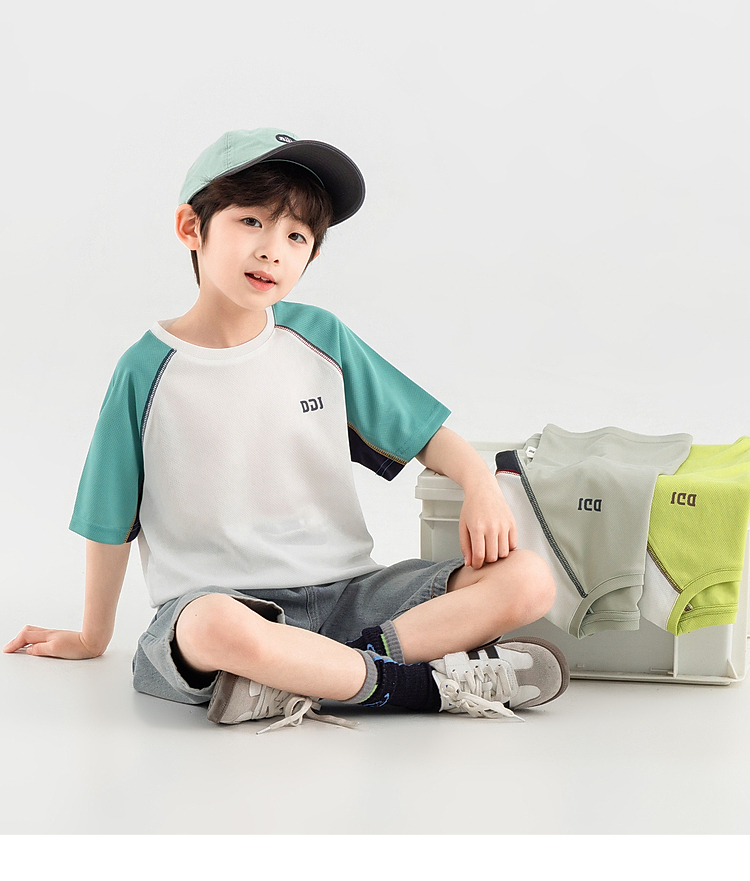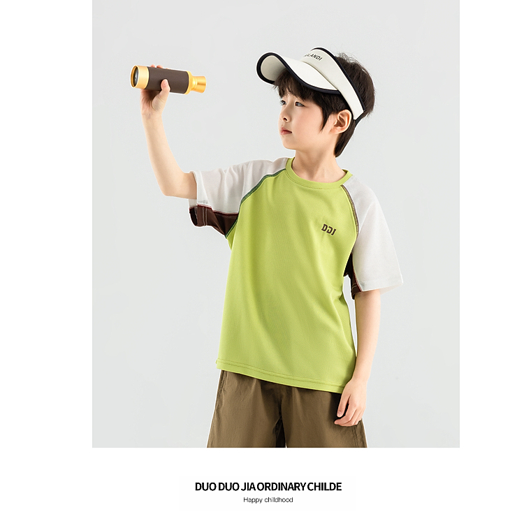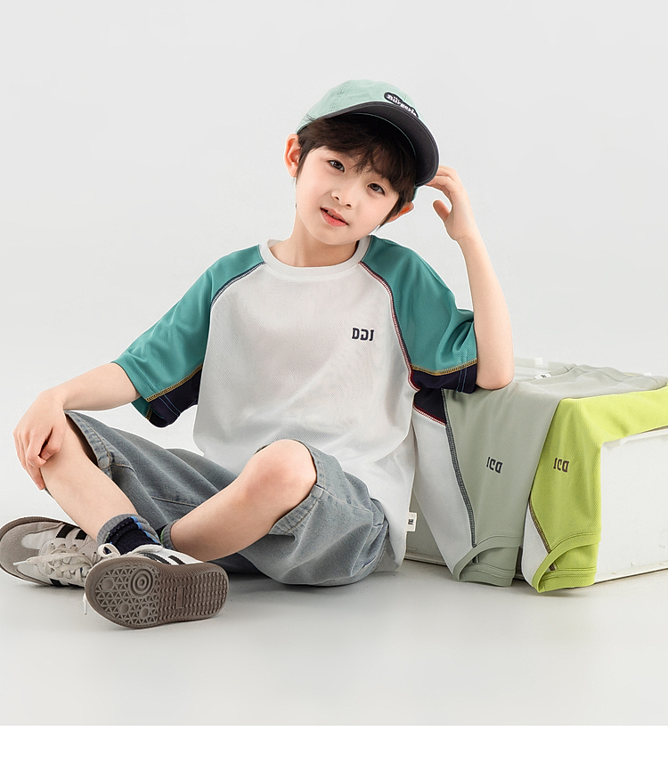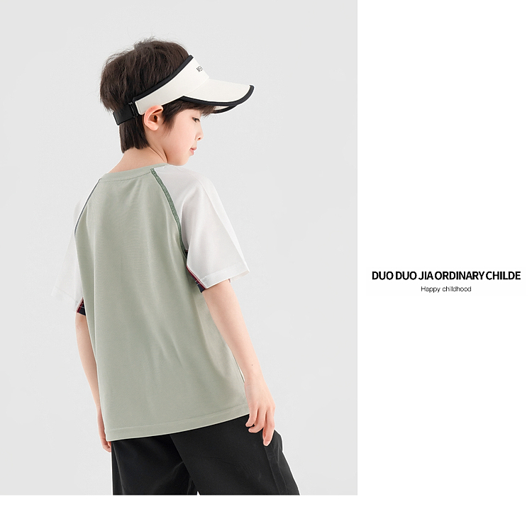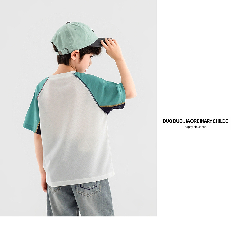 【件件底价~团购24.9元】多多家男童T恤短袖2025夏季新款儿童撞色拼接男孩半袖上衣夏装潮10661