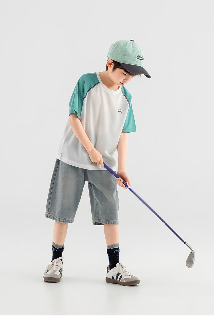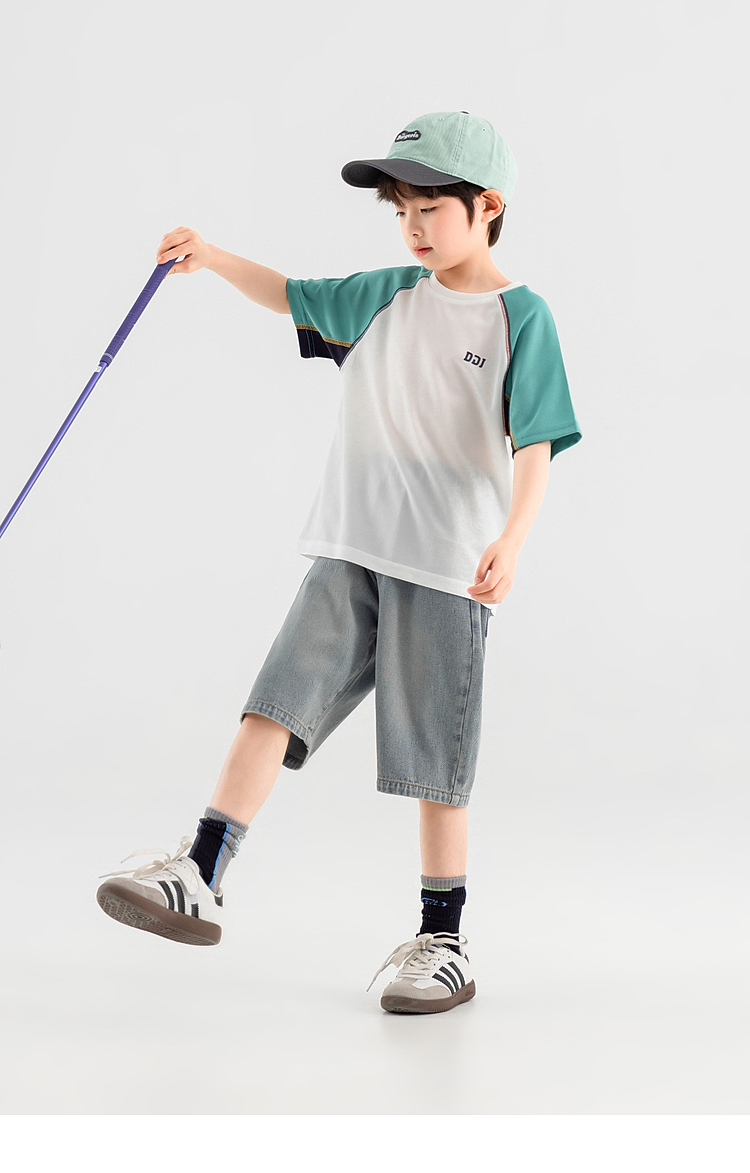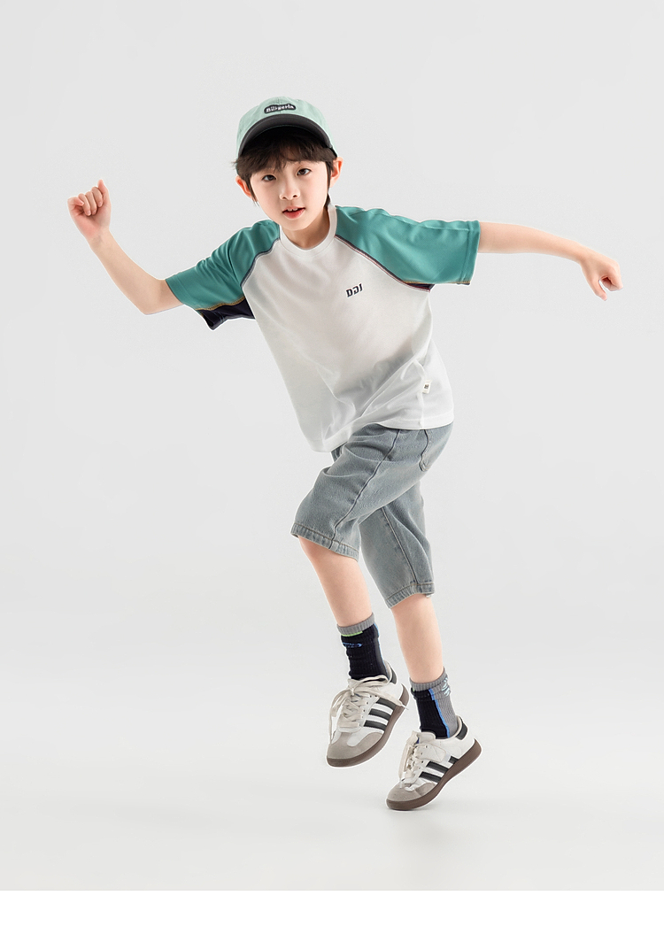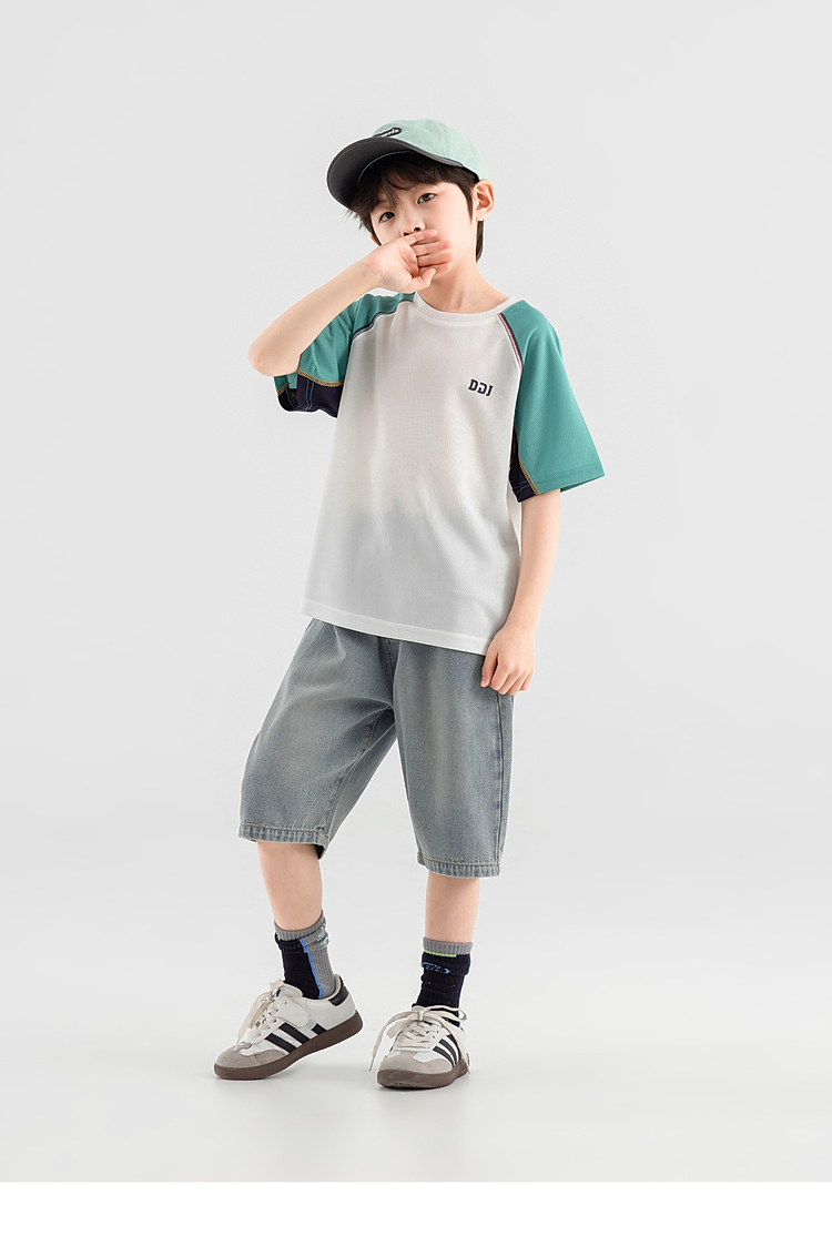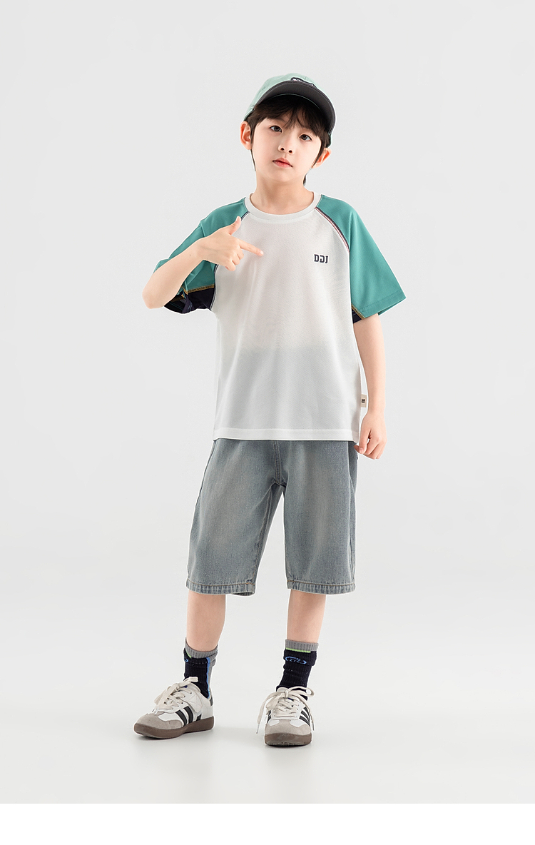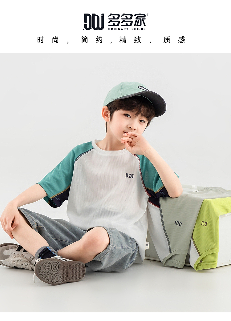 【件件底价~团购24.9元】多多家男童T恤短袖2025夏季新款儿童撞色拼接男孩半袖上衣夏装潮10661