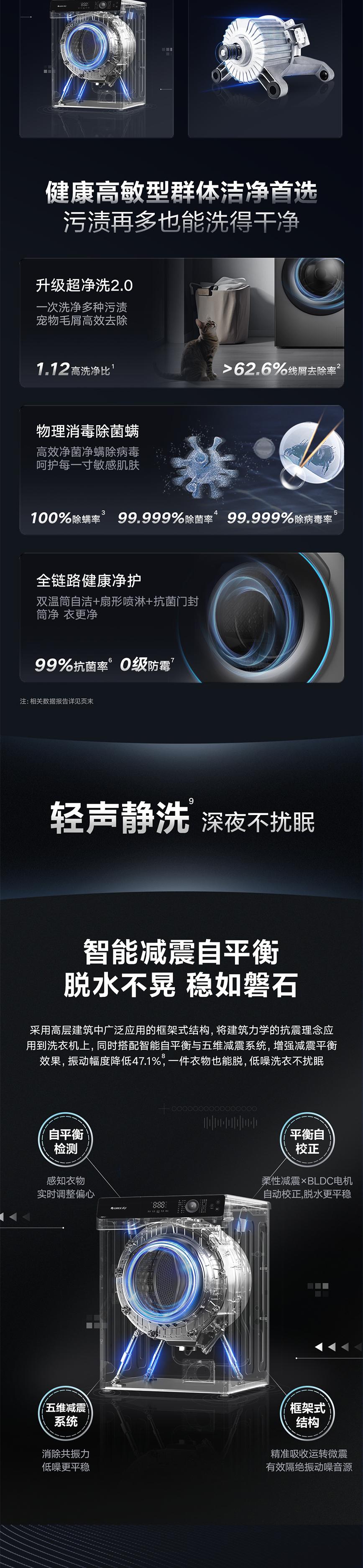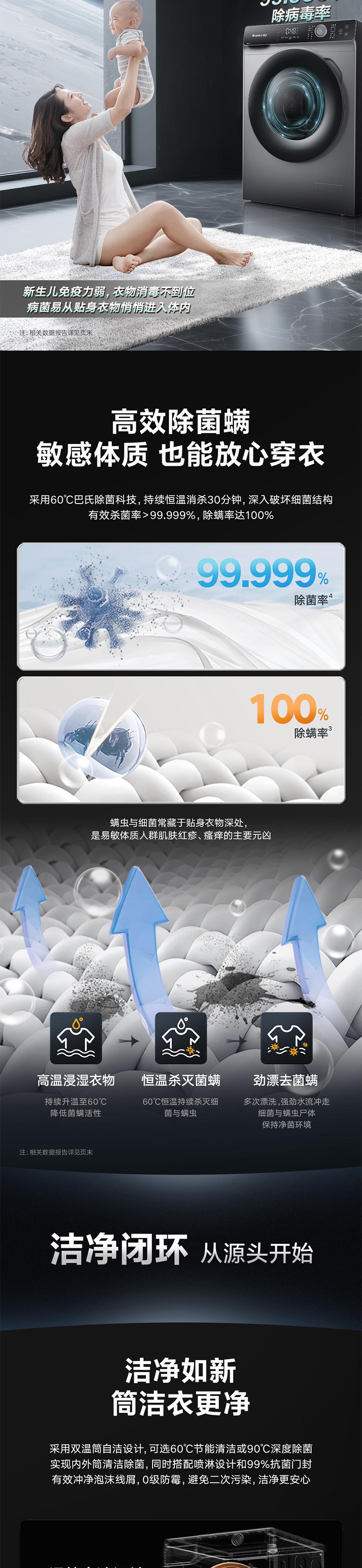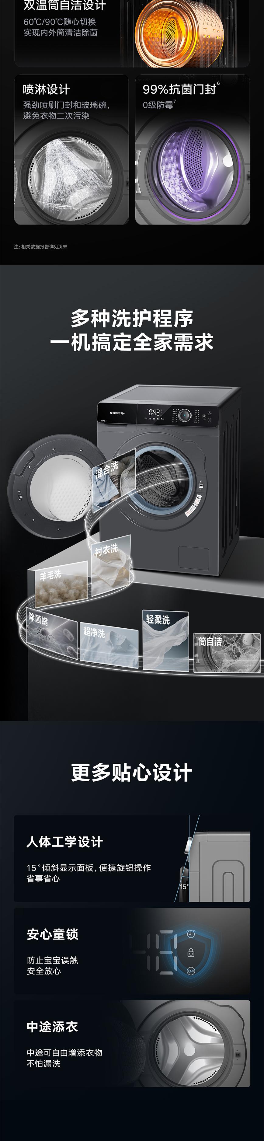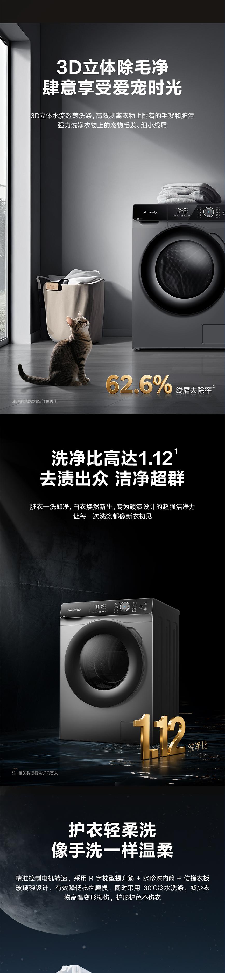 格力净静-Ⅱ滚筒洗衣机 10kg 健康净护 轻声静洗 XQG100-B1201Bi1 (墨云灰)