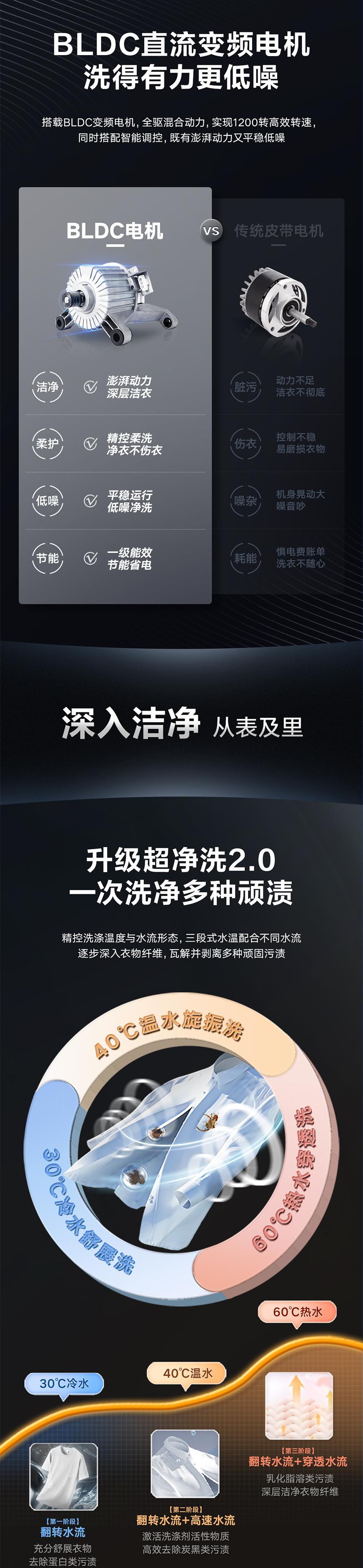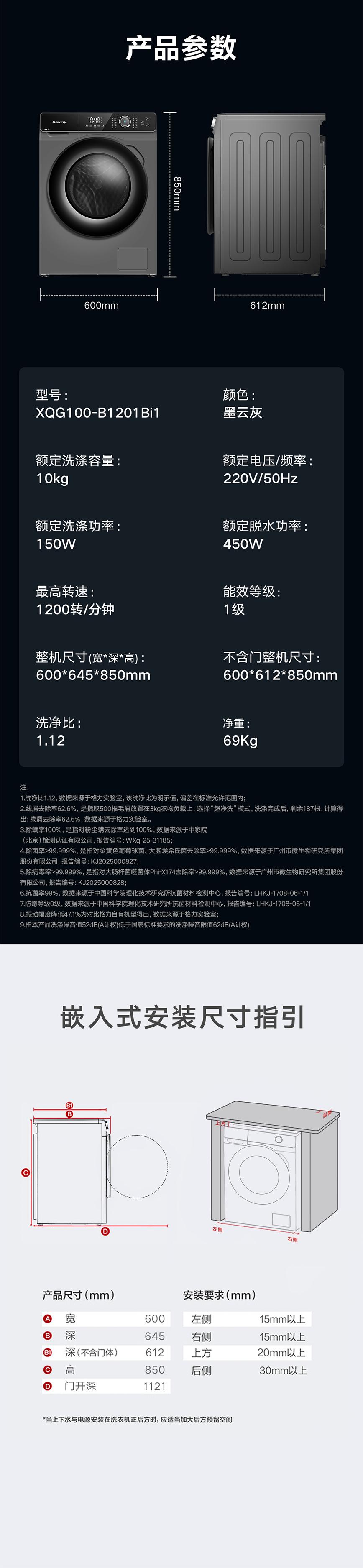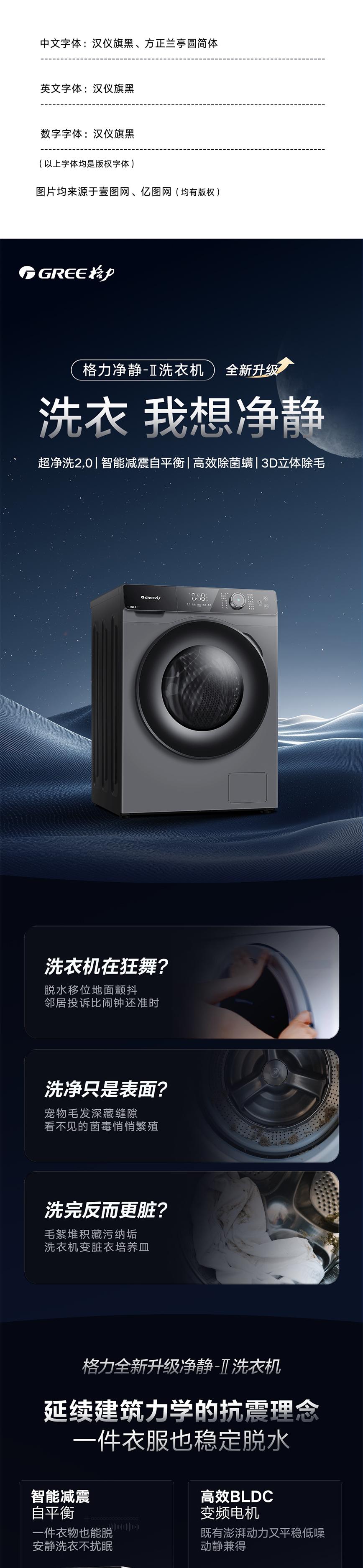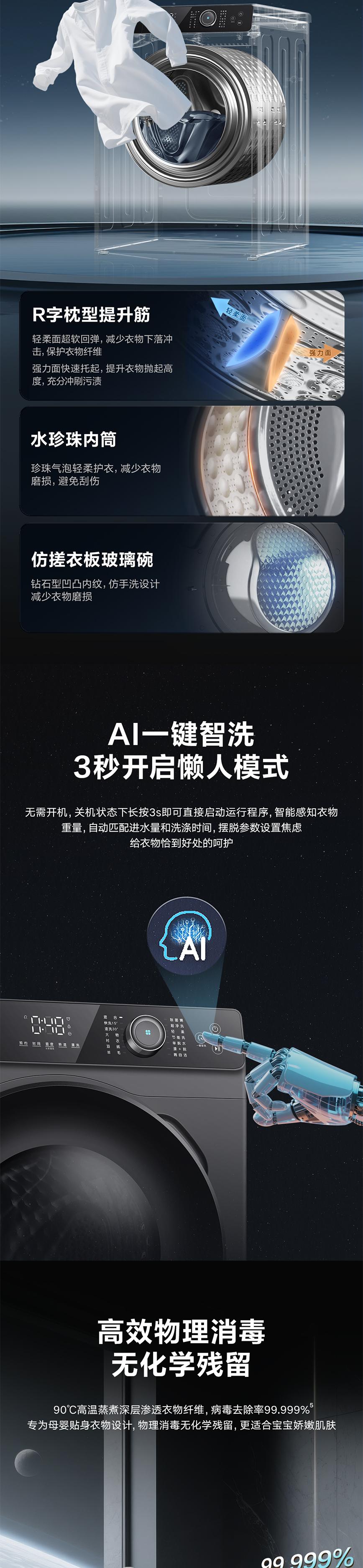 格力净静-Ⅱ滚筒洗衣机 10kg 健康净护 轻声静洗 XQG100-B1201Bi1 (墨云灰)