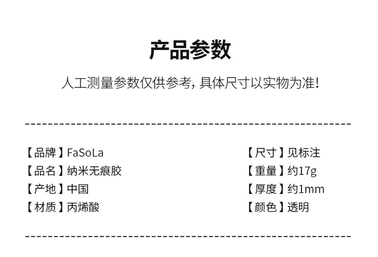 FaSoLa纳米胶带双面无痕胶透明不留痕防滑贴片粘贴固定器
