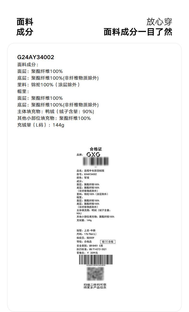 GXG男装 多口袋中长款羽绒服连帽羽绒外套保暖 24冬季热卖
