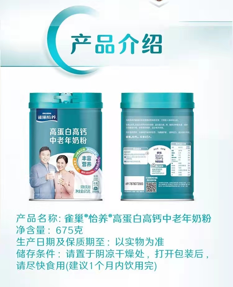 雀巢怡养高蛋白高钙中老年营养奶粉675g