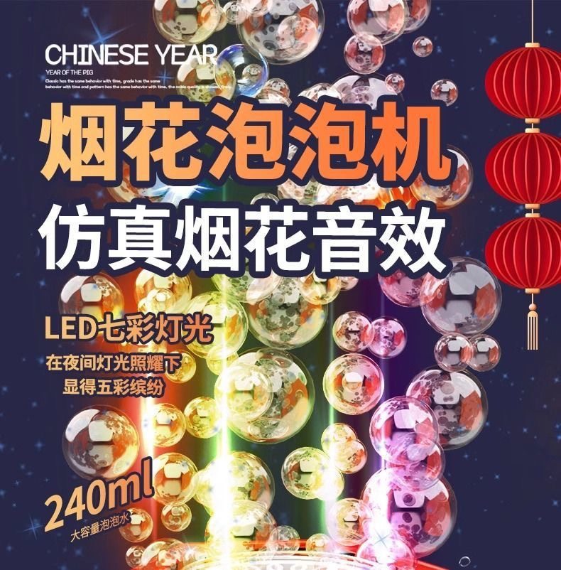 抖音热卖爆款新年烟花泡泡机全自动鞭炮电动音效生日礼物网红玩具