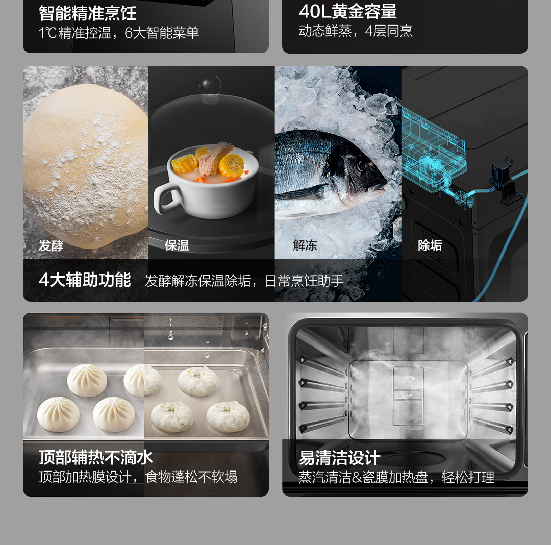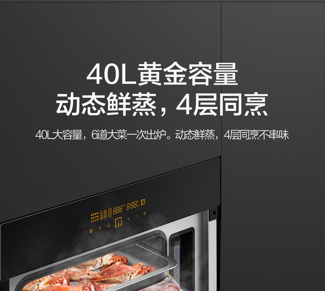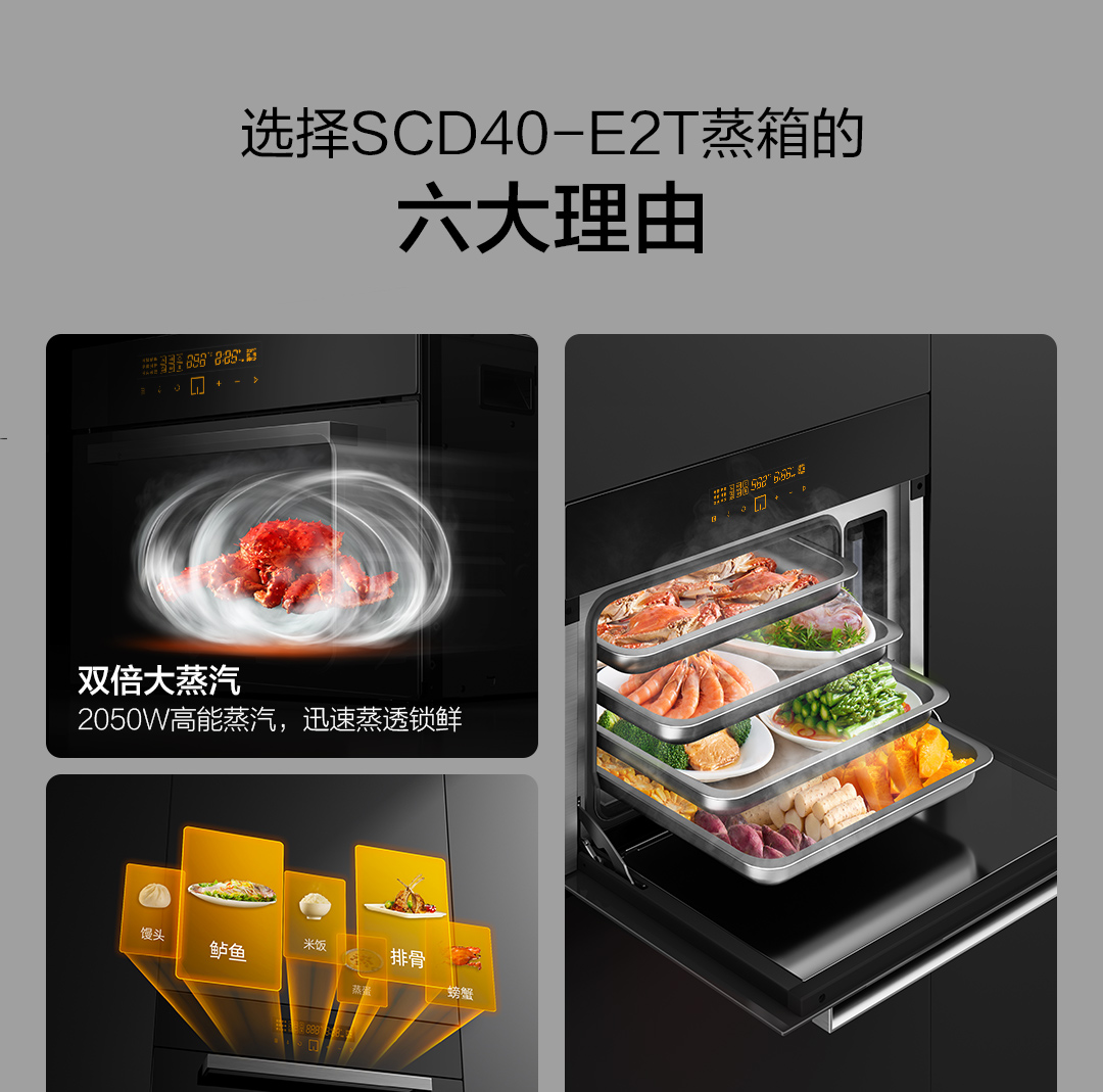方太嵌入式电蒸箱 40L大容量 家用厨房电蒸炉 双倍大蒸汽顶部不滴水 记忆功能SCD40-E2T官方正品