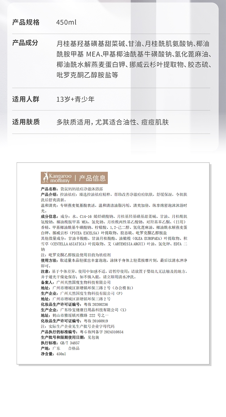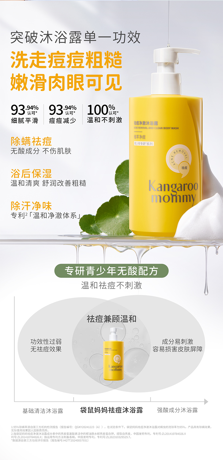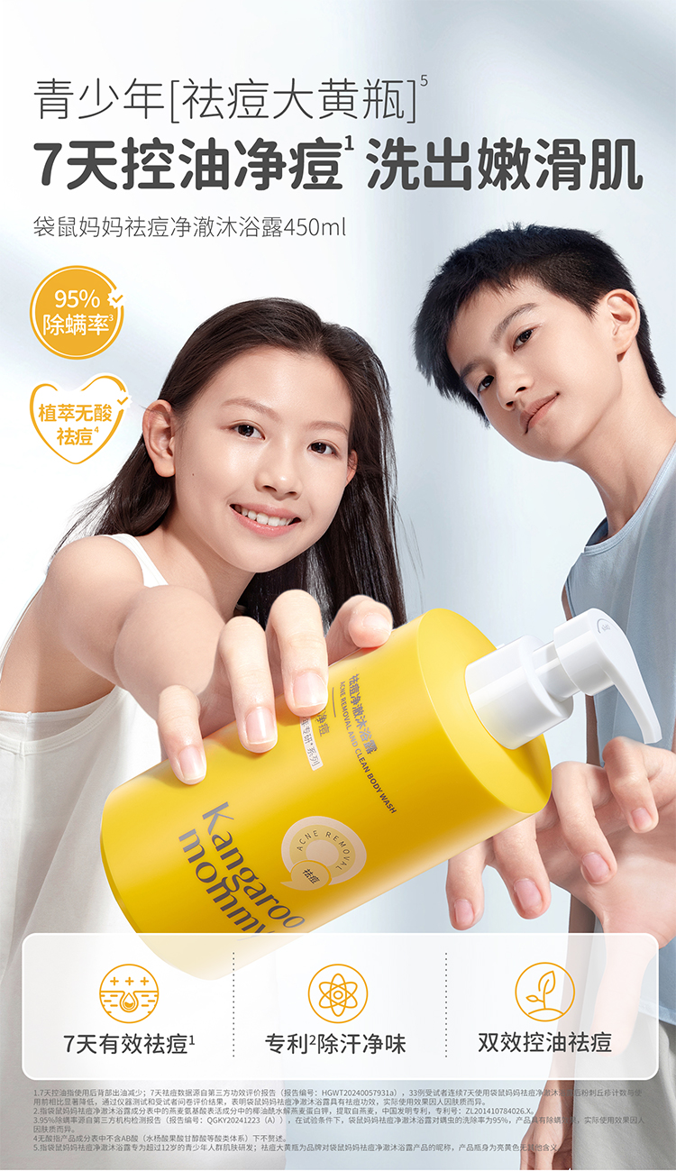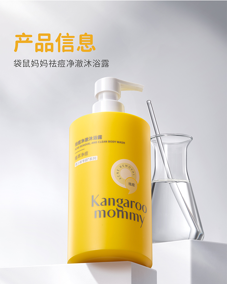 【青少年祛痘沐浴露】无酸祛痘 除螨控油 袋鼠妈妈祛痘净澈沐浴露450ml
