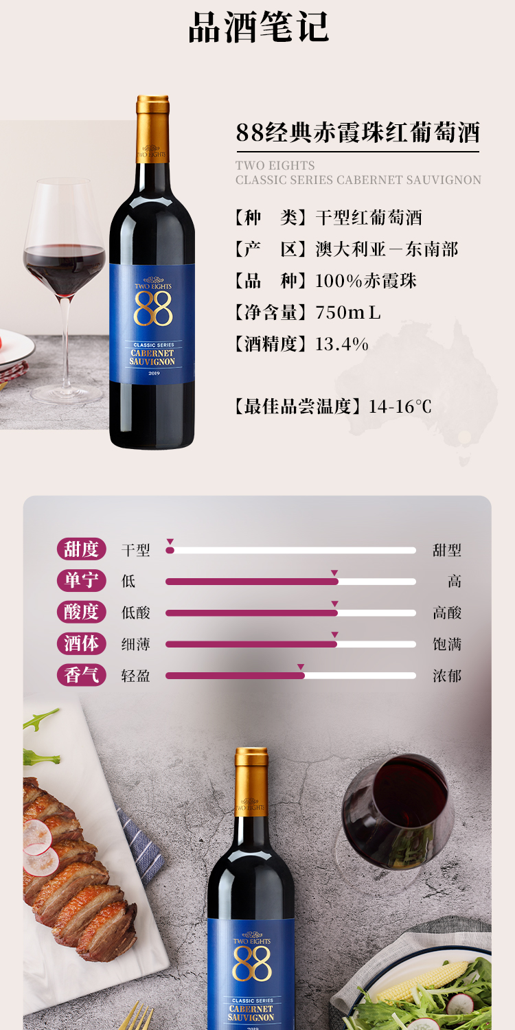 【第二件0元】首彩 88经典赤霞珠红葡萄酒 750ml