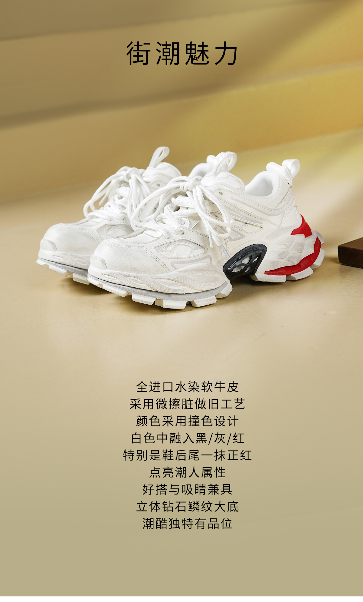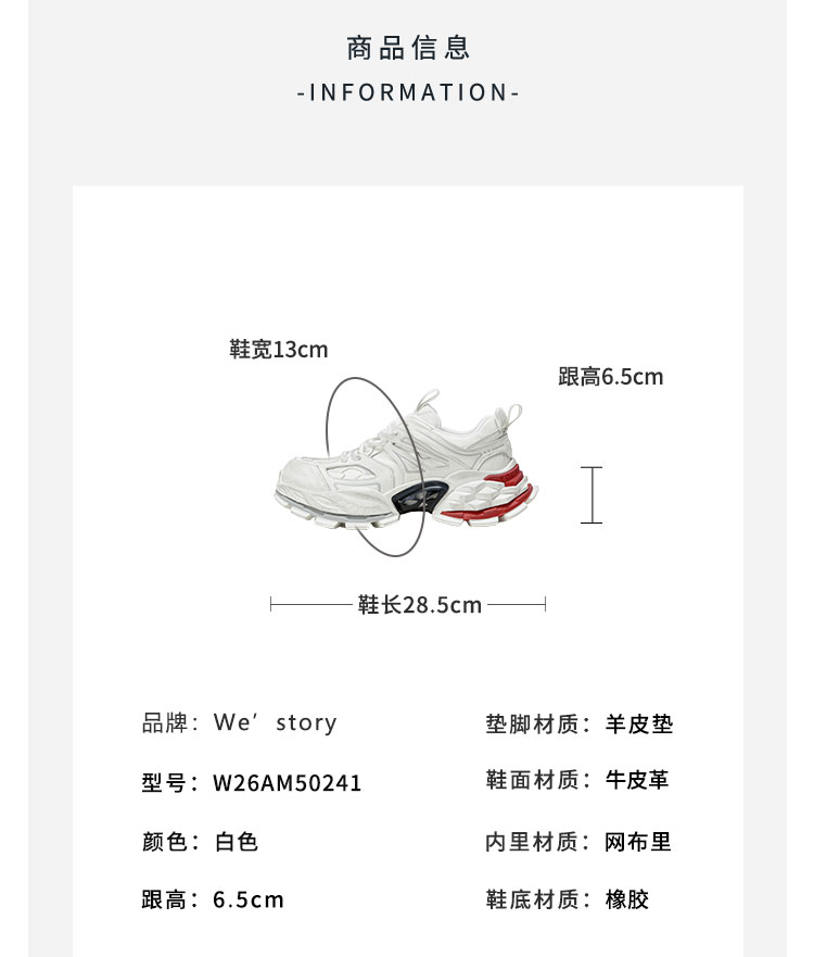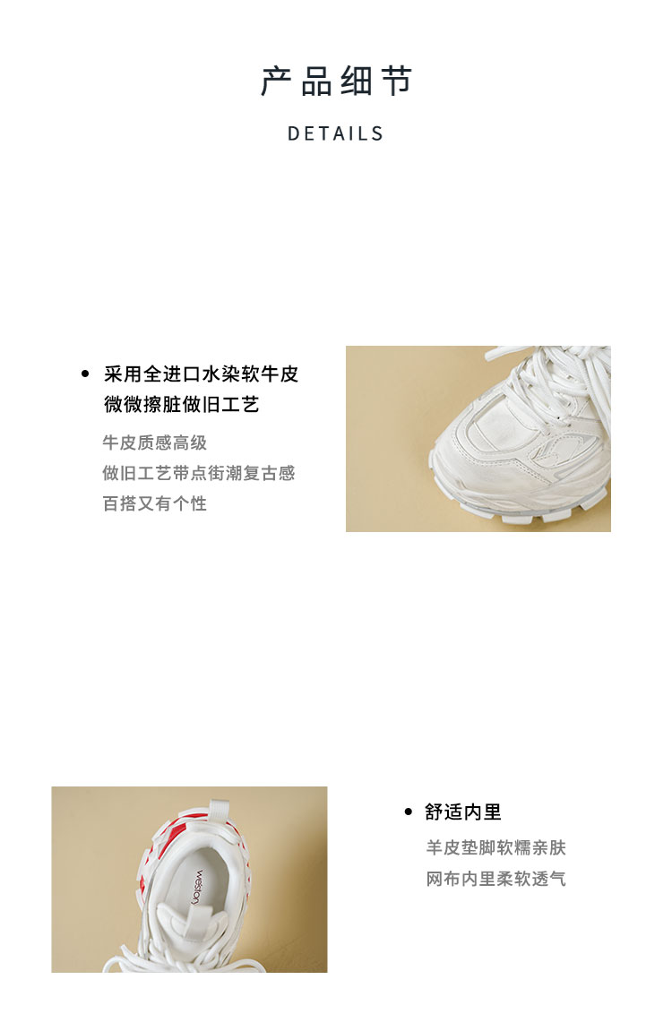 Westory2026年春季厚底白色老爹鞋擦脏做旧复古系带潮酷运动鞋W26AM50241