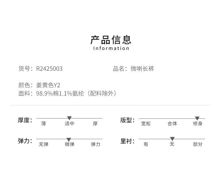 VIVIAN LIU薇薇安刘R2425003春女装新款时尚插兜显瘦微喇长裤