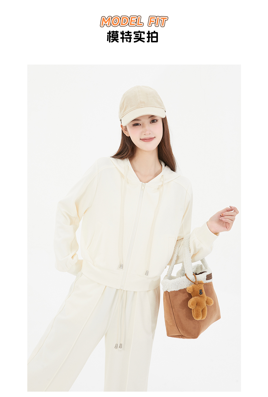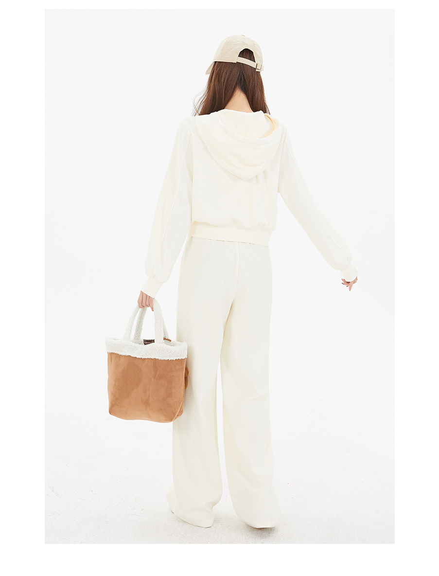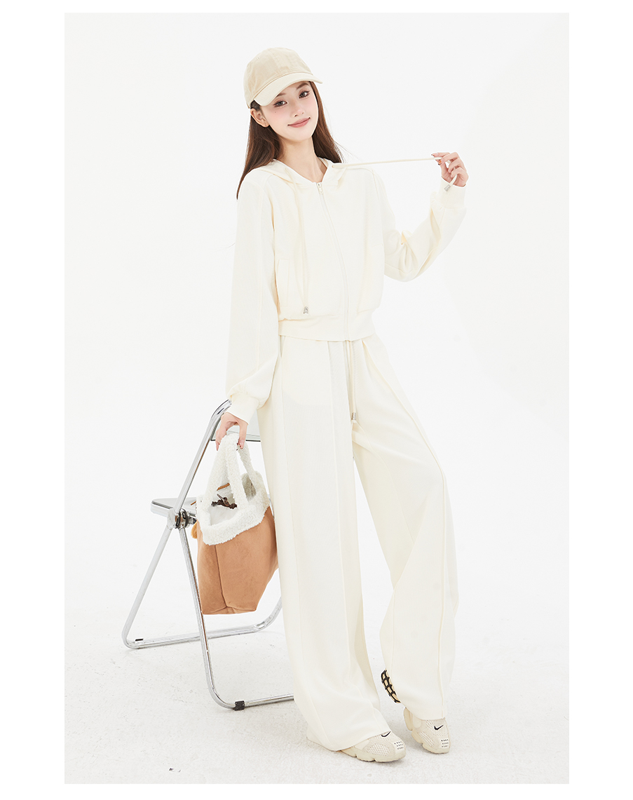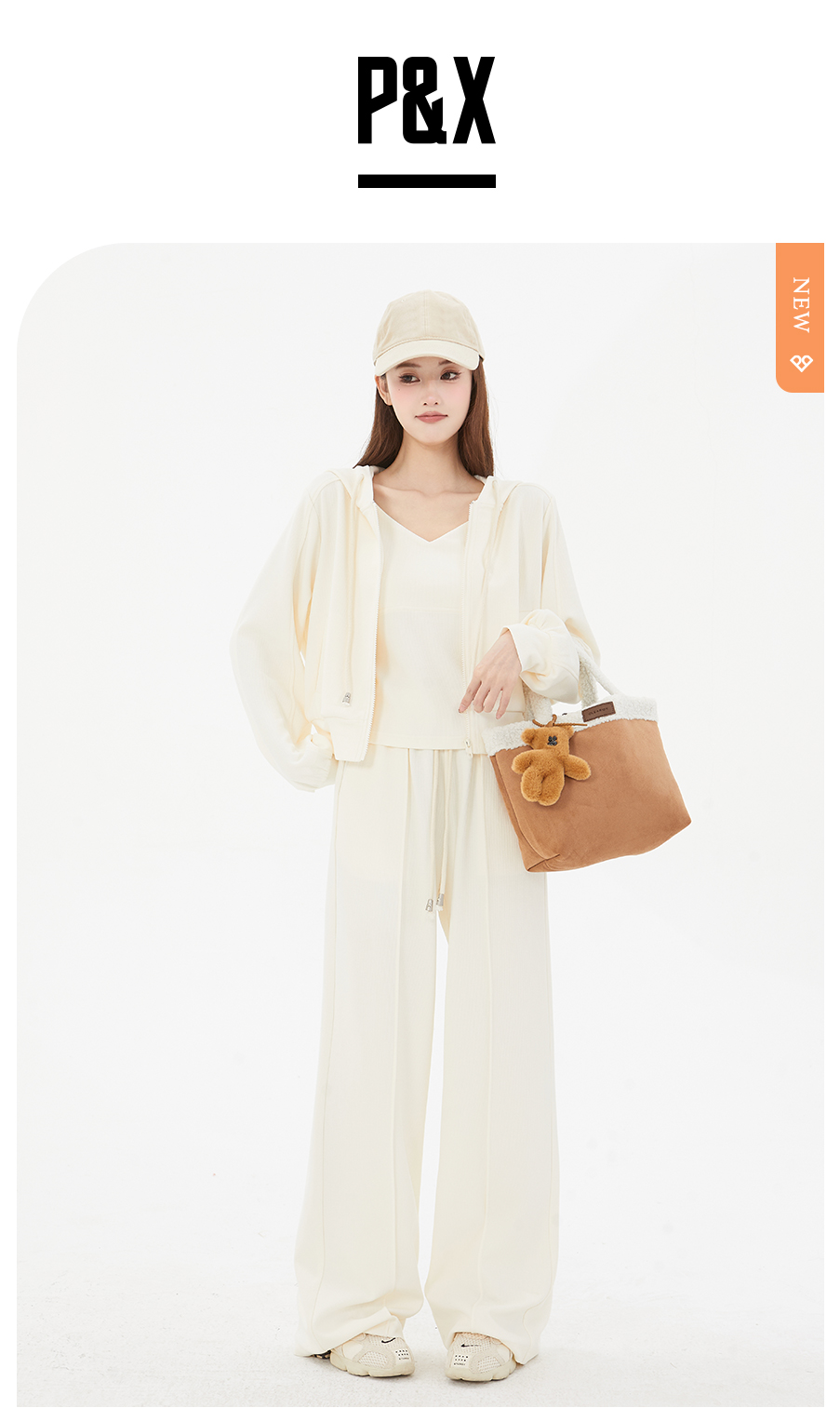P&X设计师女装 随性宽松休闲裤百搭拖地阔腿两件套825114017 米色