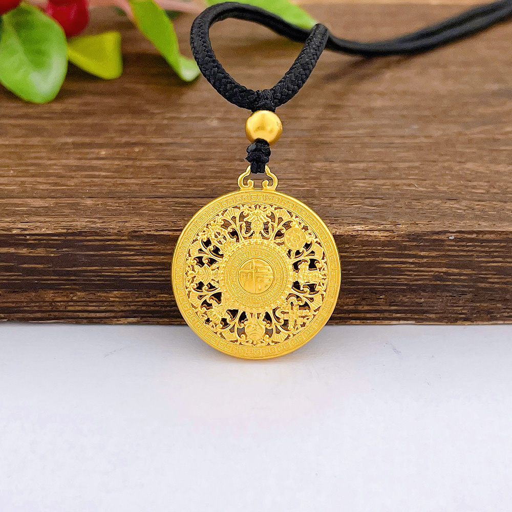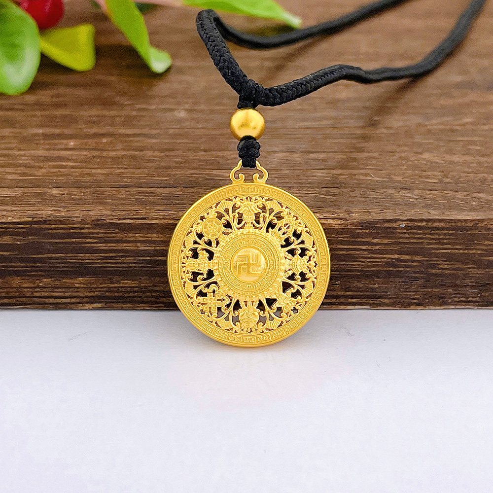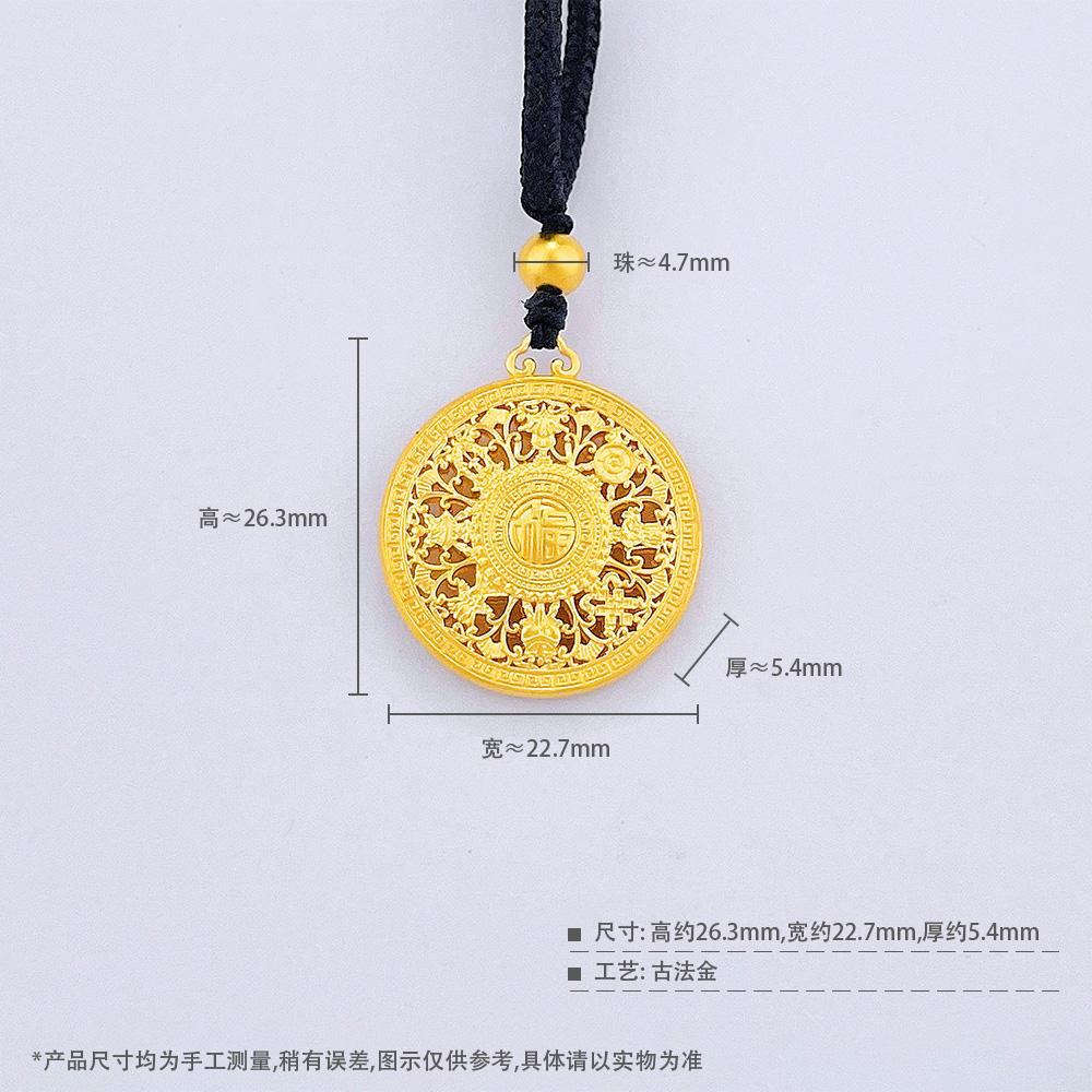 【限时克减128元】足金 #八宝罗盘 #古法挂绳空心镂空万福八宝罗盘吊坠(面宽约26.3*22.7mm,含珠子)(ANWZGFDZ00200-15)预售产品下单后不退款不退货不换货不补差价