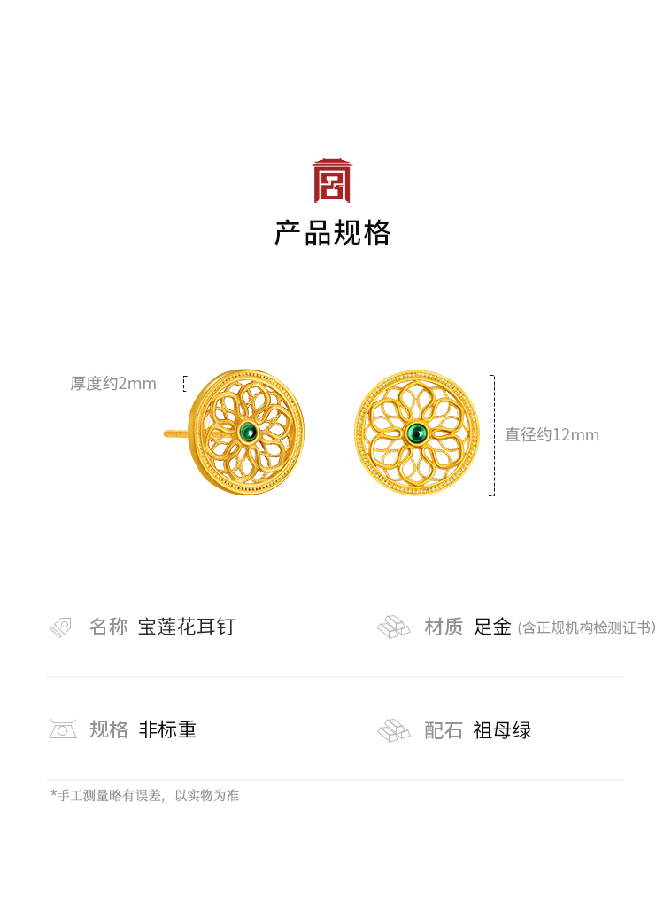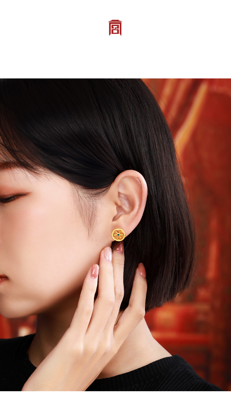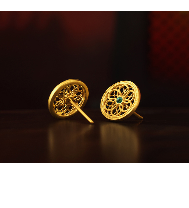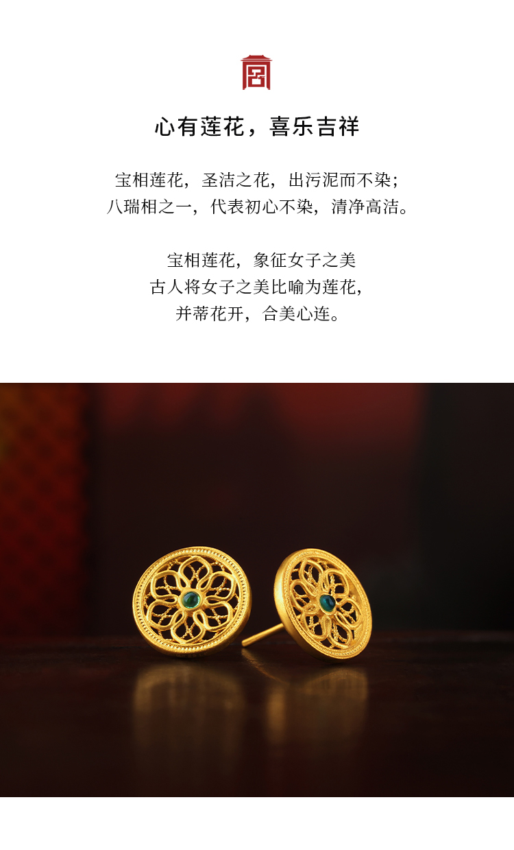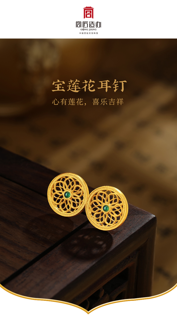 宫匠造办 宝莲花耳钉 黄金镶祖母绿