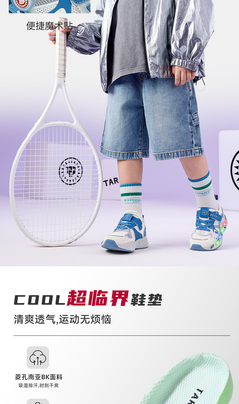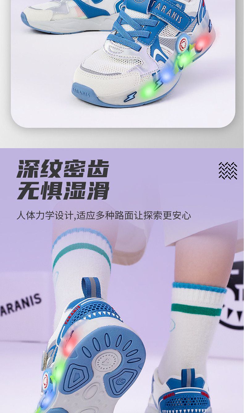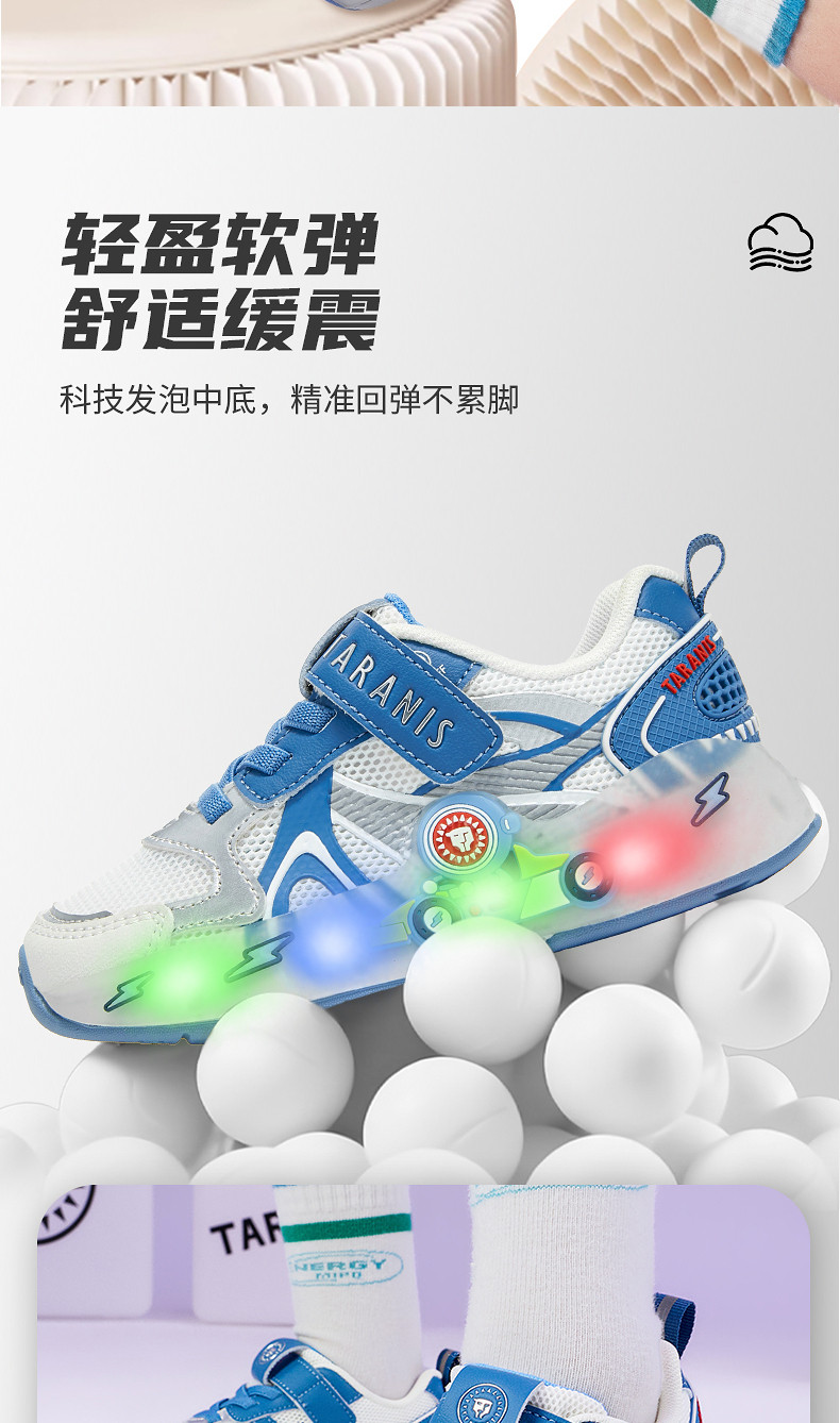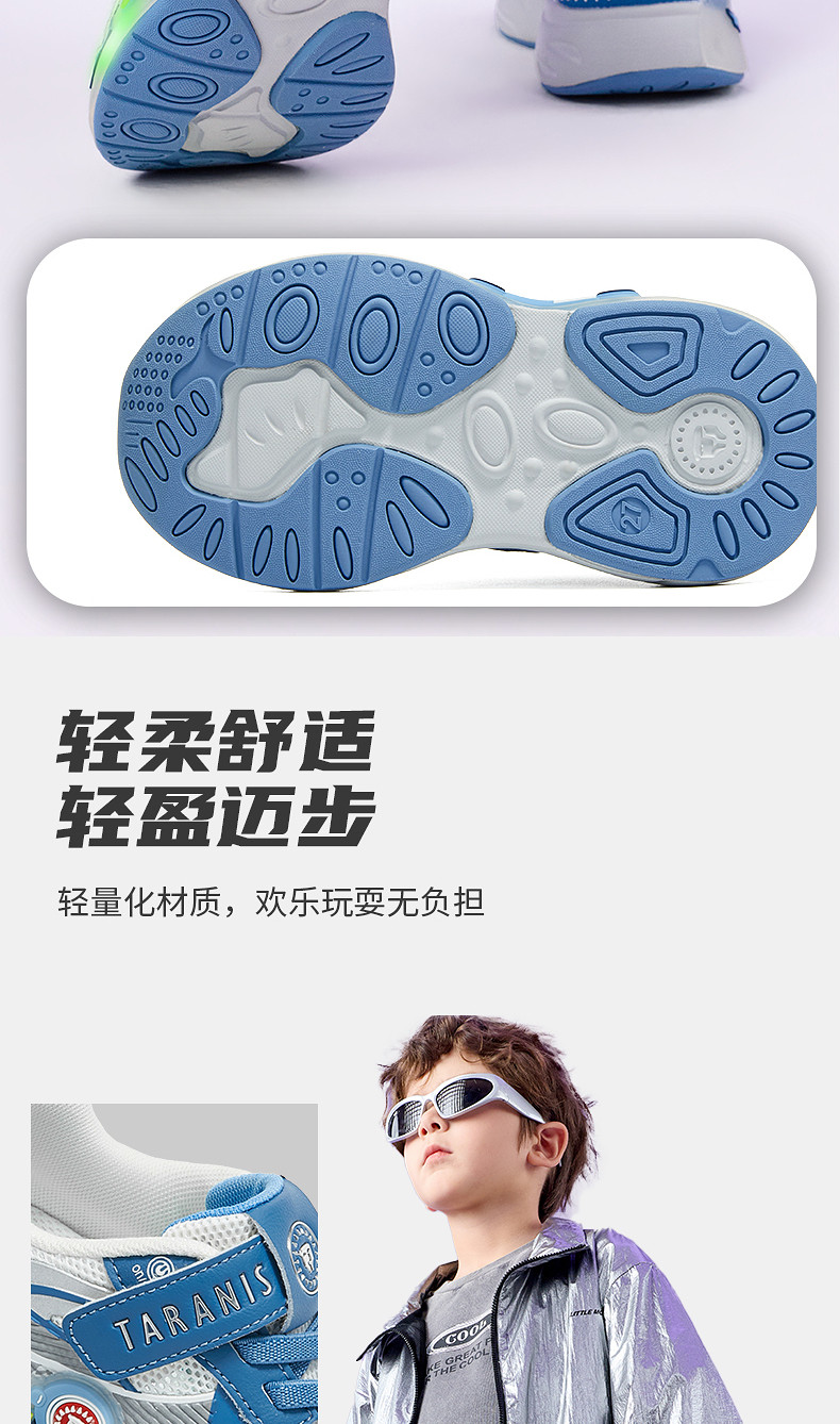 泰兰尼斯儿童闪灯运动鞋春季新款男童发光鞋舒适跑步鞋子防滑耐磨T01X6A8616