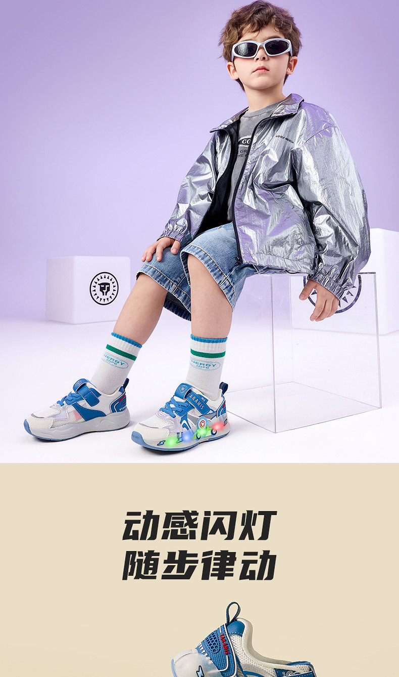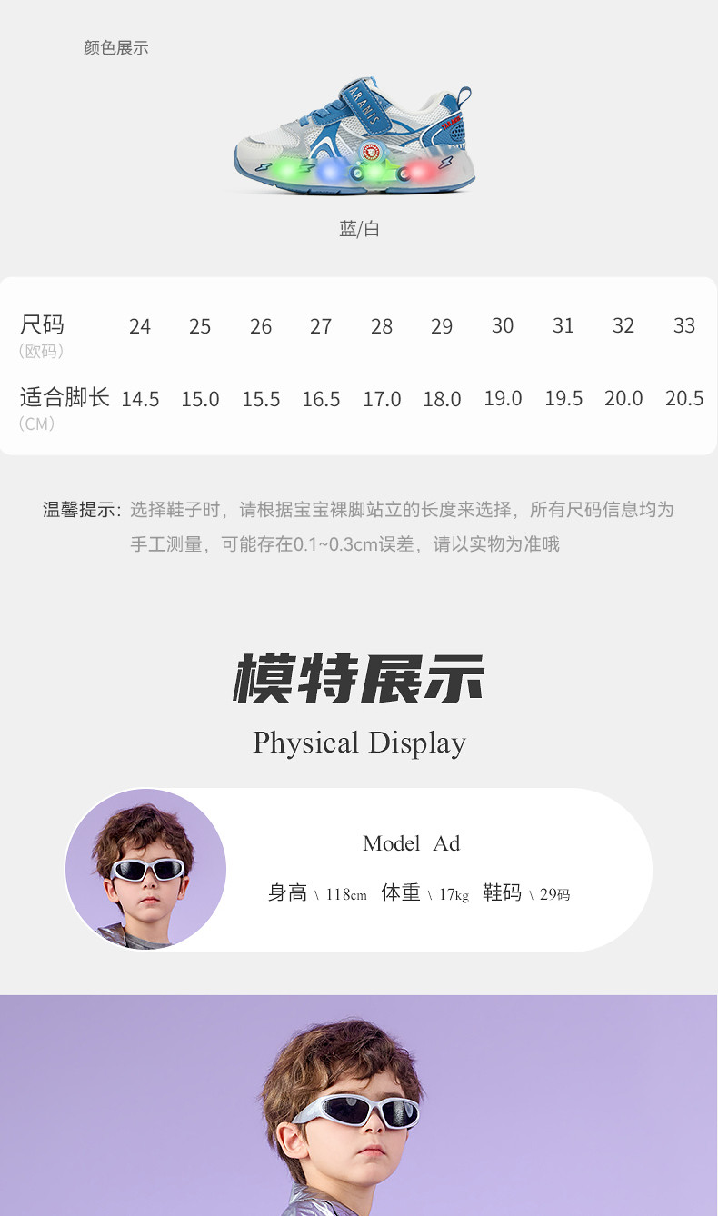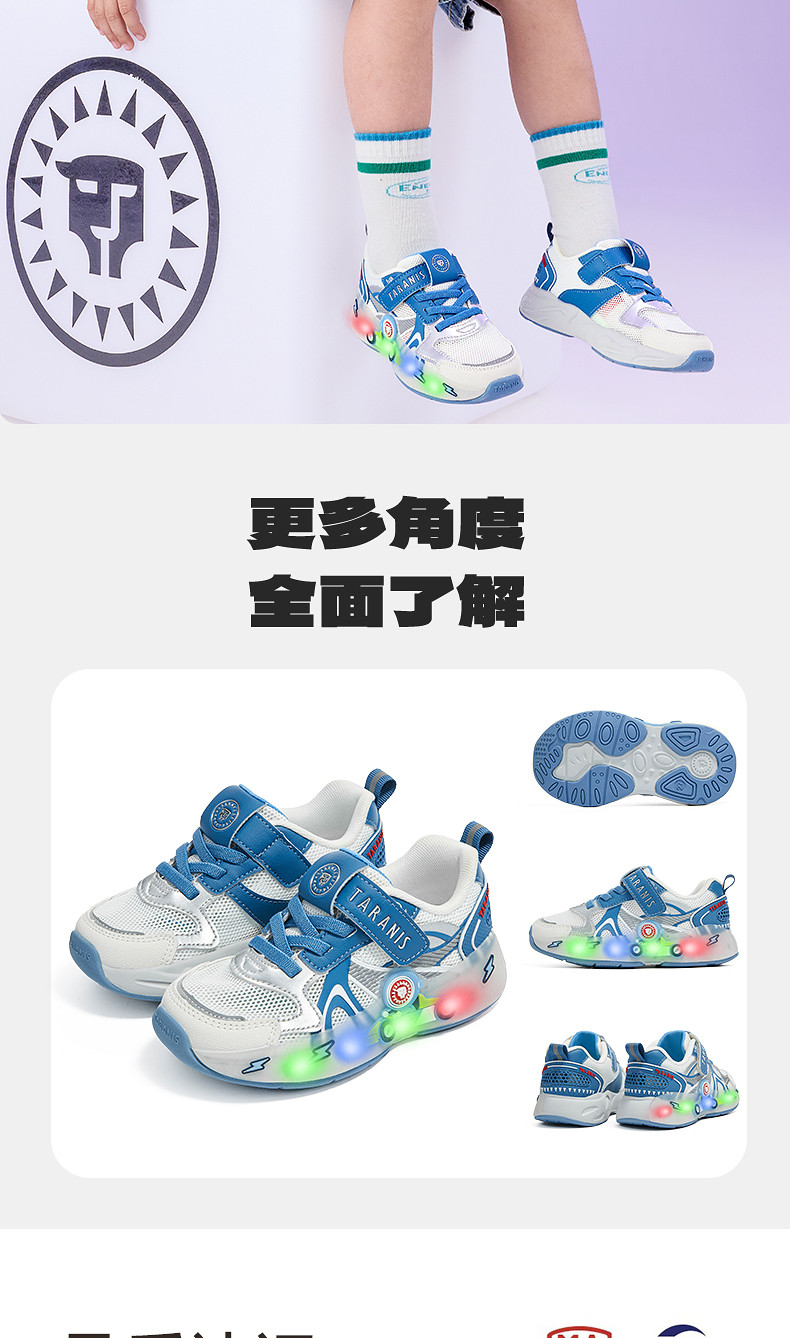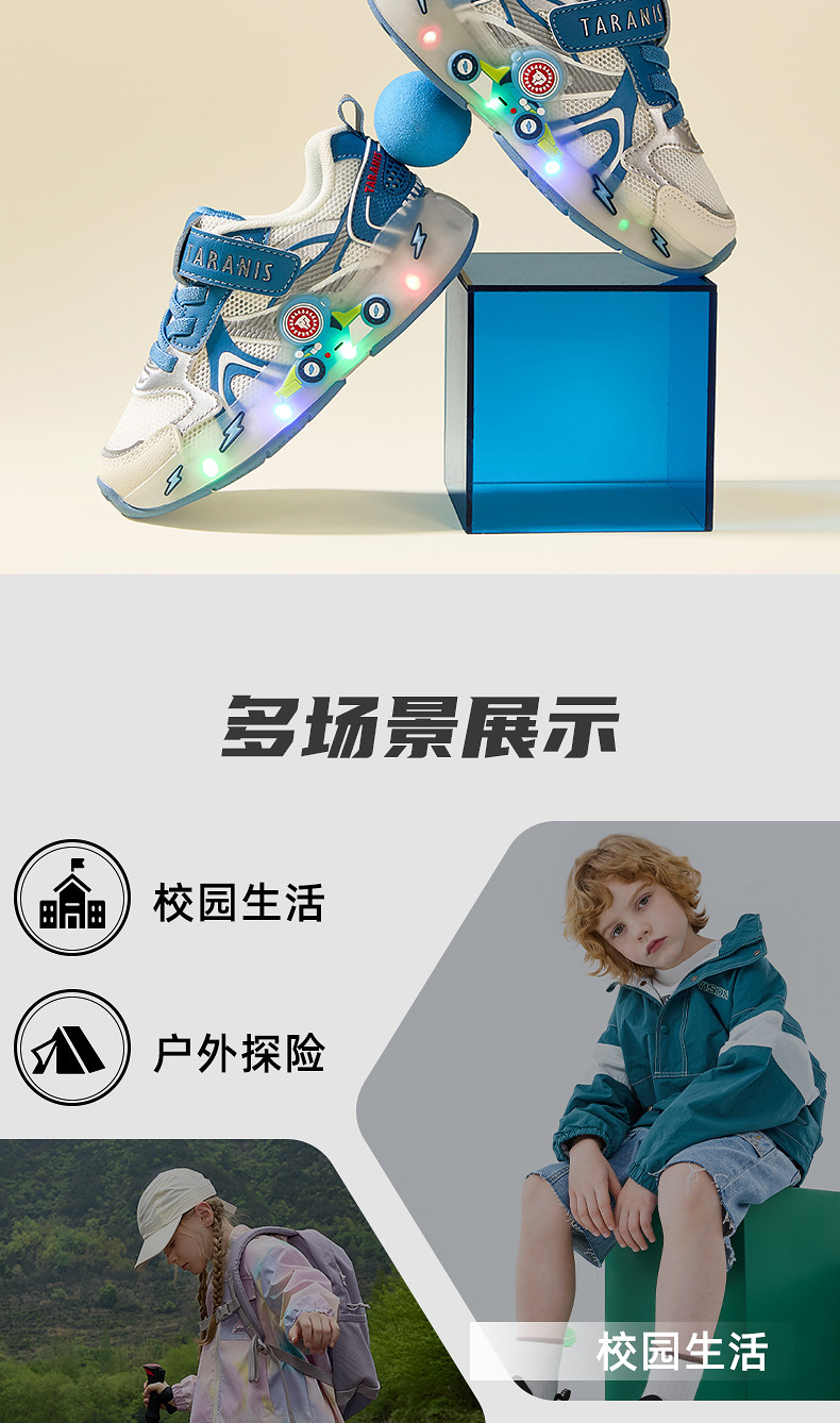 泰兰尼斯儿童闪灯运动鞋春季新款男童发光鞋舒适跑步鞋子防滑耐磨T01X6A8616