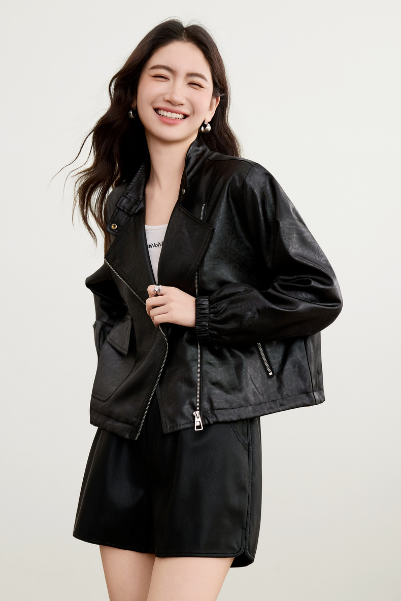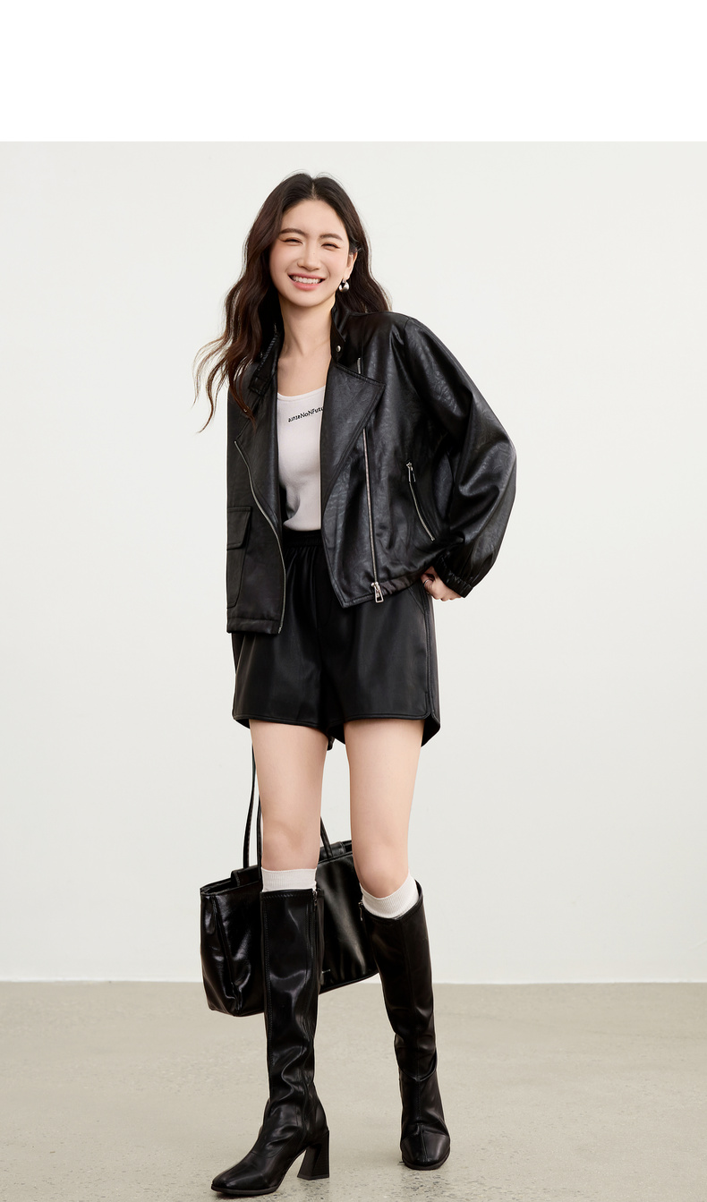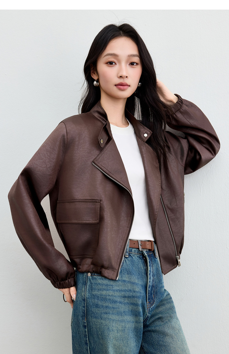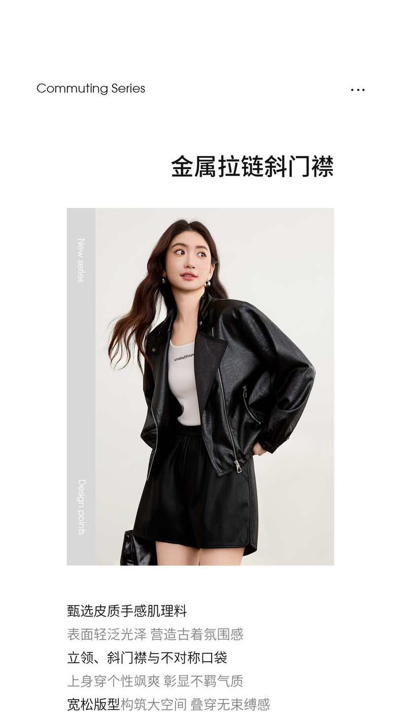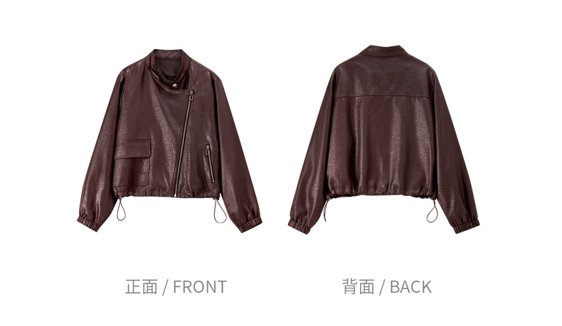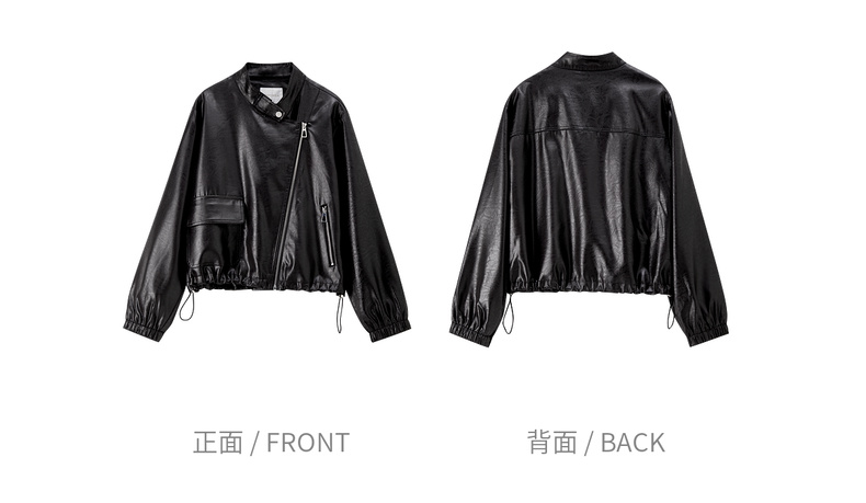 【内购】【斜门襟】气质立领金属拉链不对称口袋下摆抽绳宽松长袖外套-W53WB3541
