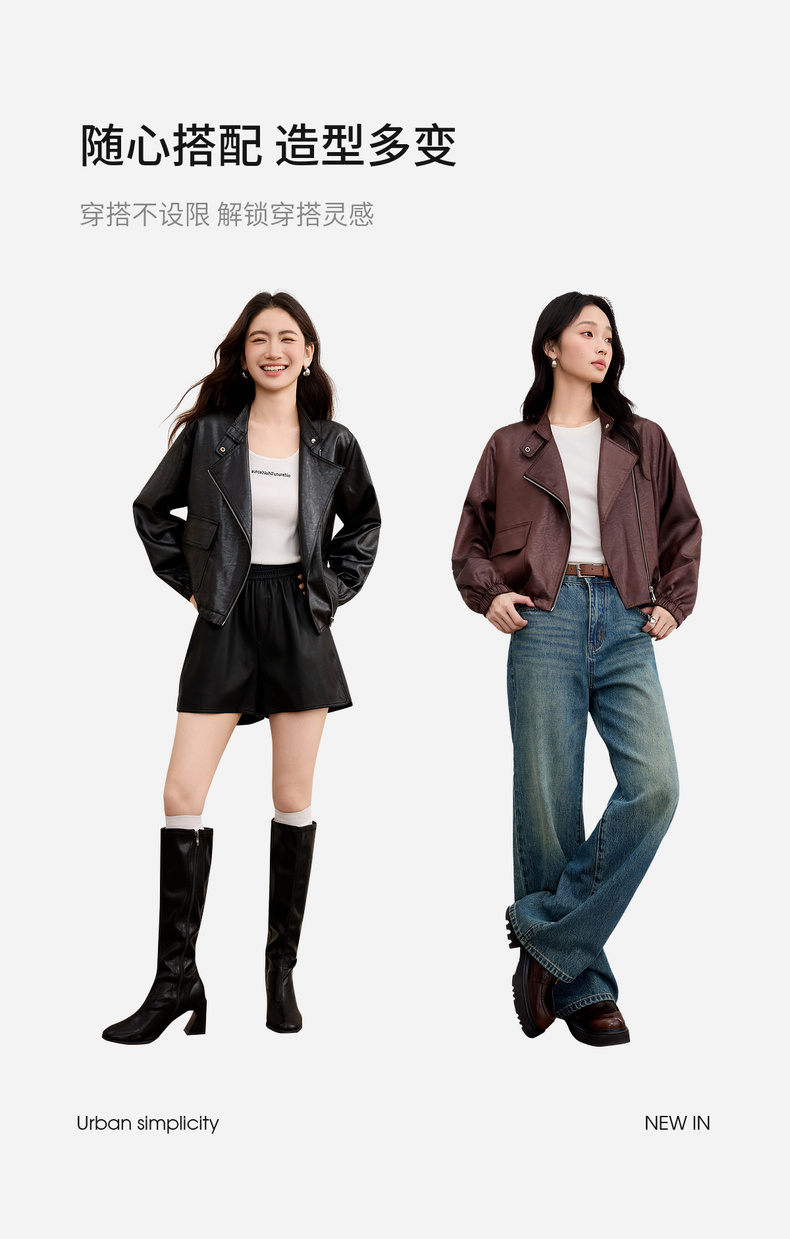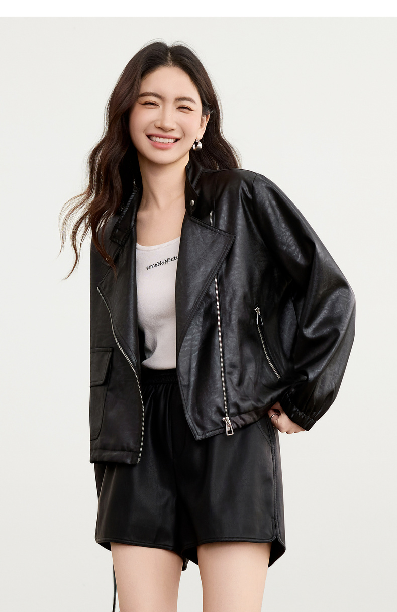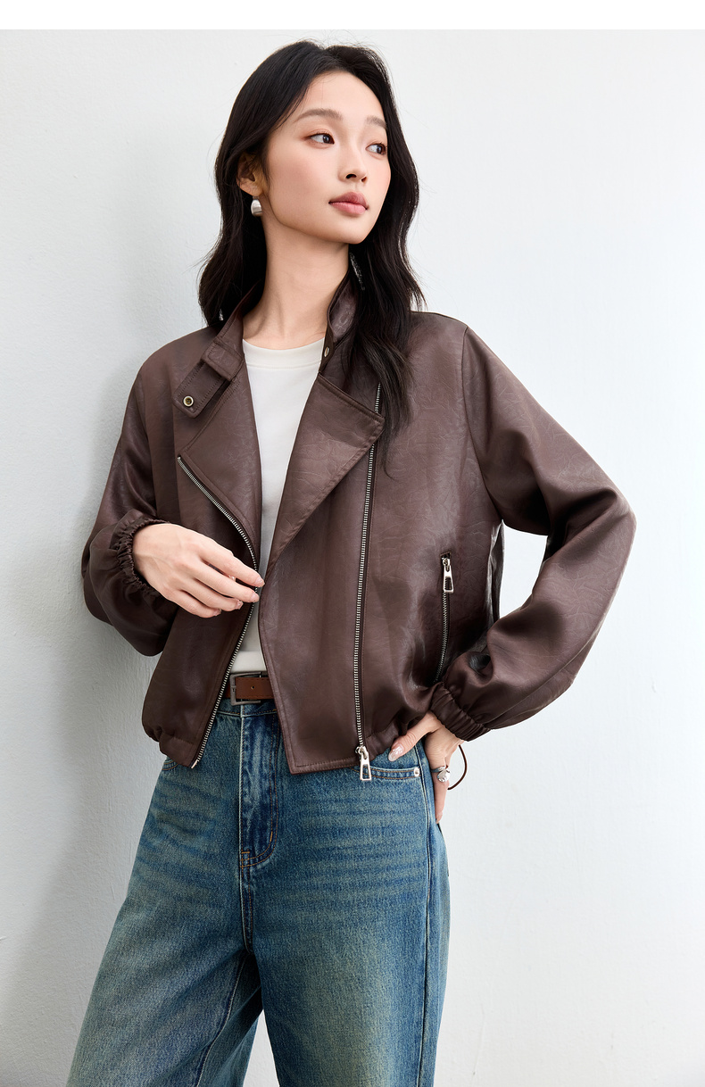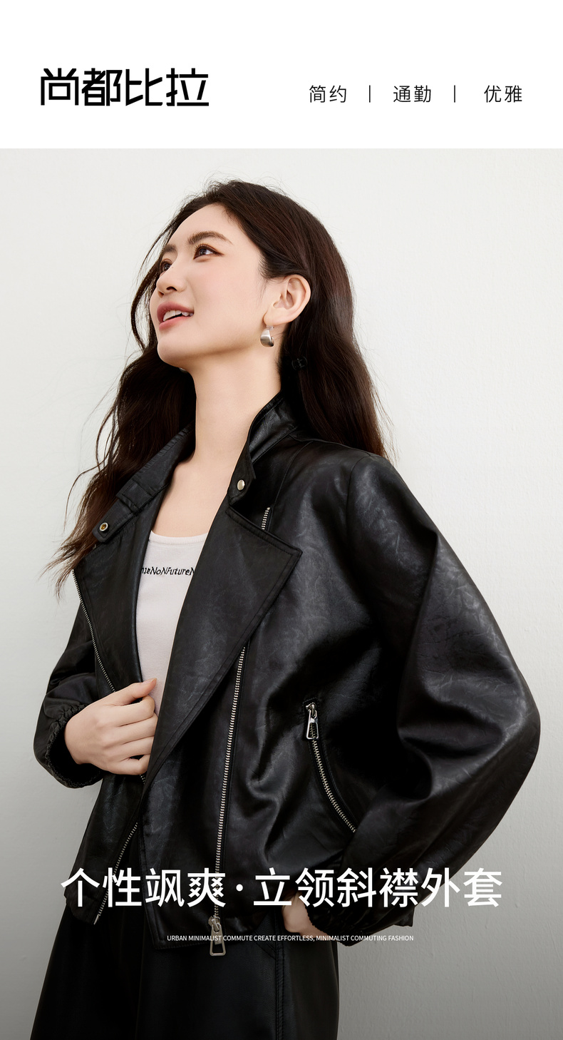 【内购】【斜门襟】气质立领金属拉链不对称口袋下摆抽绳宽松长袖外套-W53WB3541