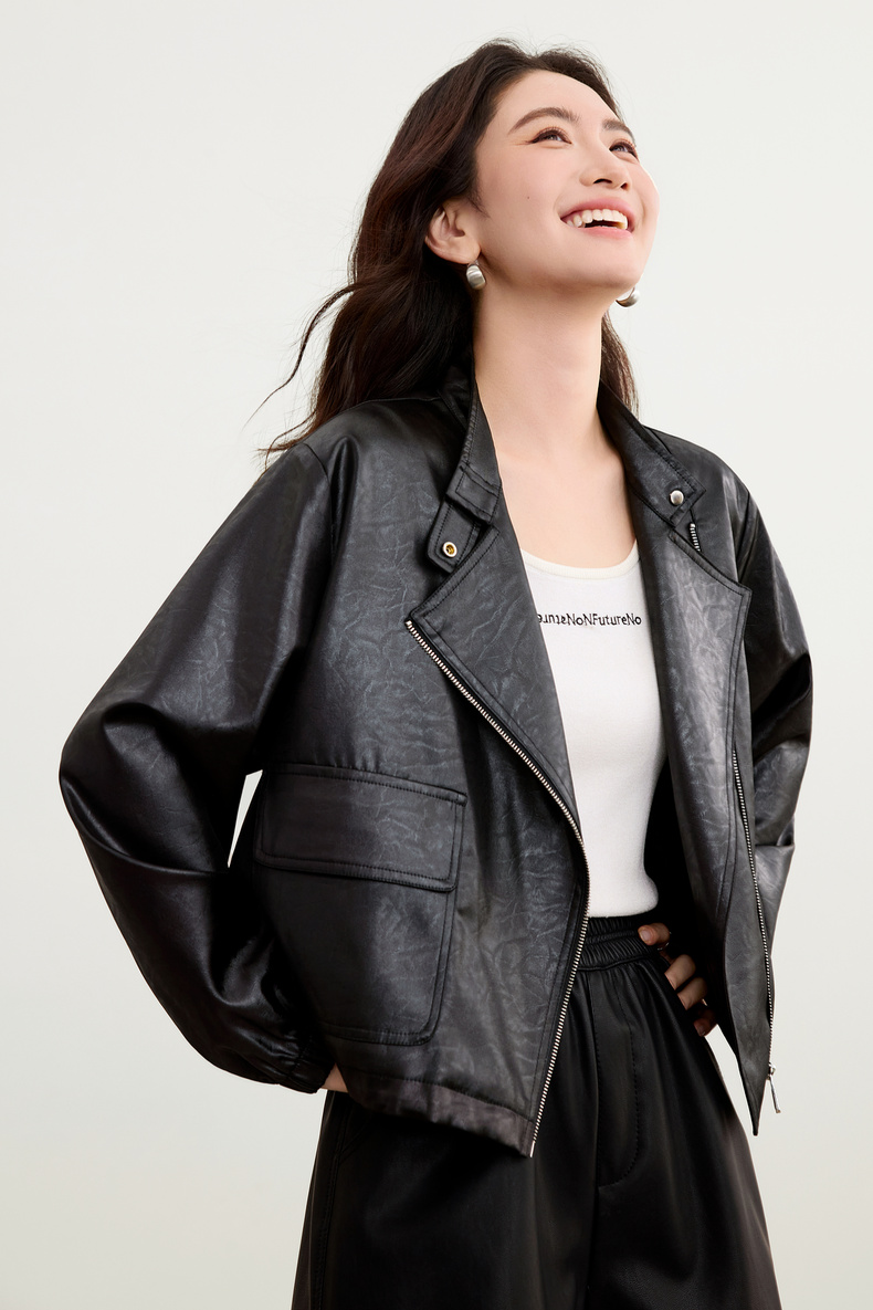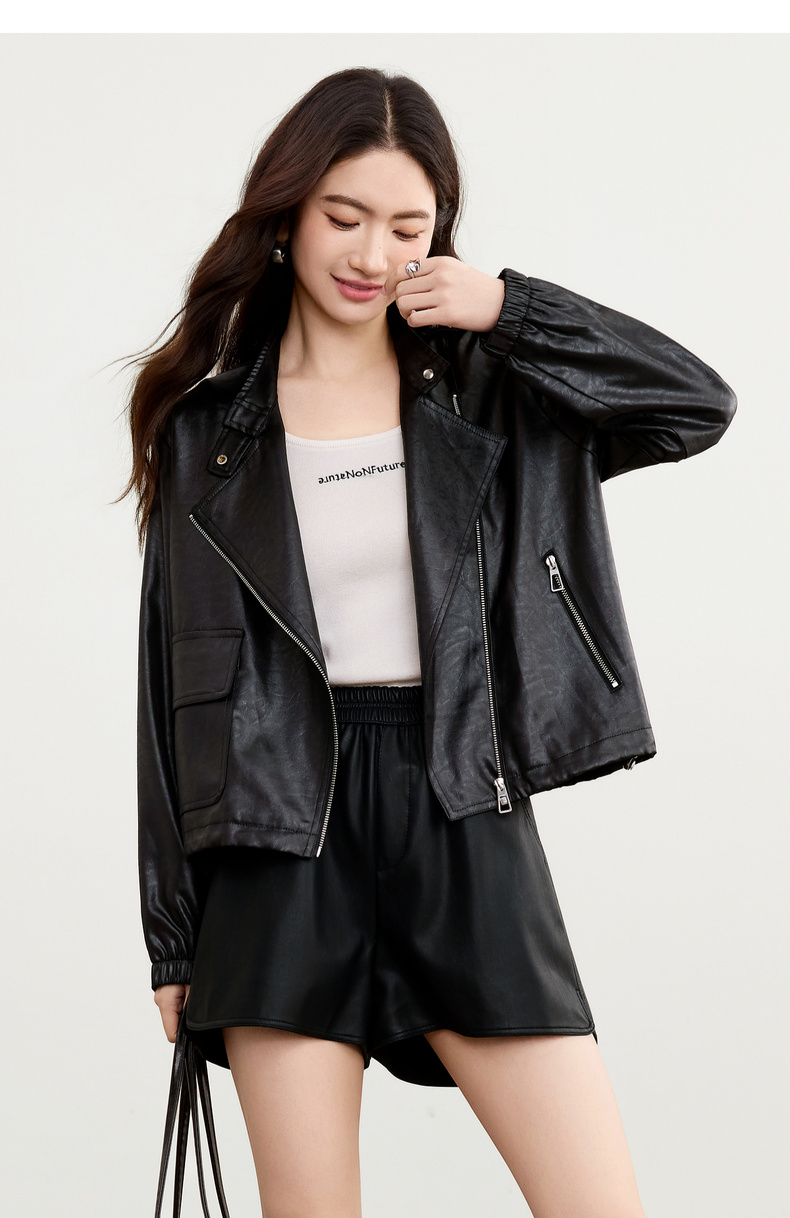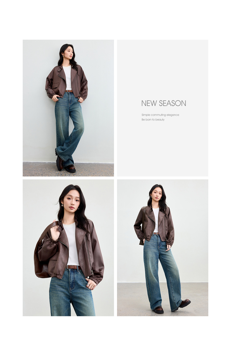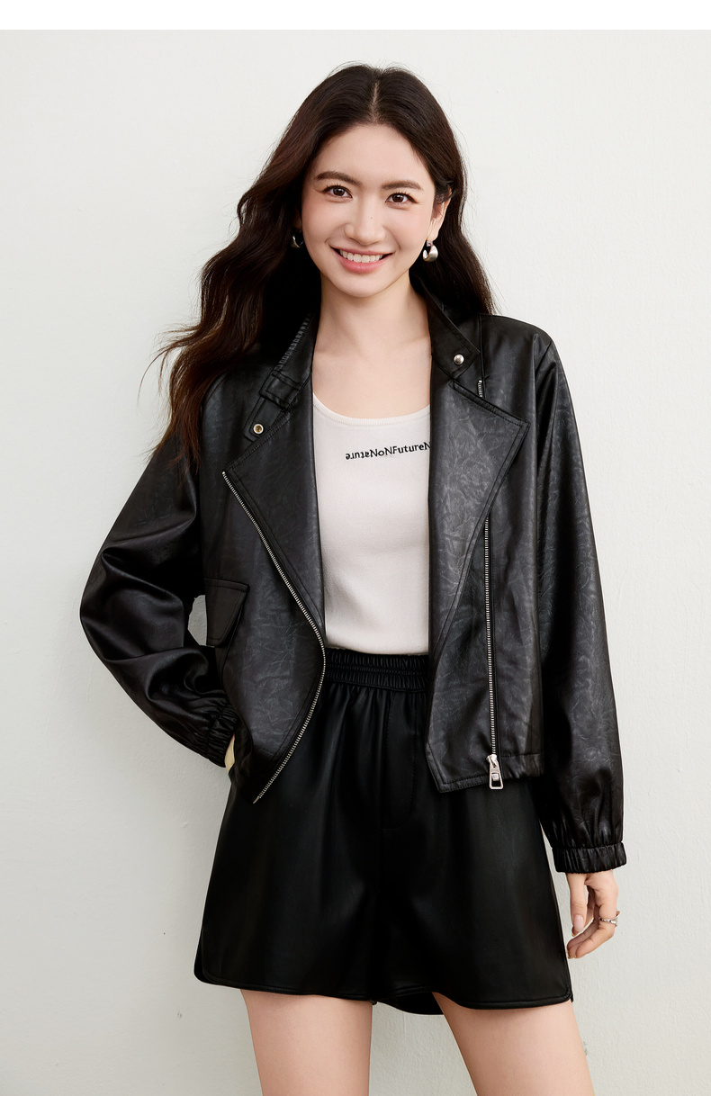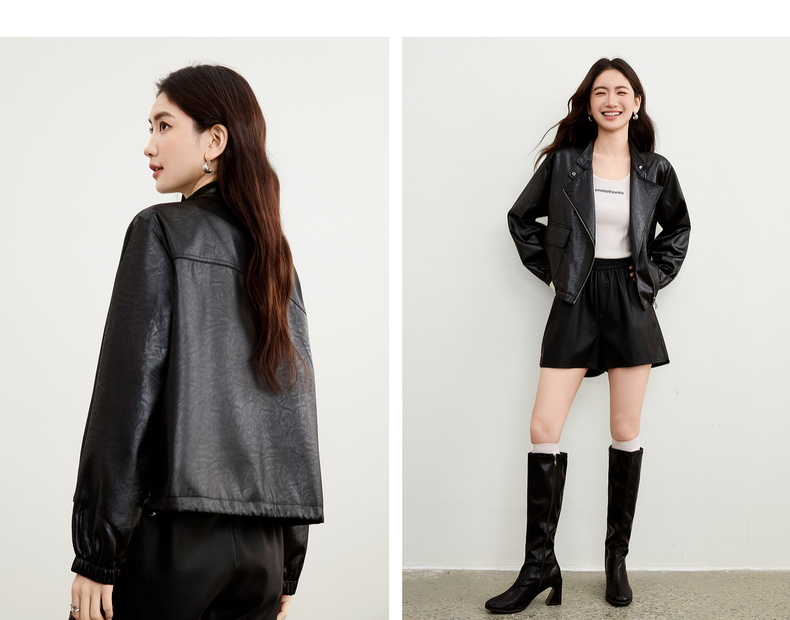 【内购】【斜门襟】气质立领金属拉链不对称口袋下摆抽绳宽松长袖外套-W53WB3541