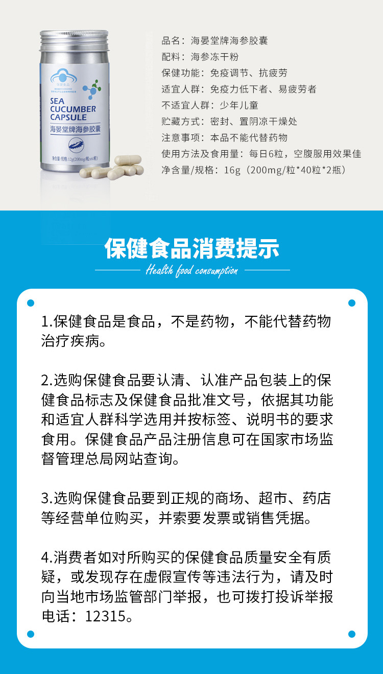 【第二件半价】海参胶囊16g(200mg/粒*40粒*2瓶)