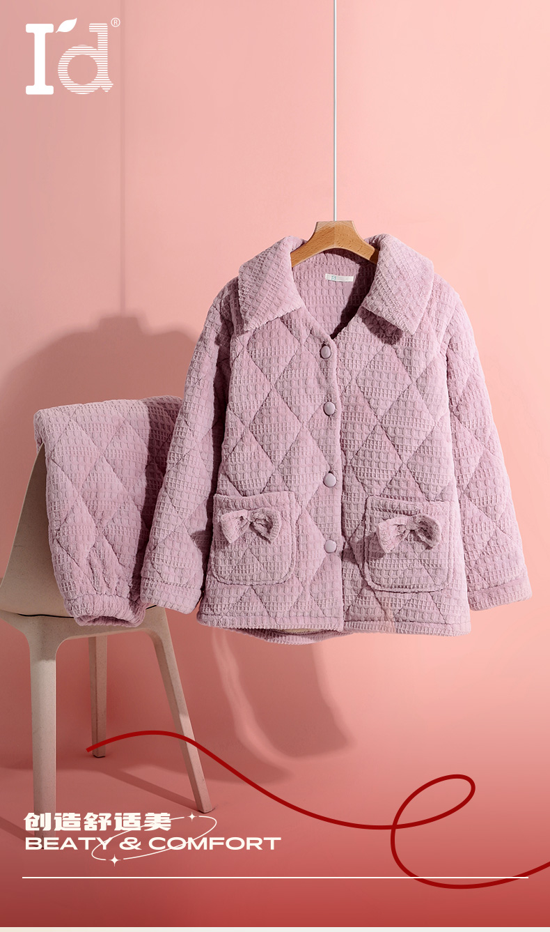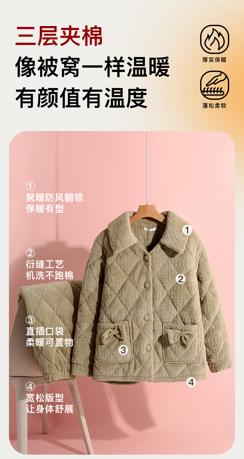 【三层夹棉加厚保暖】秋冬女士加绒加厚家居服套装