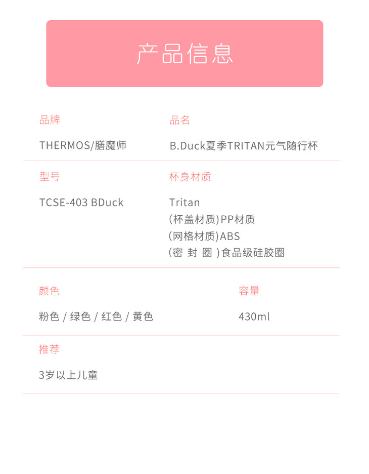 膳魔师B.Duck联名款元气摇摇随行杯430ml