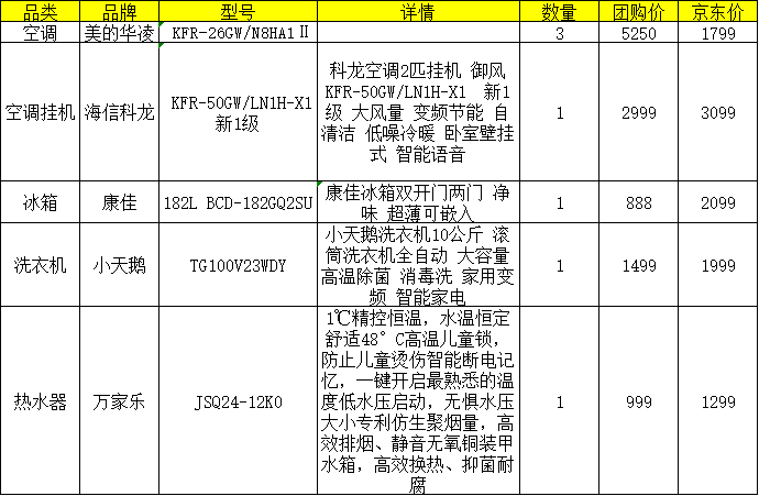 家电套餐(海信空调KFR-50GW/LN1H-X1+康佳冰箱BCD-182GQ2SU+小天鹅洗衣机TG100V23WDY+万家乐热水器JSQ24-12K0))