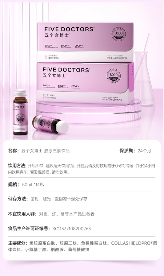 心选丨五个女博士胶原三肽饮品(8000mg)(14支)
