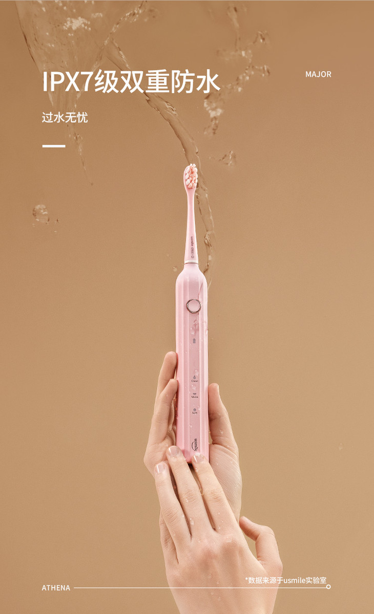 usmile 电动牙刷 成人声波震动情侣电动牙刷 Y1 蜜粉/绅灰/沁蓝