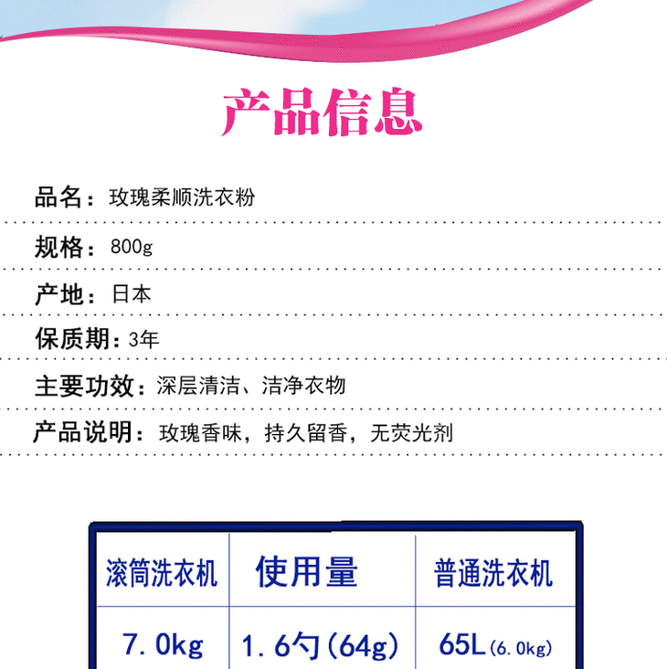 【保税】日本花王 玫瑰味洗衣粉柔顺玫瑰果香无荧光800g