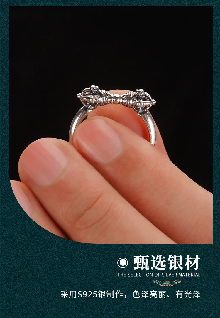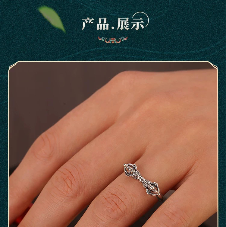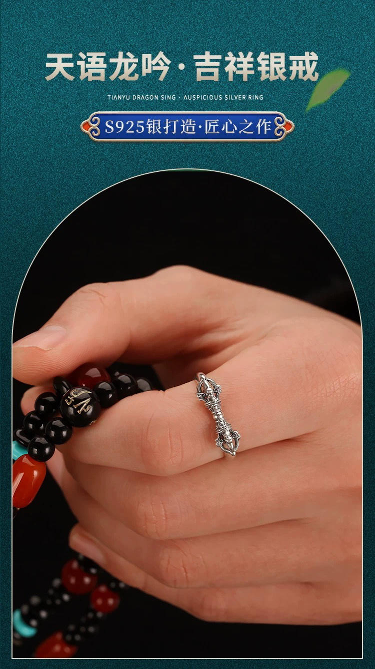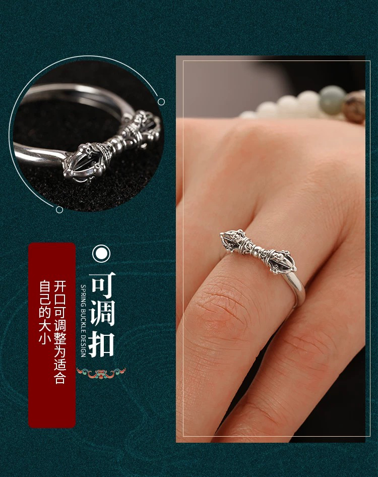 天语龙吟定制款纯银金刚杵戒指s9纯银男女金刚降魔杵金刚杵戒指